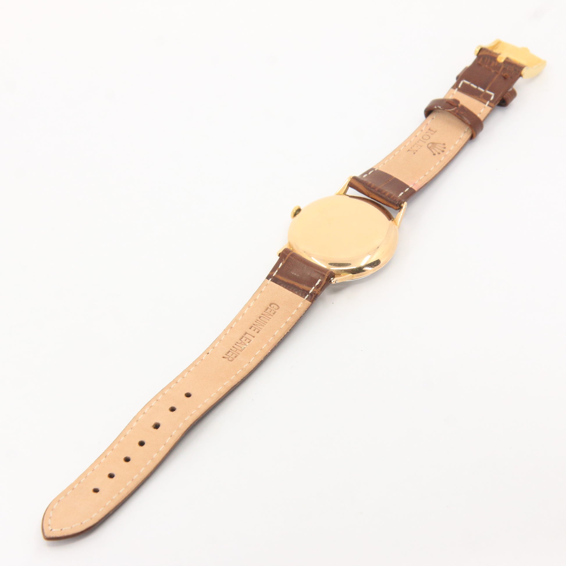 A fine vintage Rolex Precision gents wristwatch in 18ct gold, reference 3745, circa 1948, fitted with a Rolex leather strap and buckle and featuring a silvered dial with sweep centre seconds. A highly collectible and elegant Rolex timepiece with strong vintage appeal—add this to your collection today.