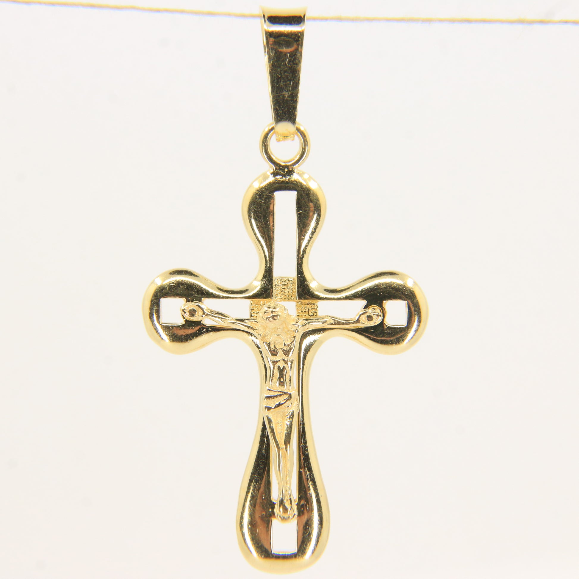 A well-crafted vintage 18K yellow gold Italian crucifix cross pendant with a detailed figure and polished finish. A meaningful piece of Christian jewellery suited to daily wear or gifting—add this to your collection today.