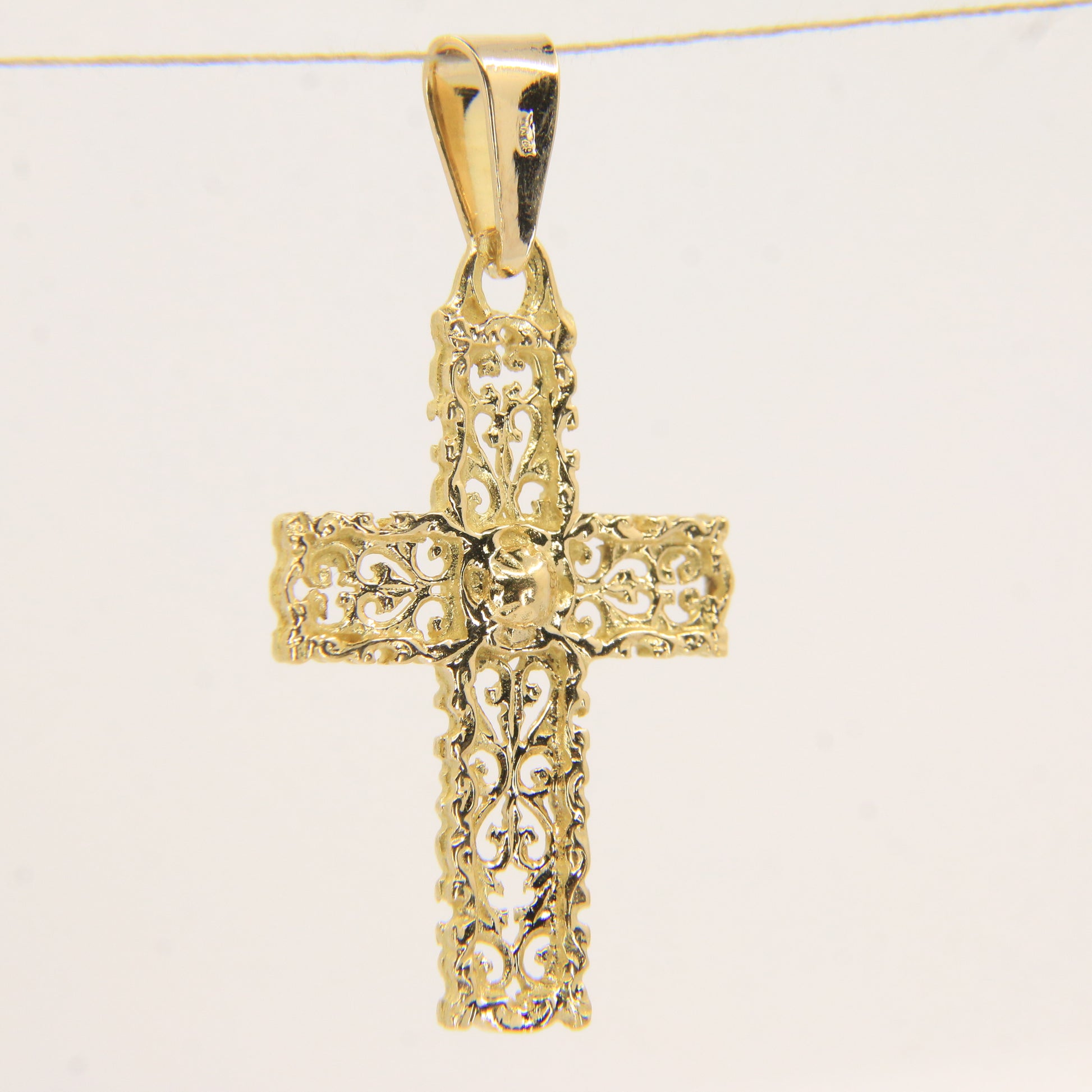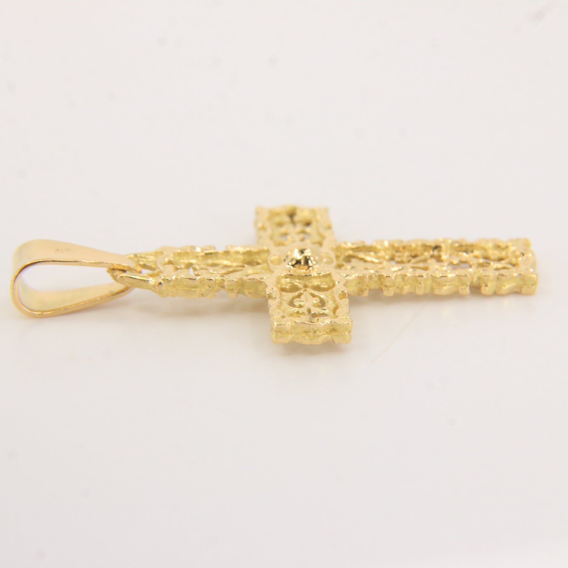 A finely crafted vintage 18K yellow gold cross pendant with ornate openwork detailing and a rich warm tone. A timeless religious charm ideal for everyday wear or gifting—add this to your collection today.