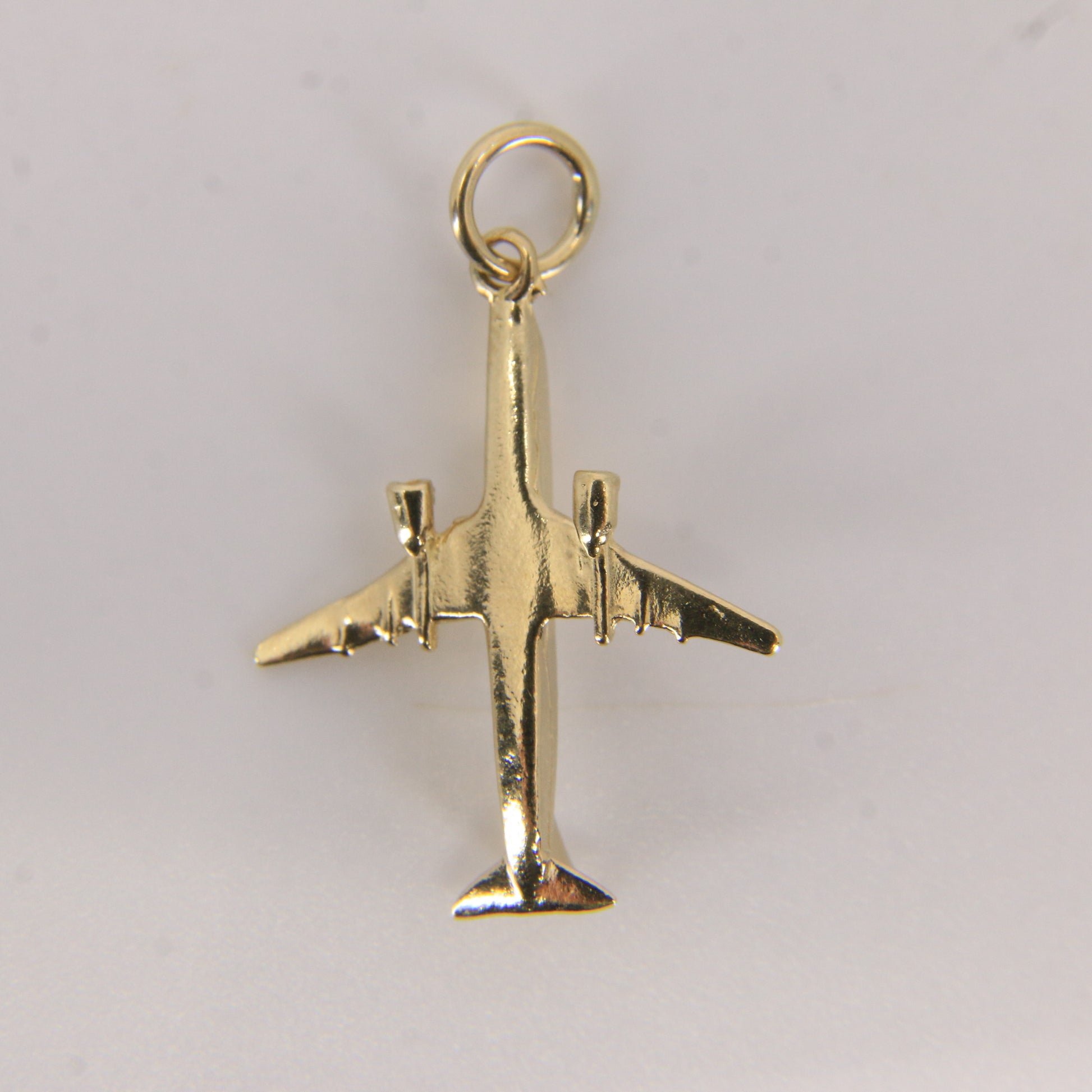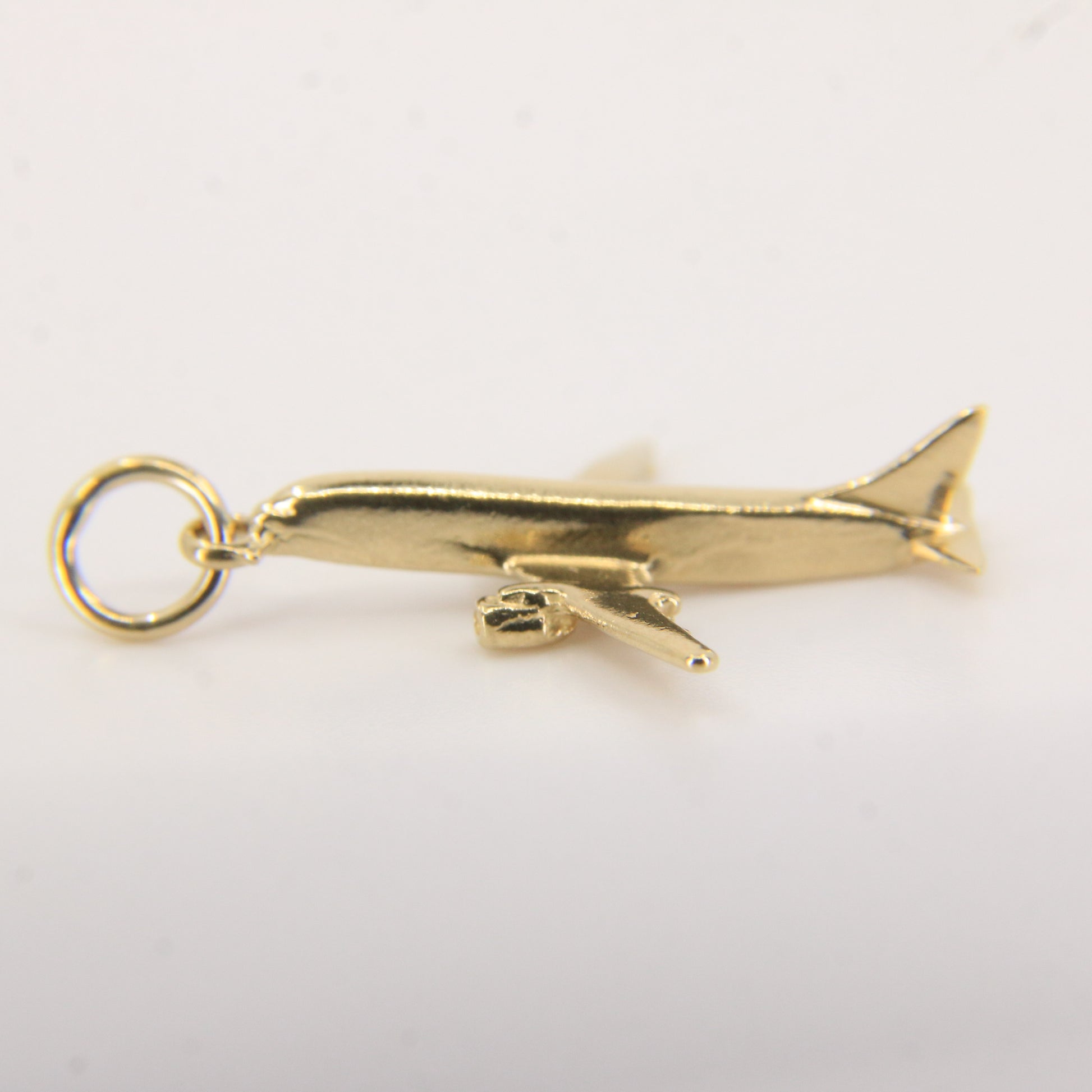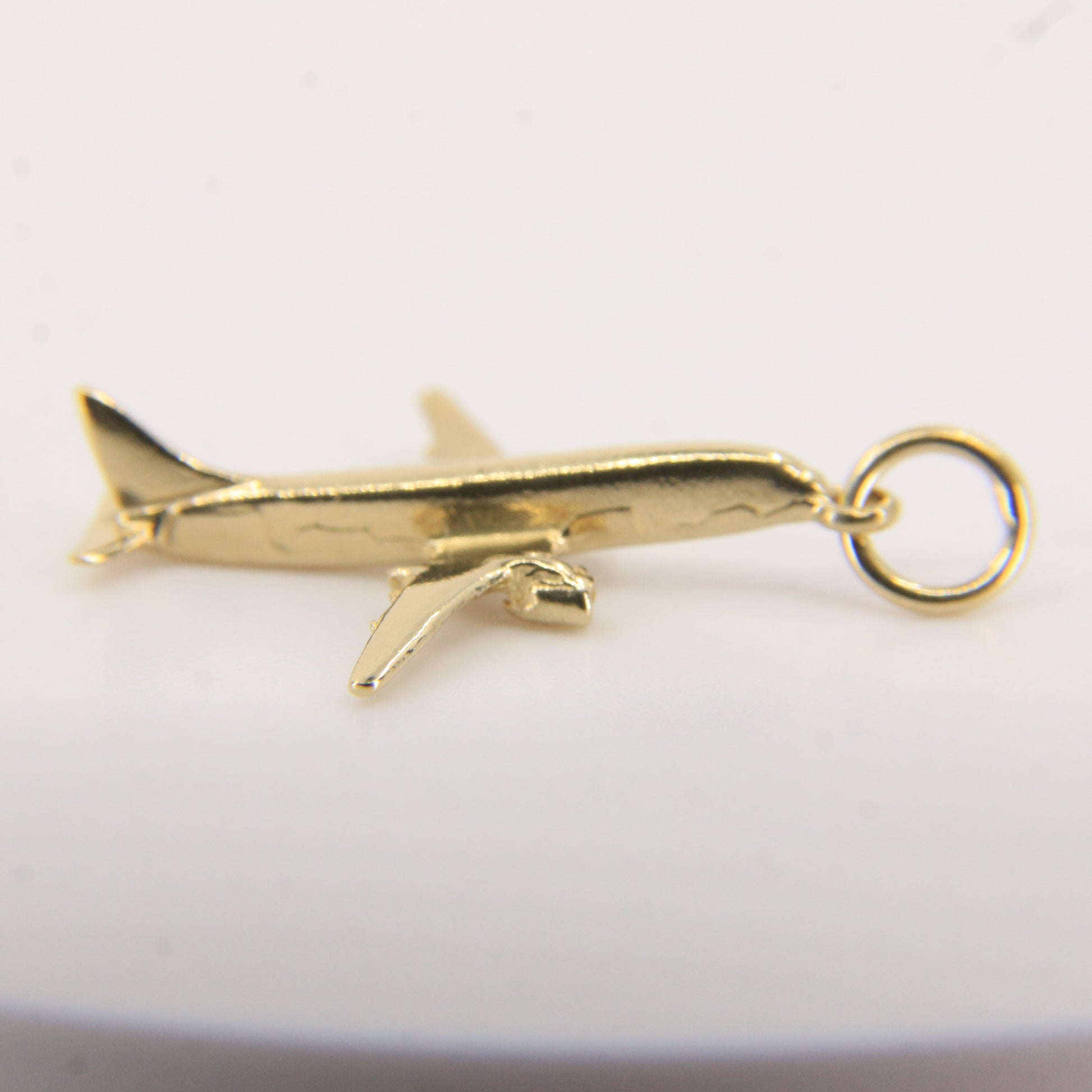 Vintage 9ct Yellow Gold Airplane Charm Pendant Travel Themed Gift Aviation