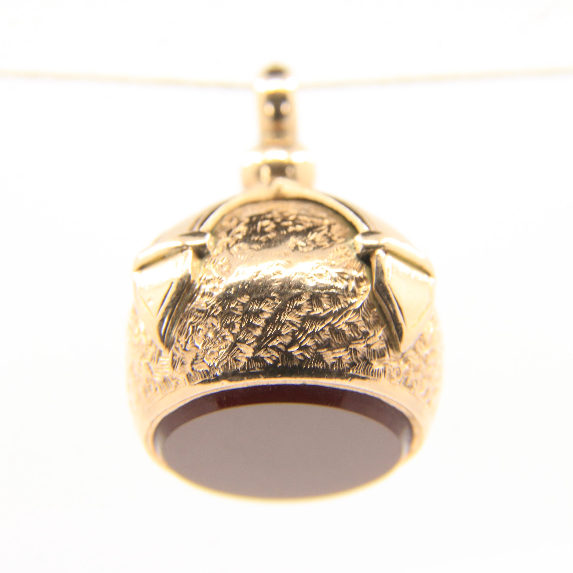 Antique 9ct Gold Carnelian Fob Pendant Drop Charm