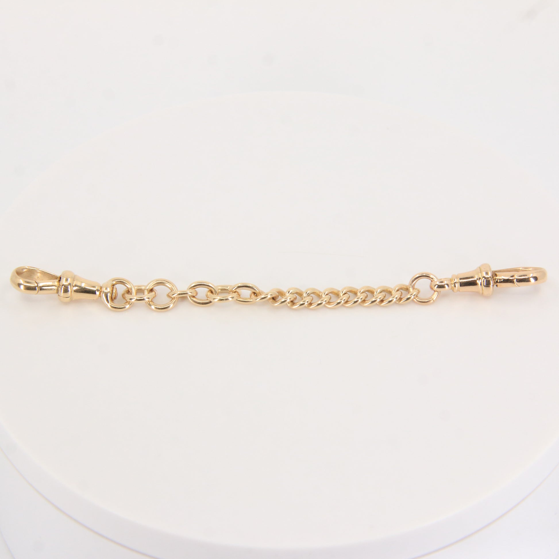 This antique albert 9ct yellow gold necklace extender features classic dog clip ends, allowing easy length adjustment while maintaining period style and quality. A perfect gift or addition to any collection.