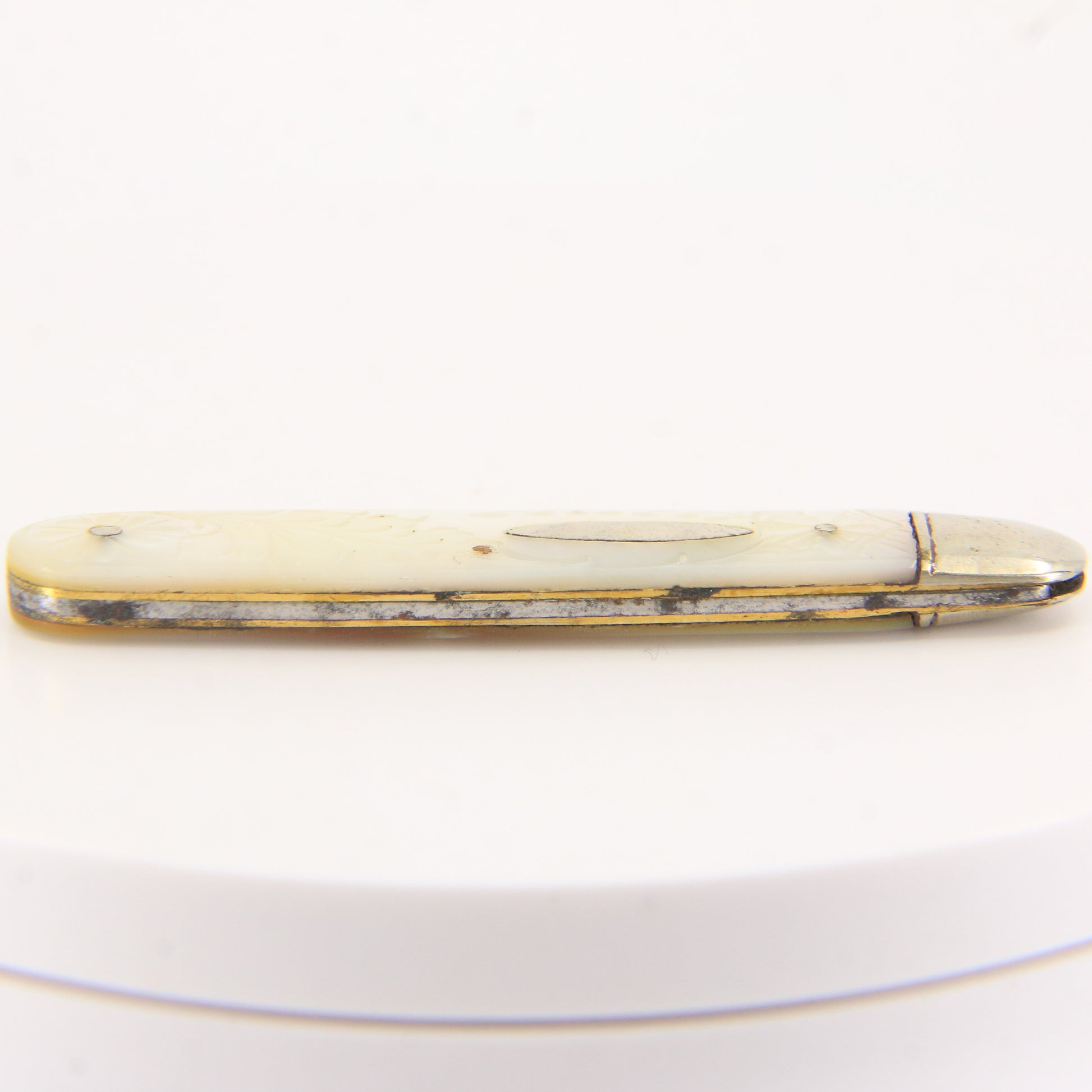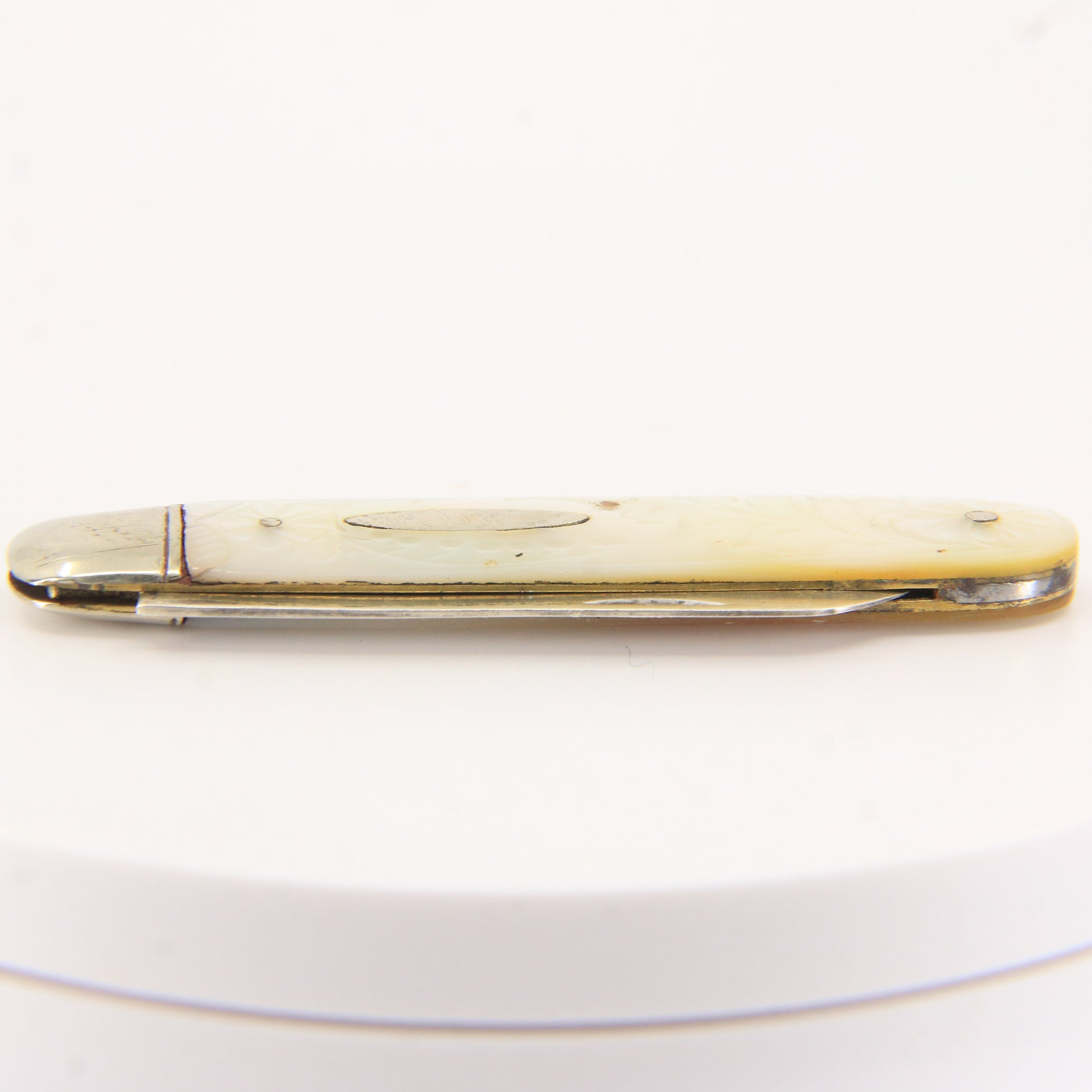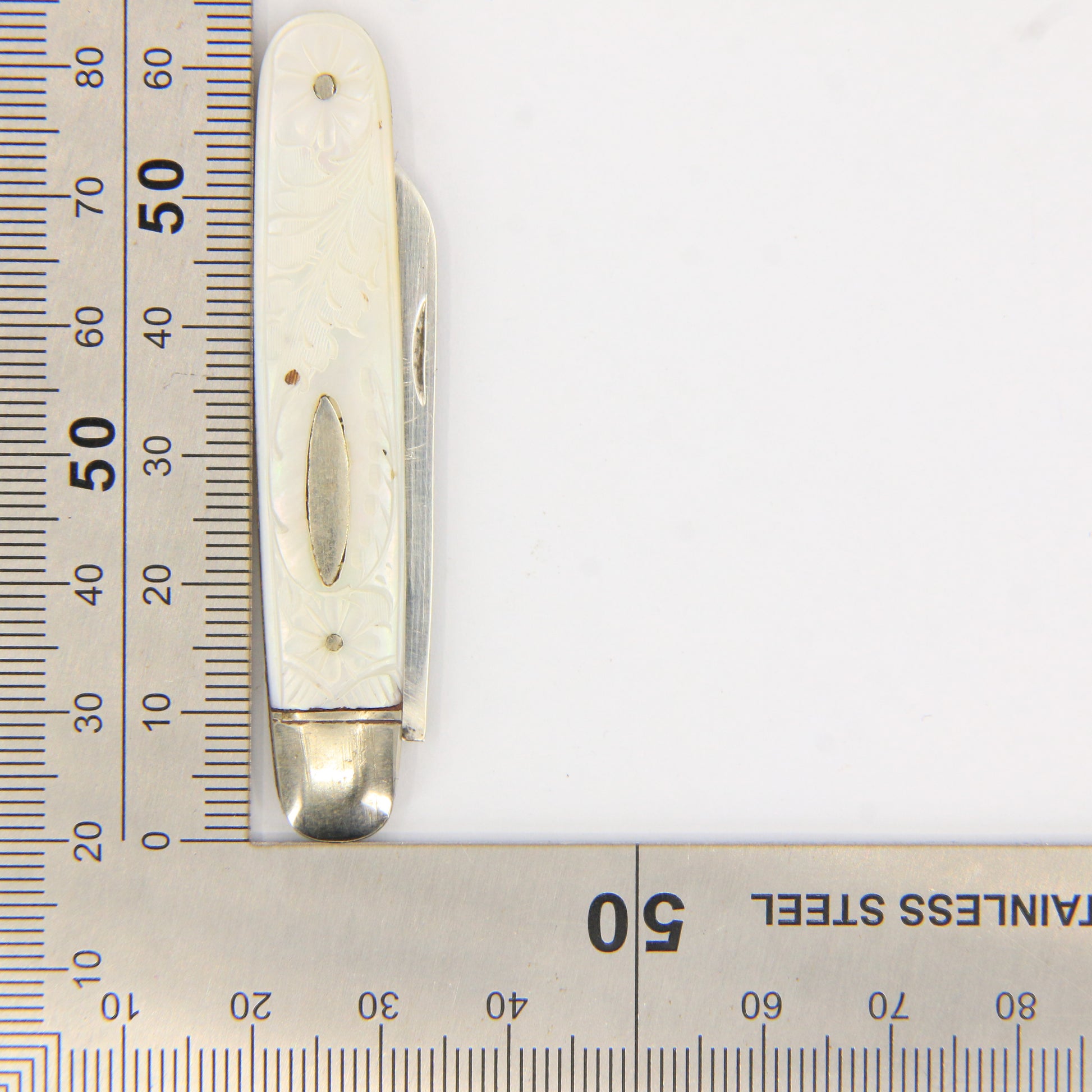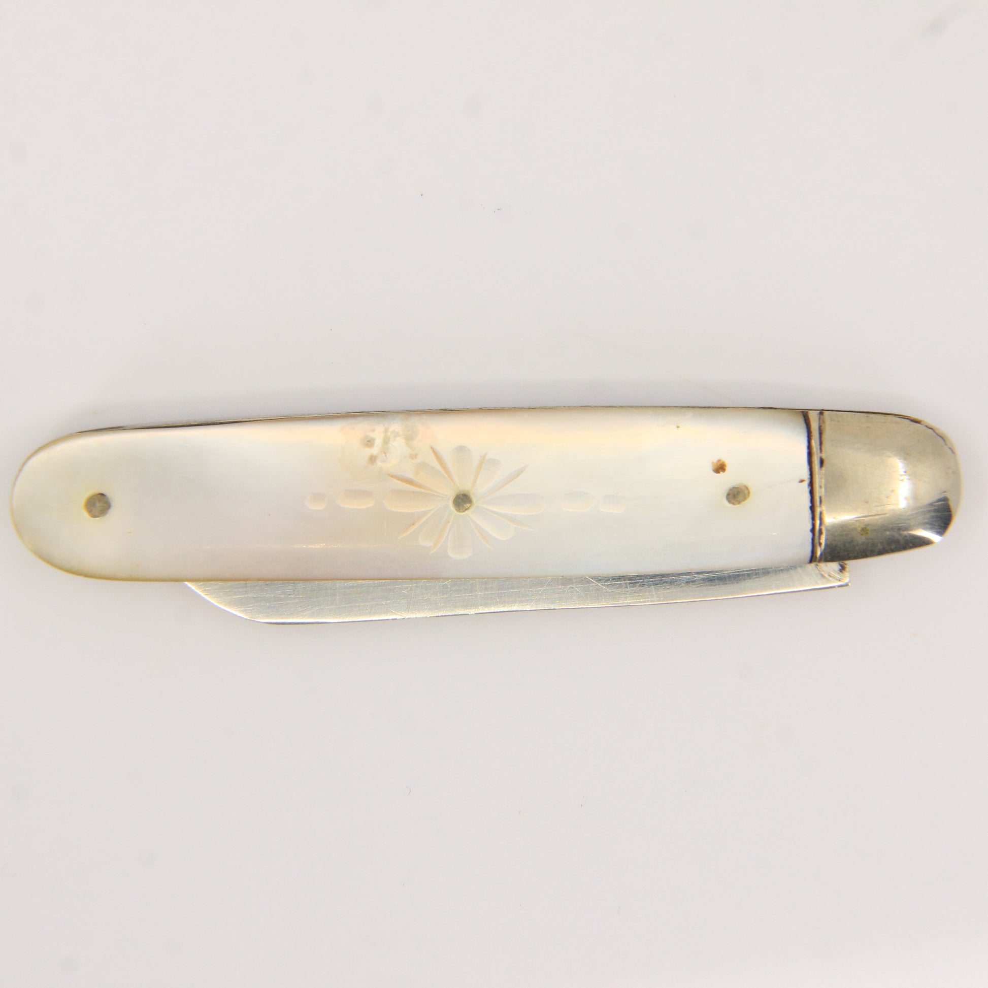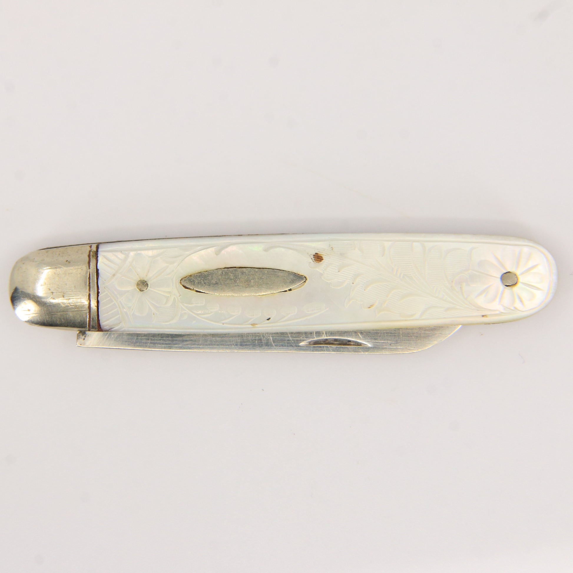 Antique Sterling Silver Hallmarked Mother Pearl Floral Inlay Folding Fruit Knife 1921