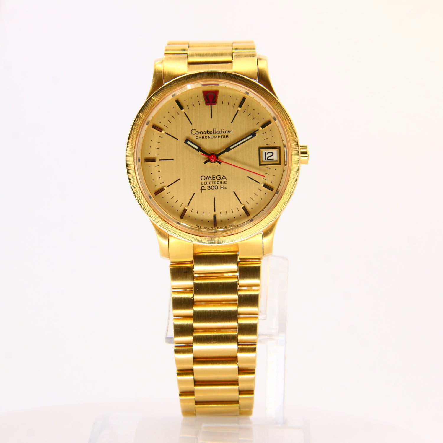 18 Carat Omega F300 Yellow Gold 35MM Tuning Fork Vintage Watch