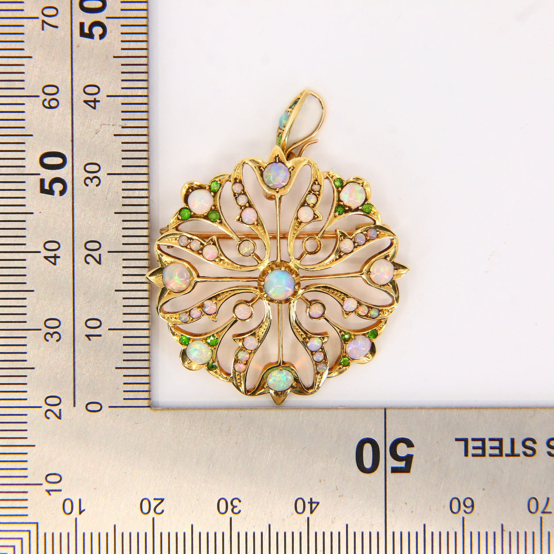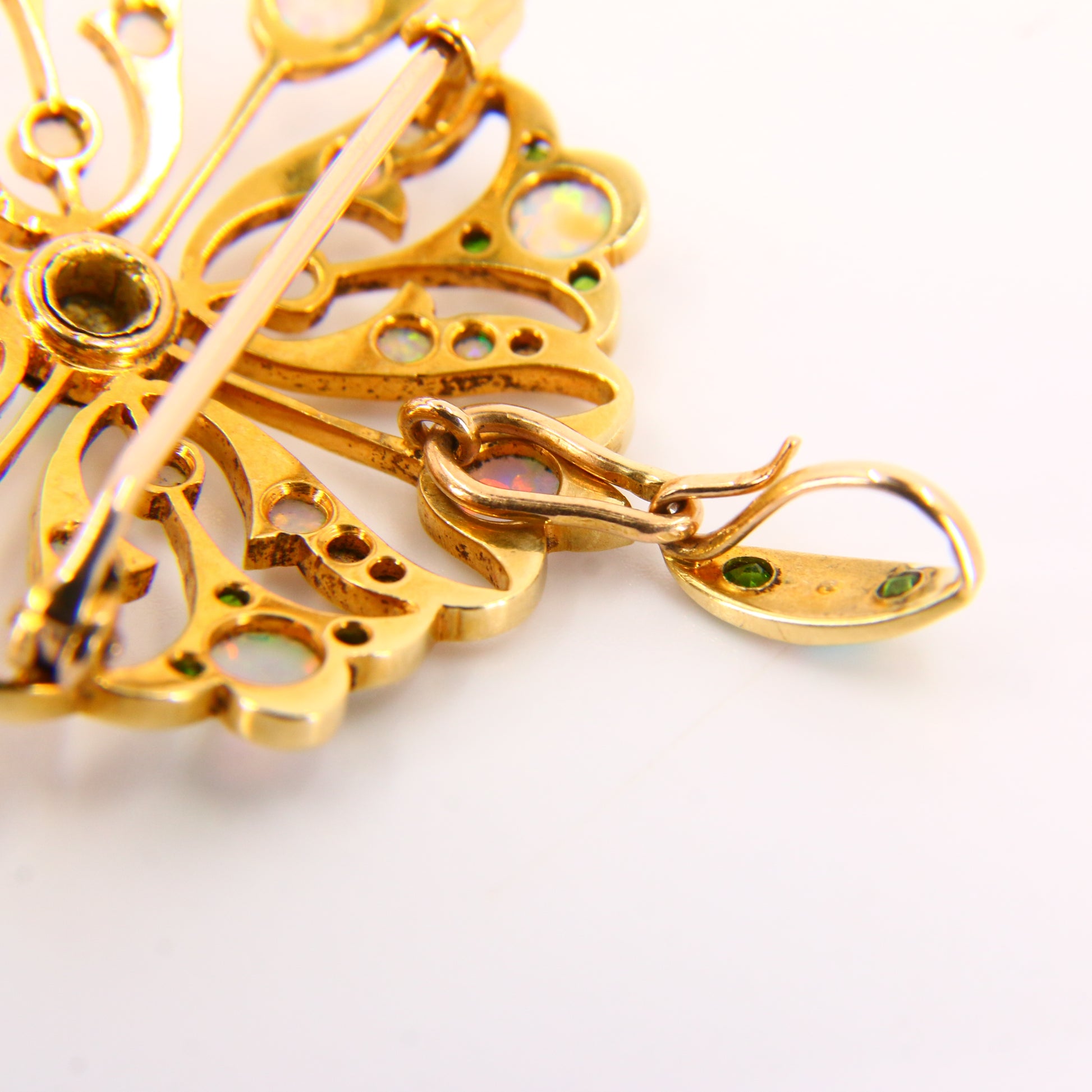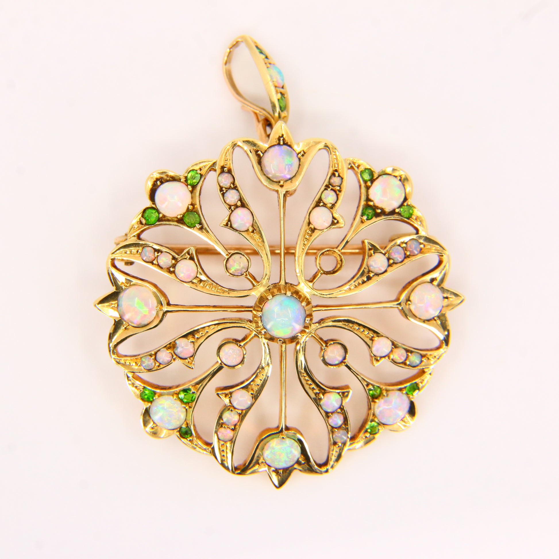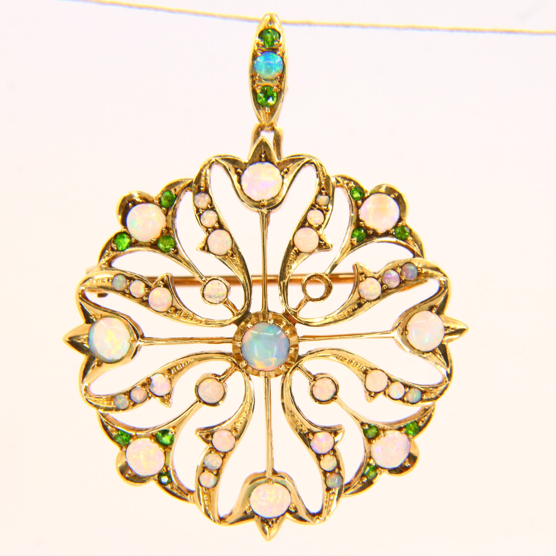 Antique 15K Opal & Emerald Pendant Brooch – Solid Yellow Gold Victorian Piece