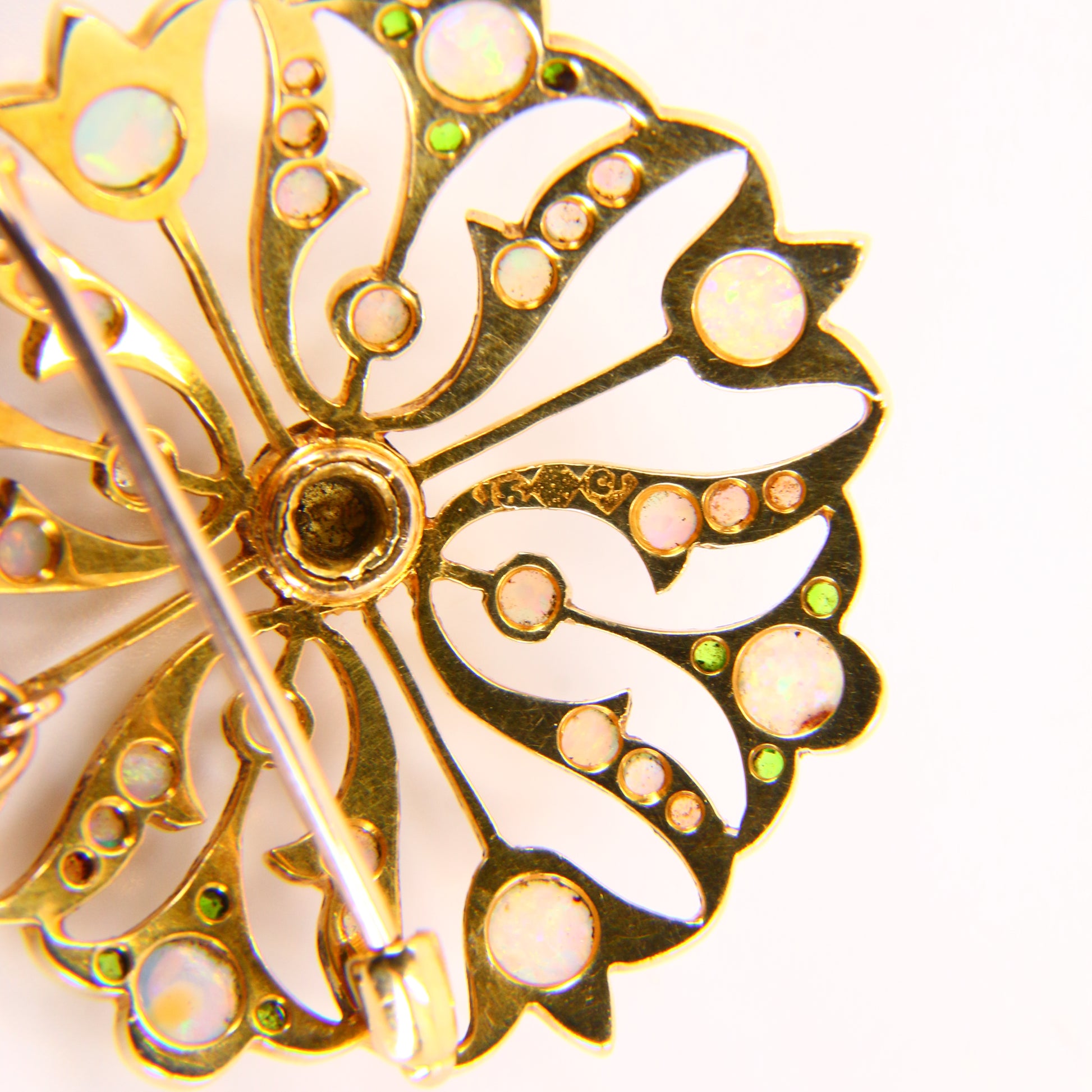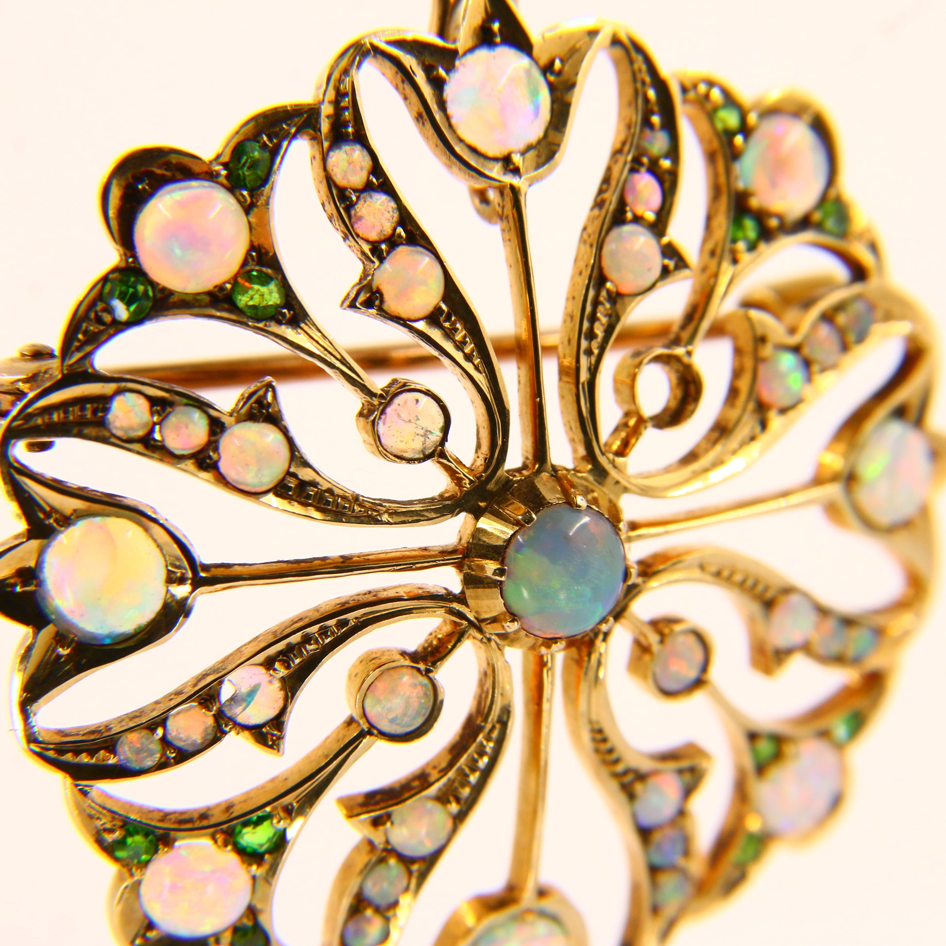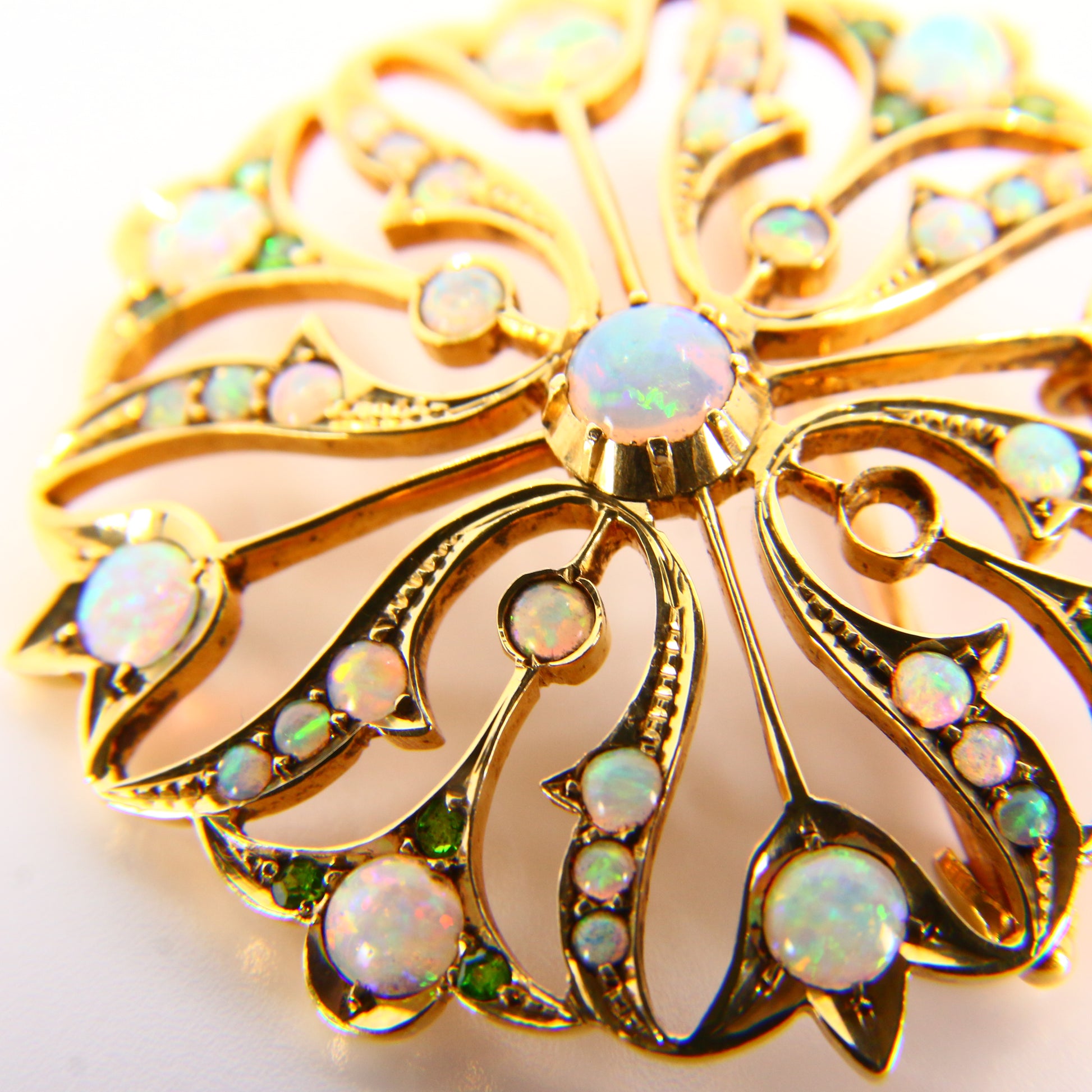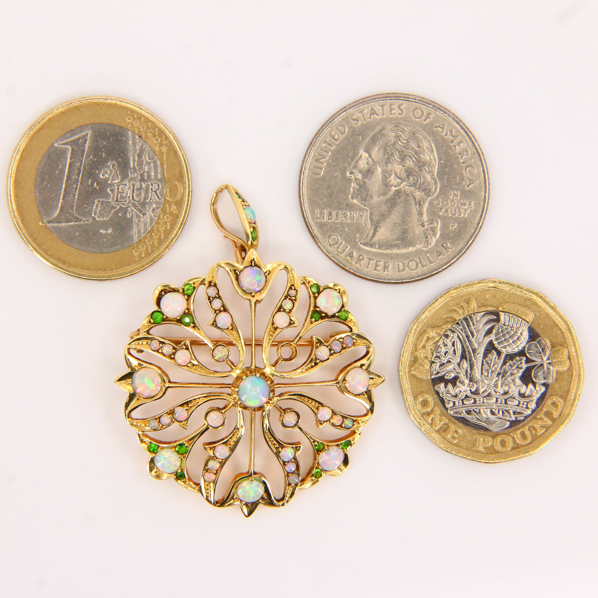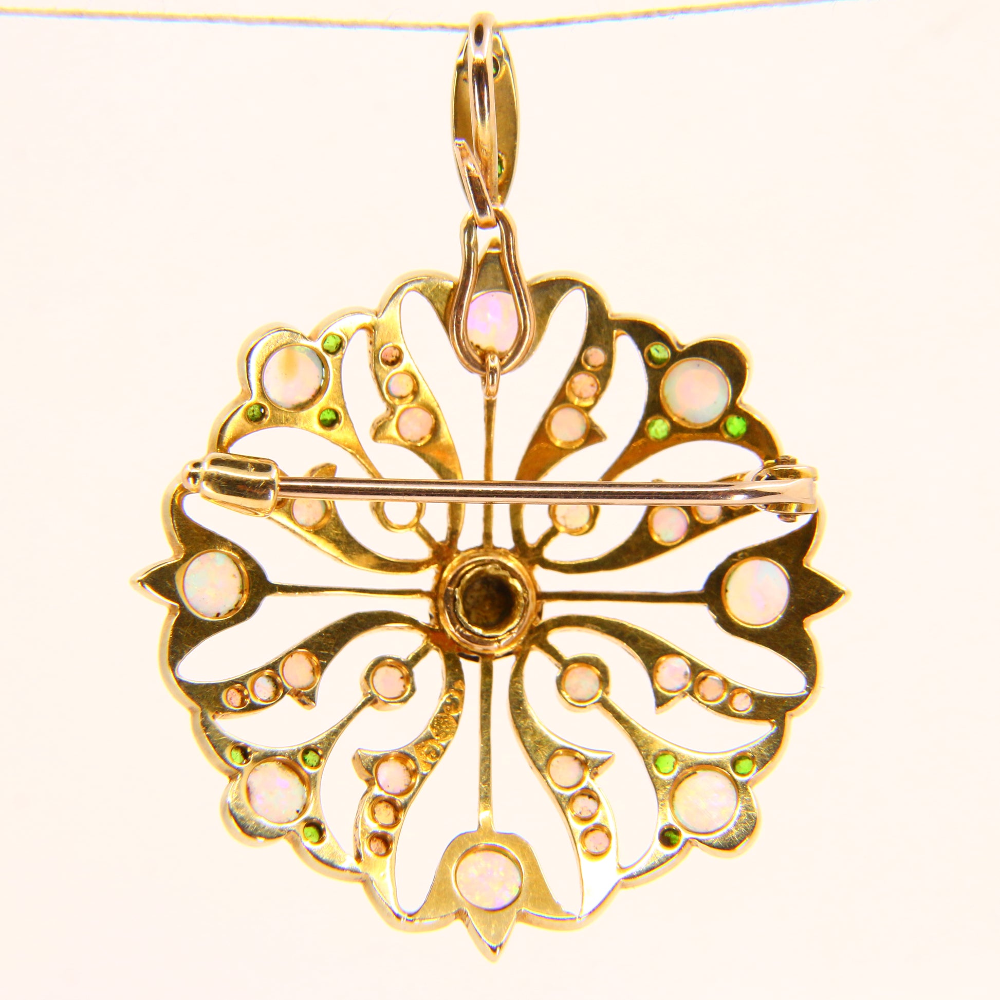 Antique 15K Opal & Emerald Pendant Brooch – Solid Yellow Gold Victorian Piece