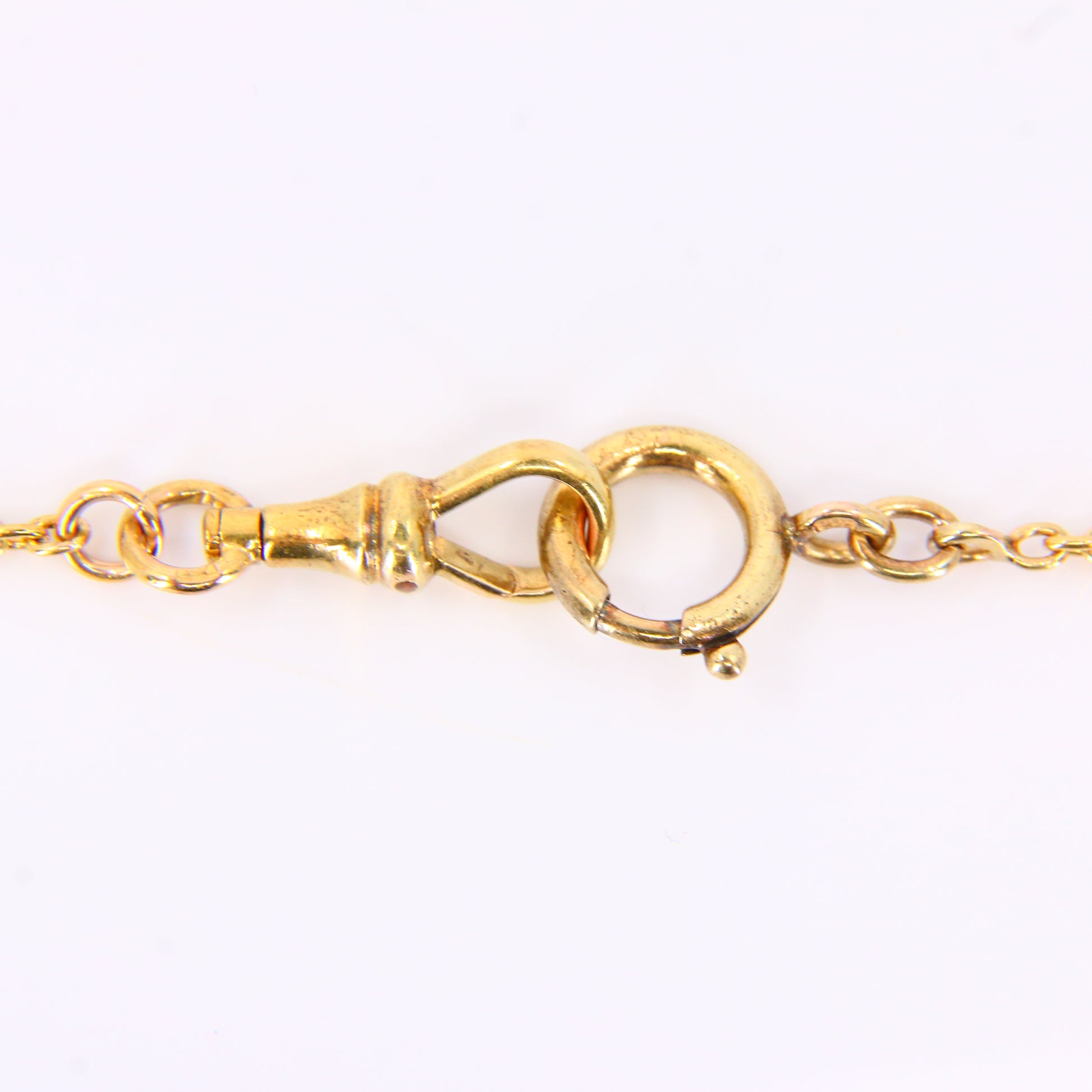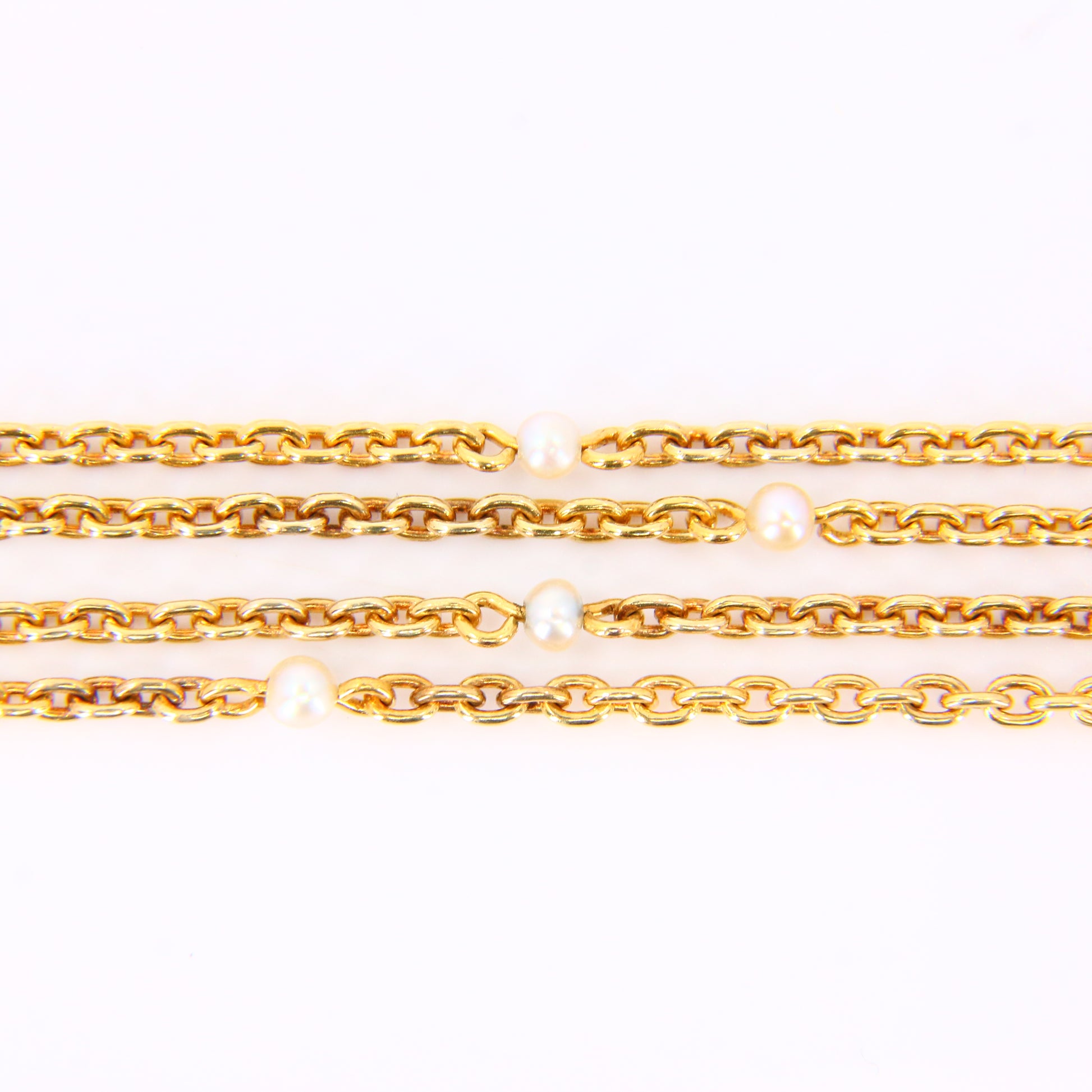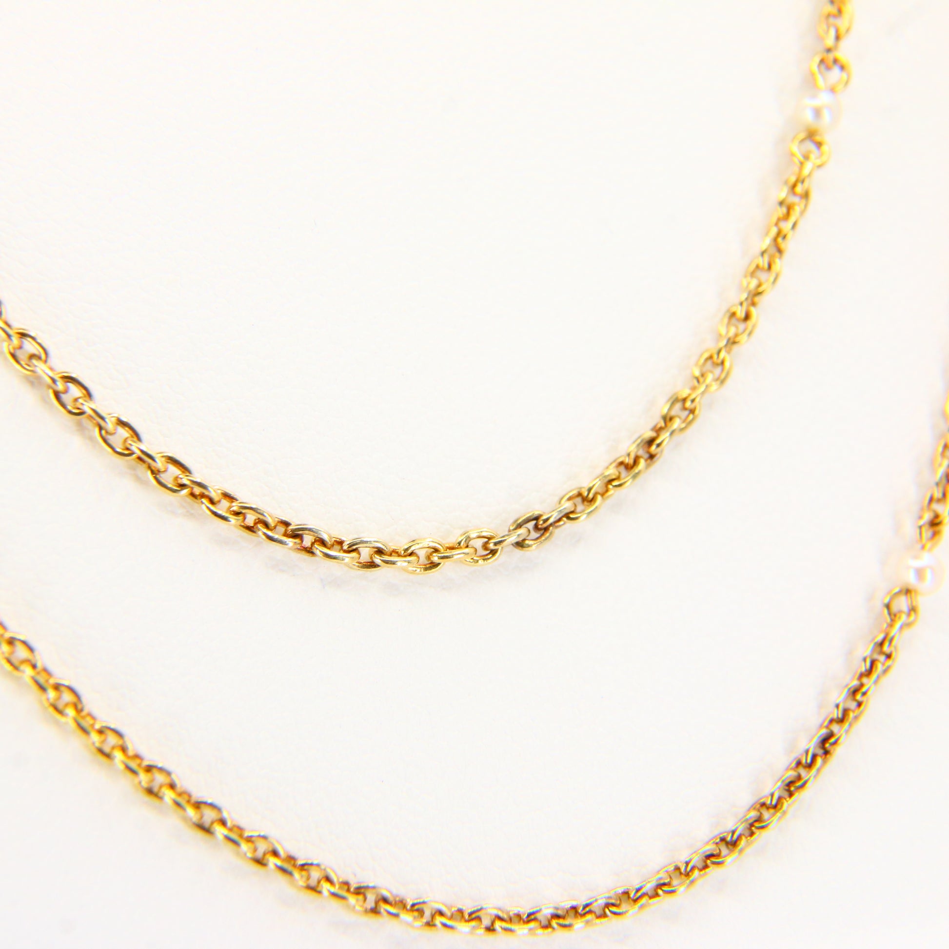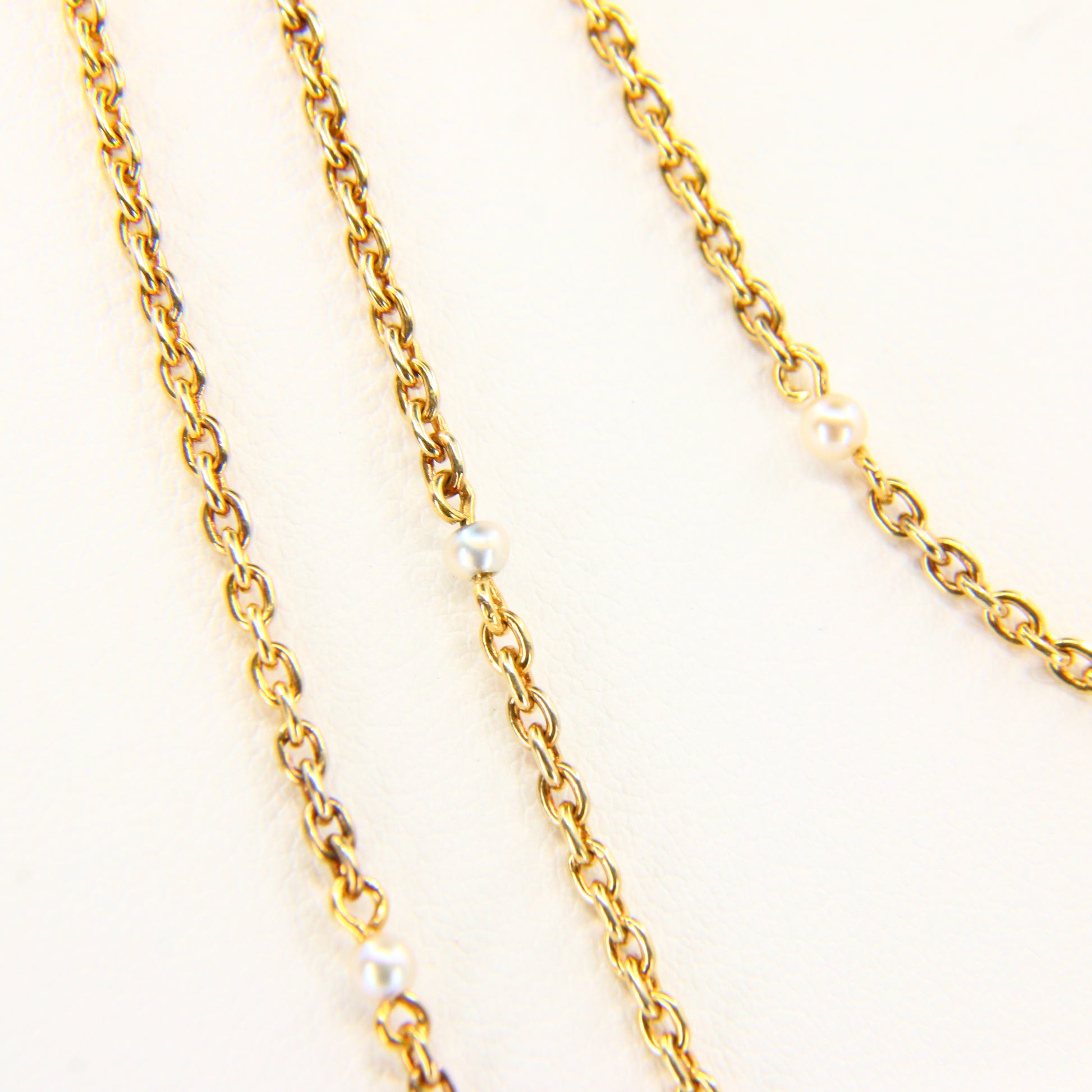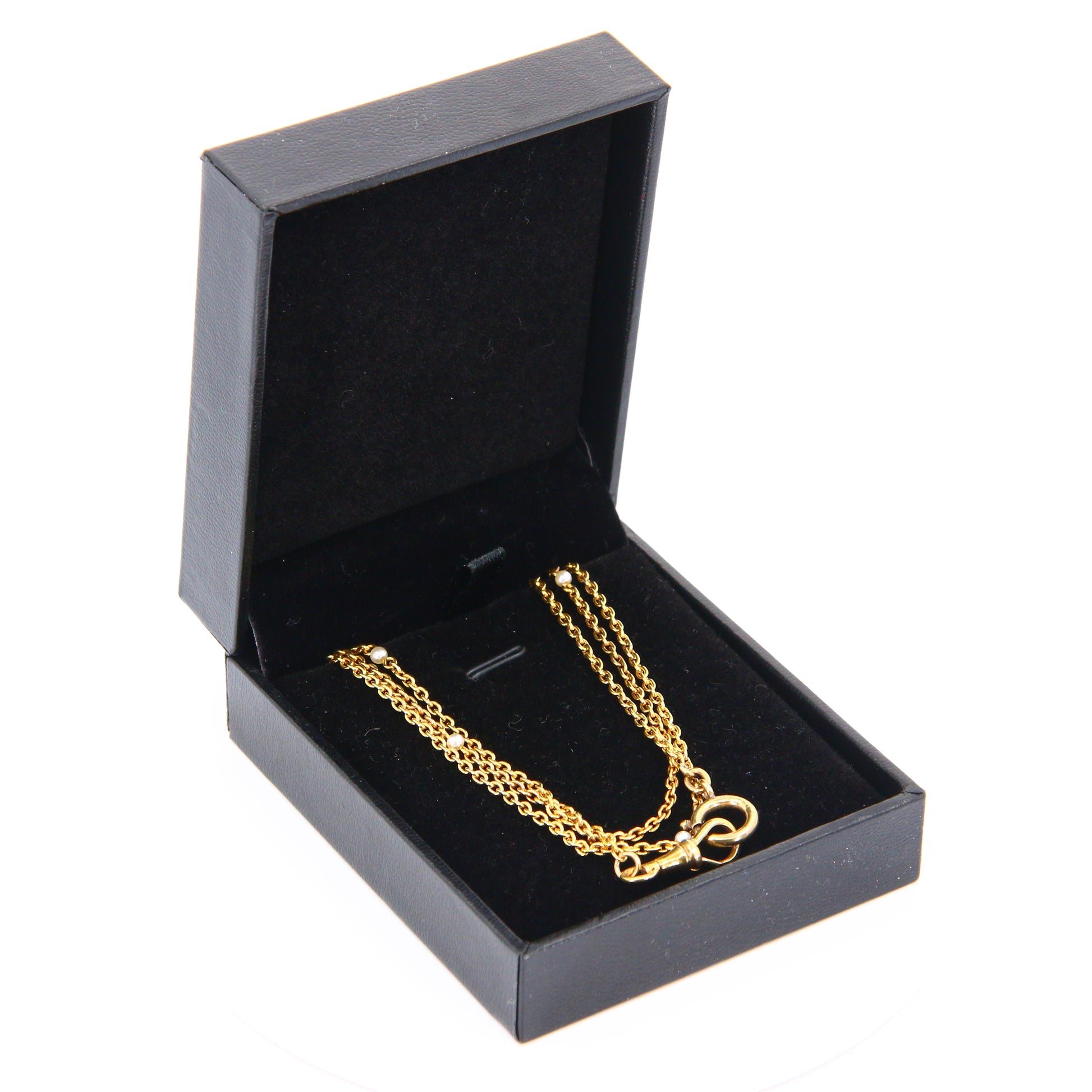 Antique 15k Victorian Guard Chain – 52" Yellow Gold, Pearl, Boxed
