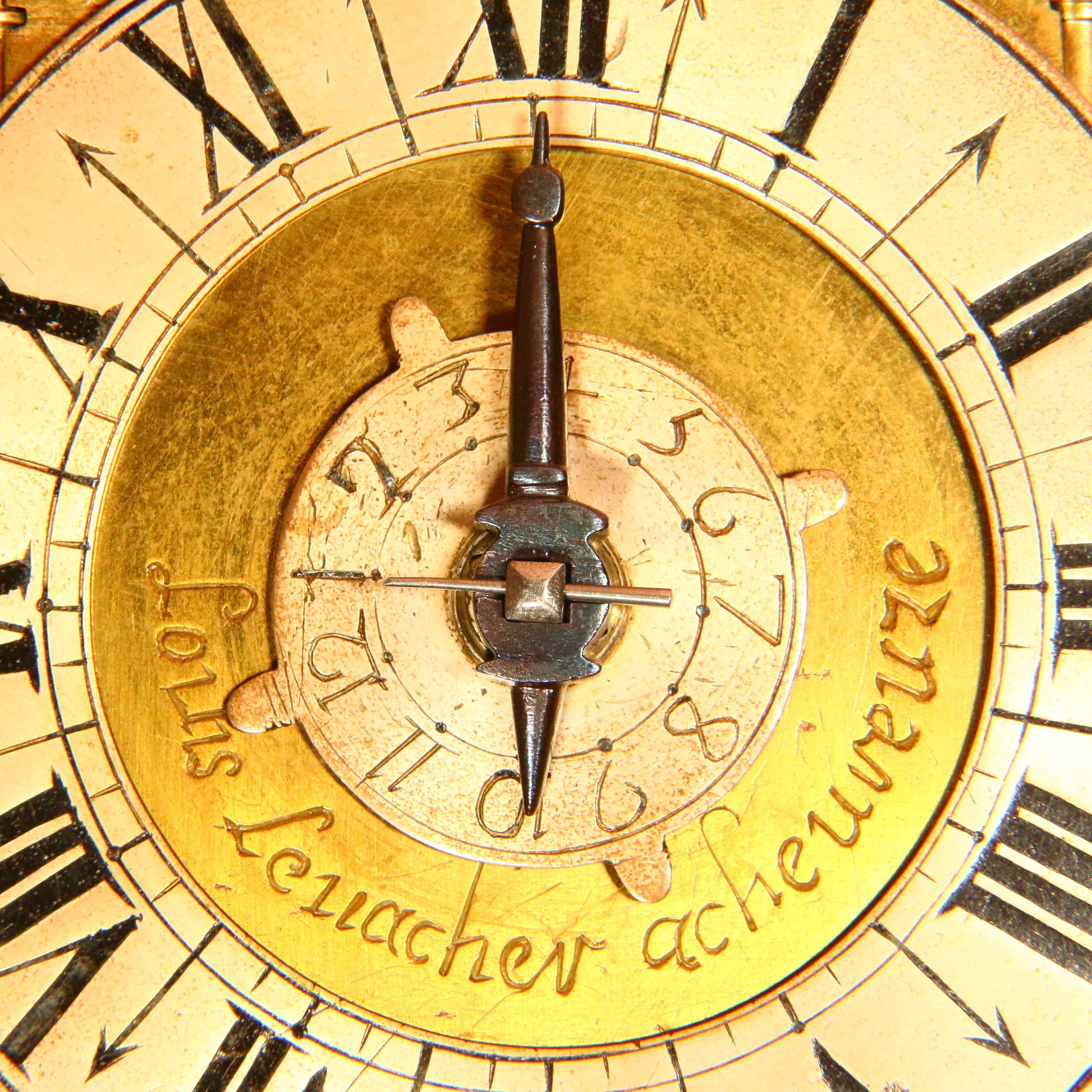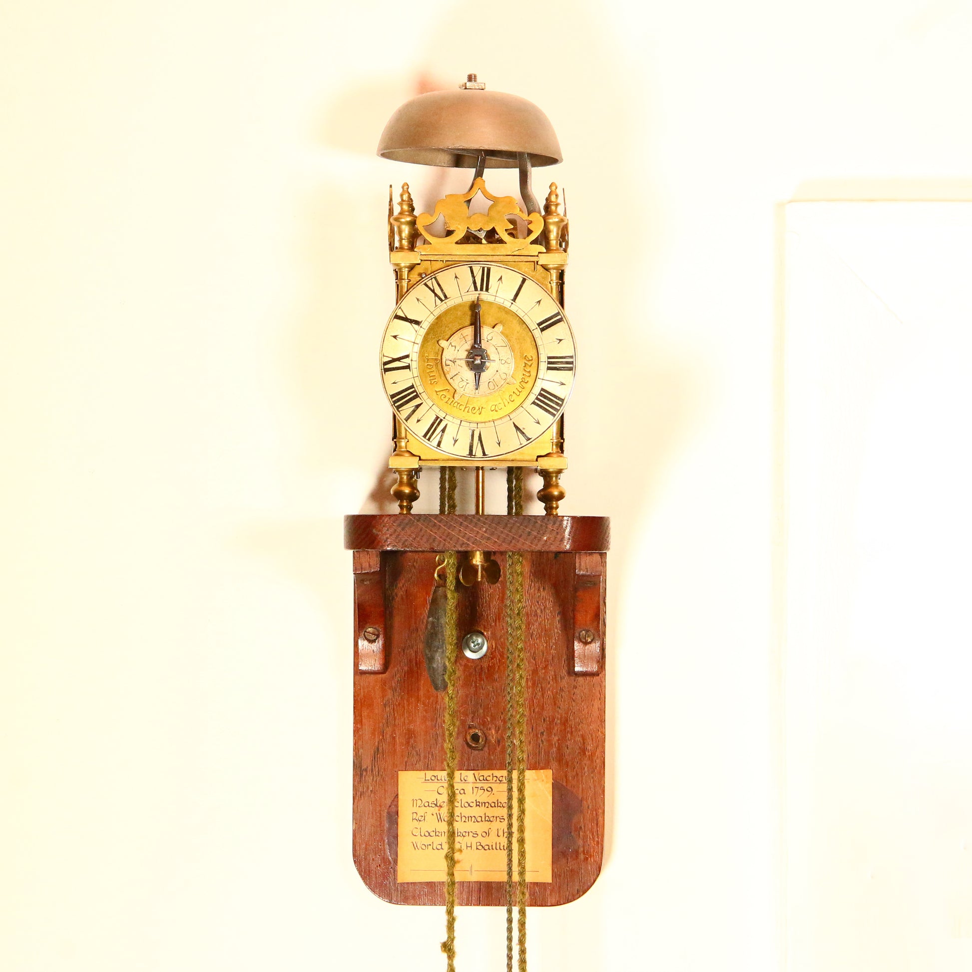 Antique Verge Lantern Alarm Clock. Brass dial Signed Louis Le Vacher. Circa 1759.