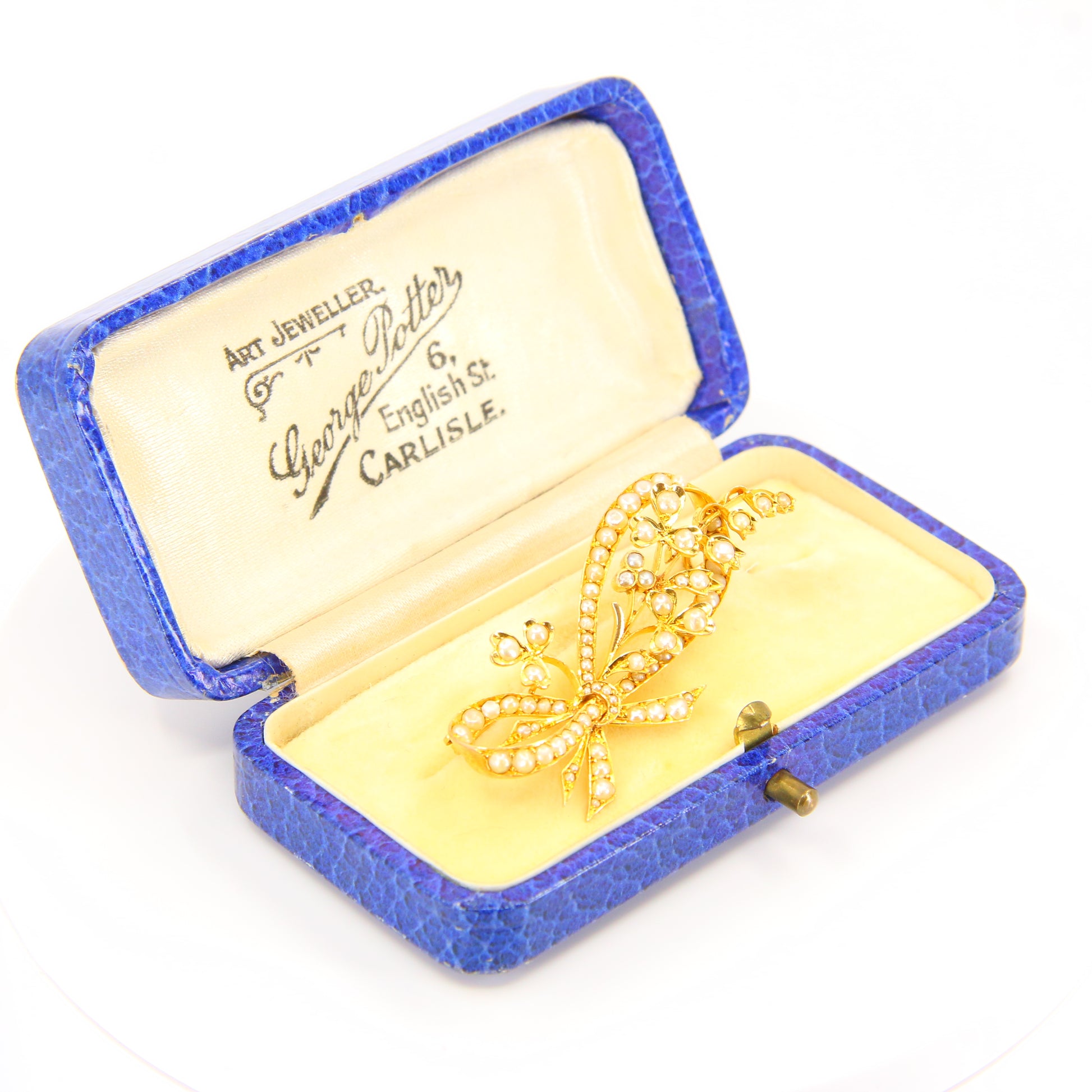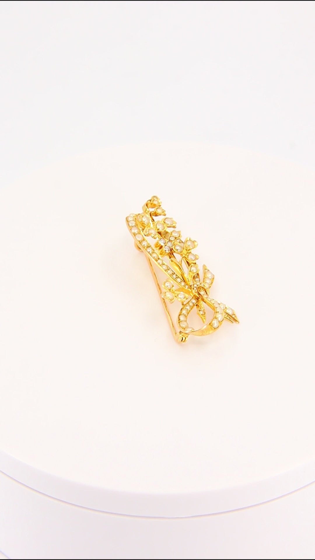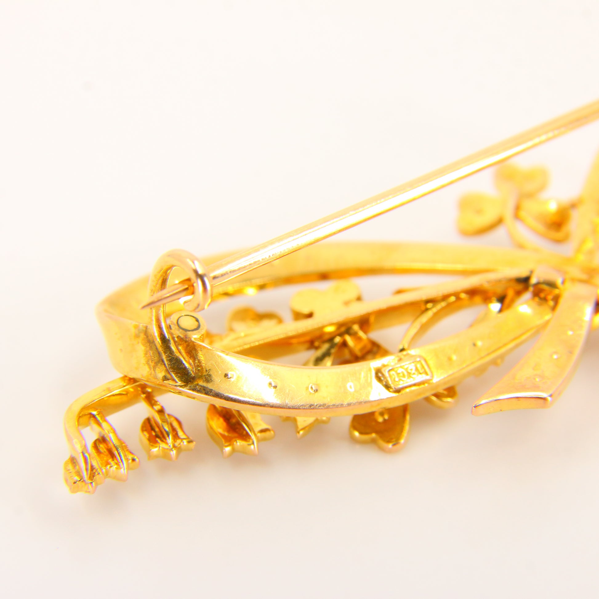 Antique 18ct Floral Bow Brooch 18 Carat Gold Pearl Dot Brooch Yellow Gold Boxed