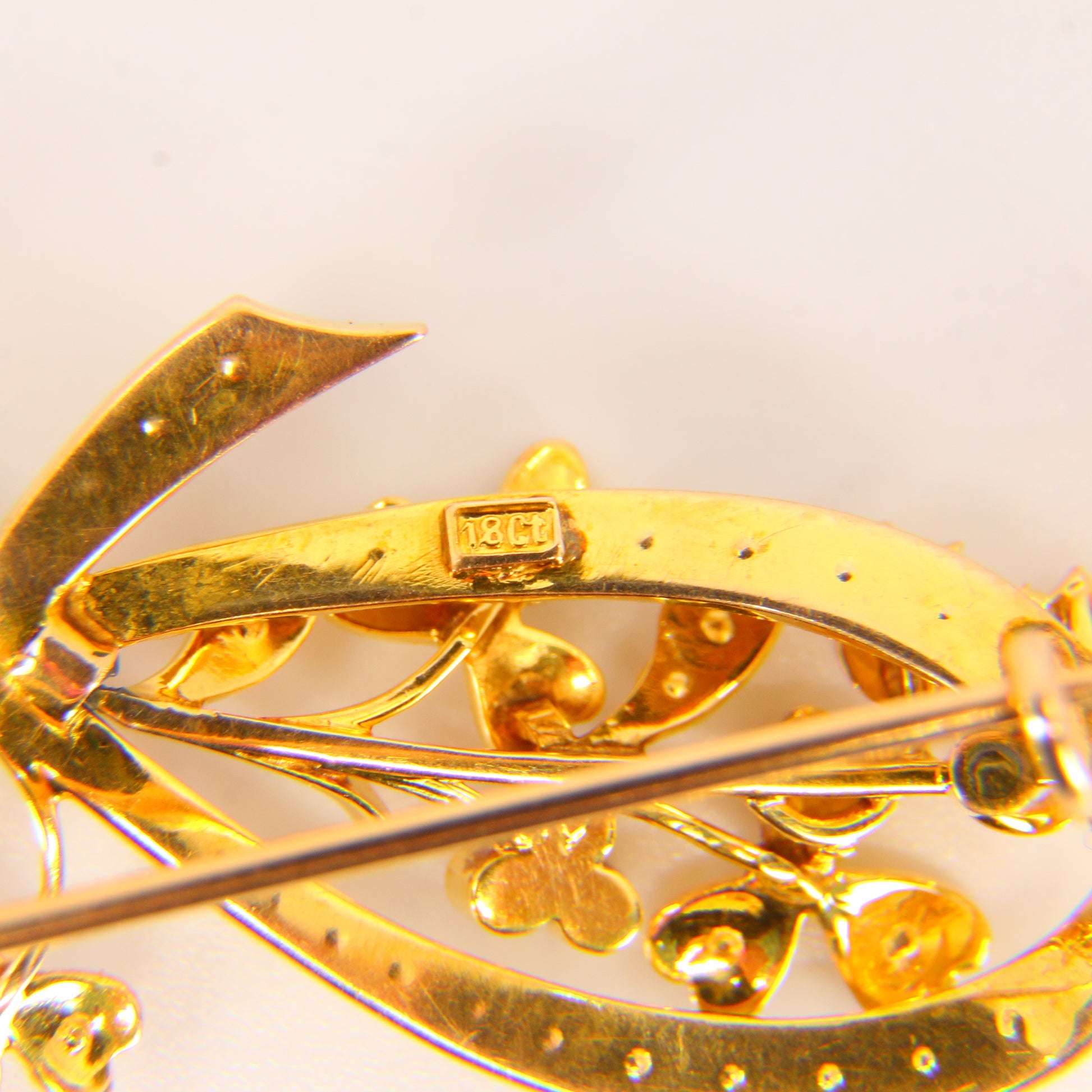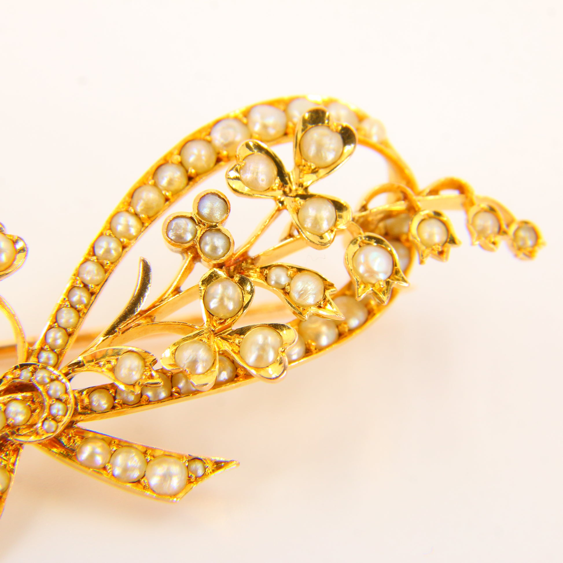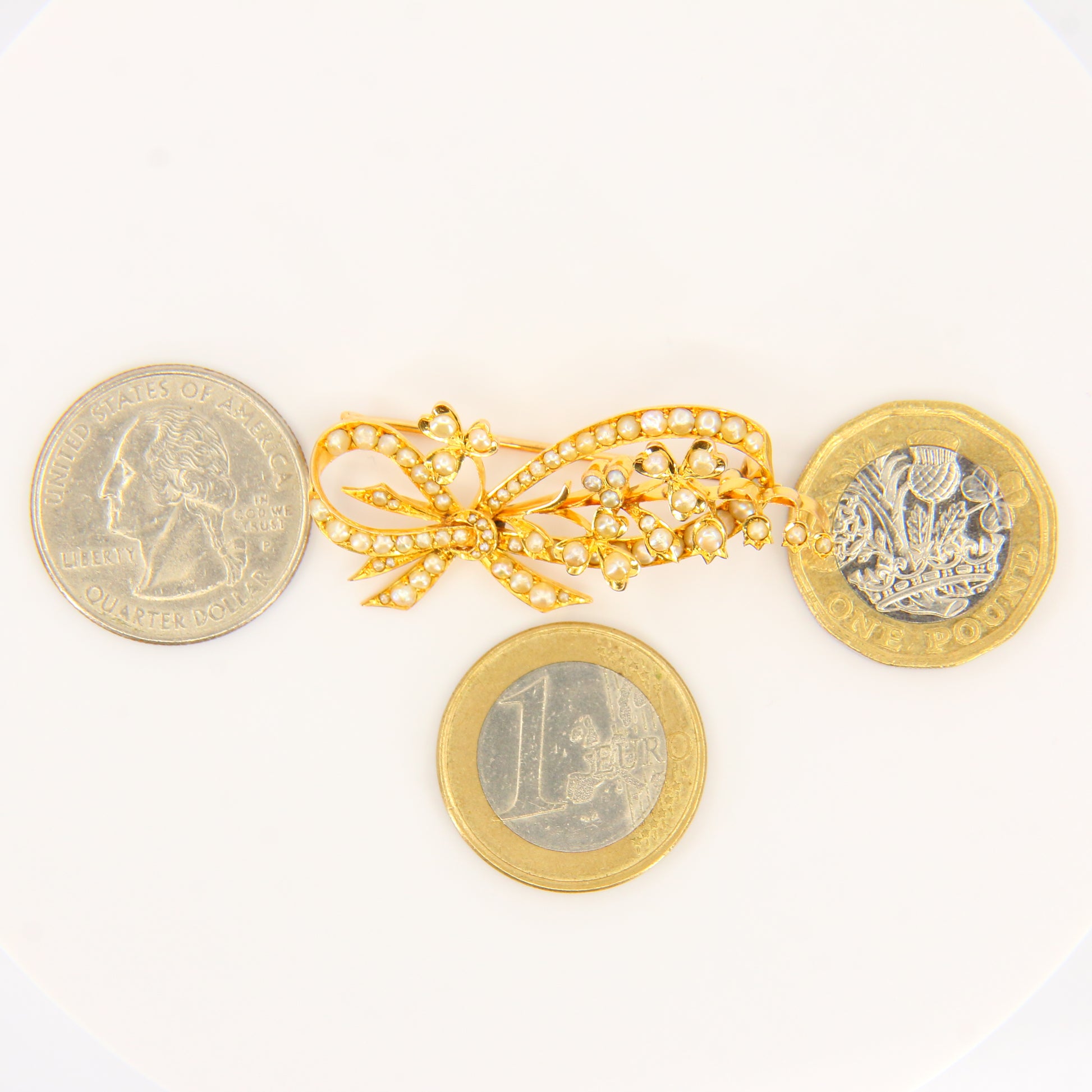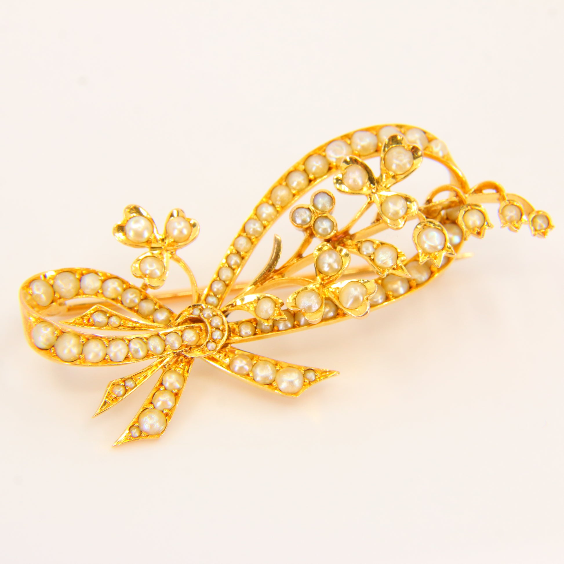 Antique 18ct Floral Bow Brooch 18 Carat Gold Pearl Dot Brooch Yellow Gold Boxed