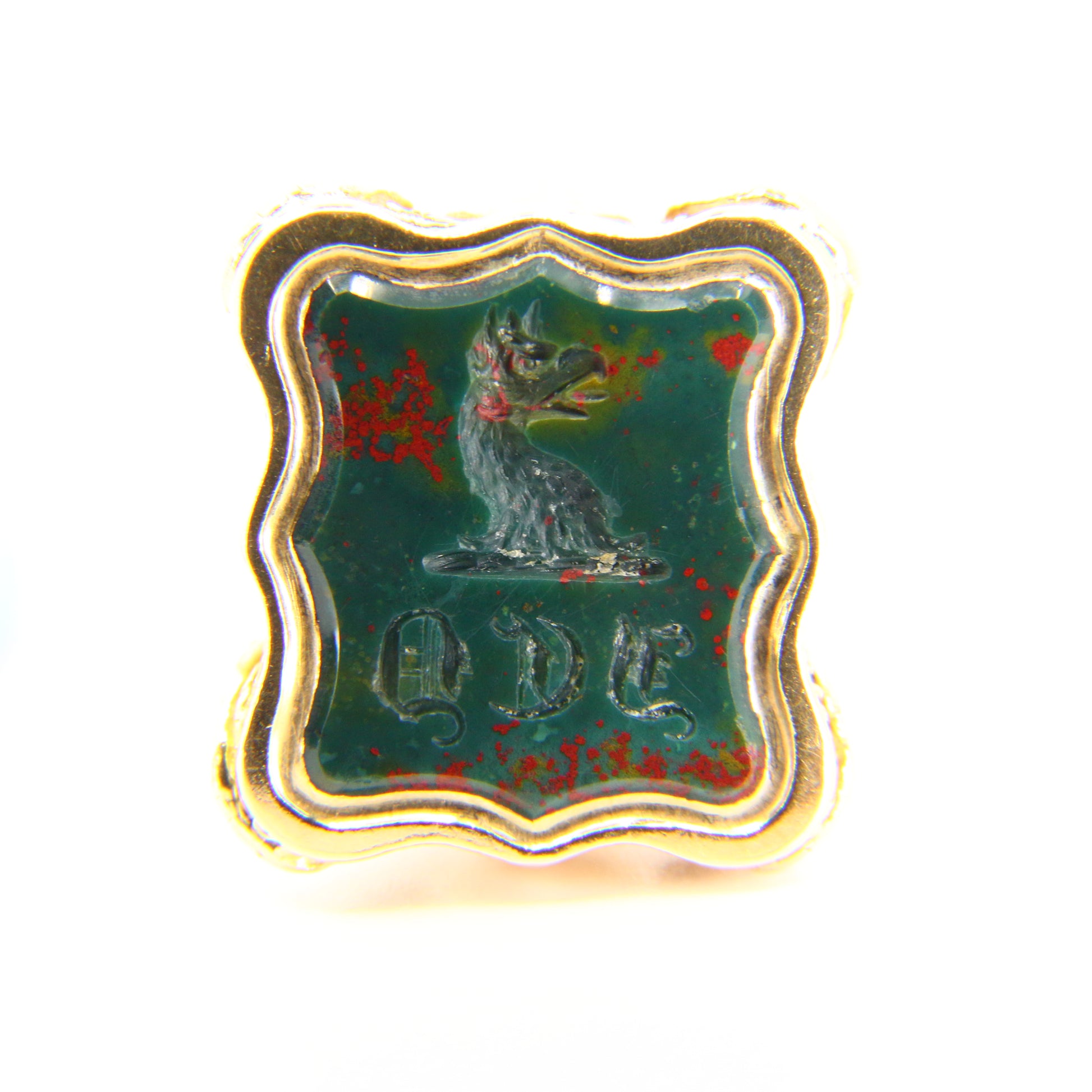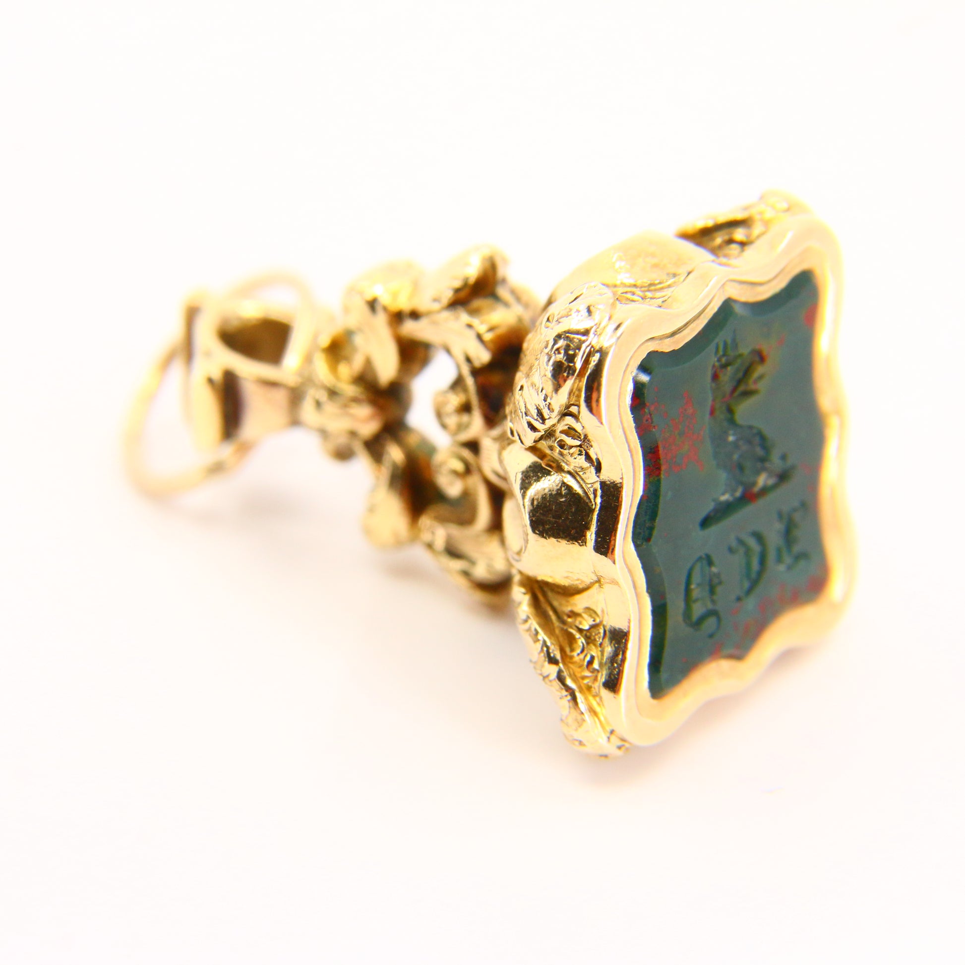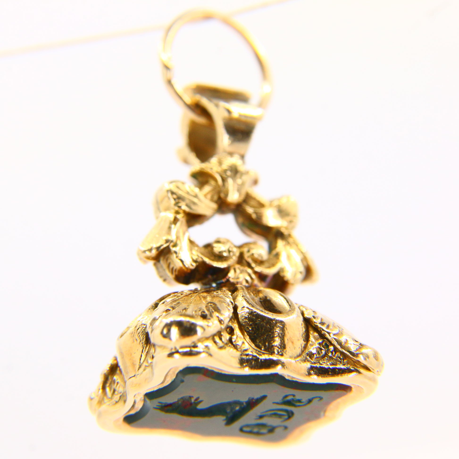 Antique 9ct Bloodstone Armorial Seal Pendant 9 Carat Yellow Gold Charm Drop Fob Gift