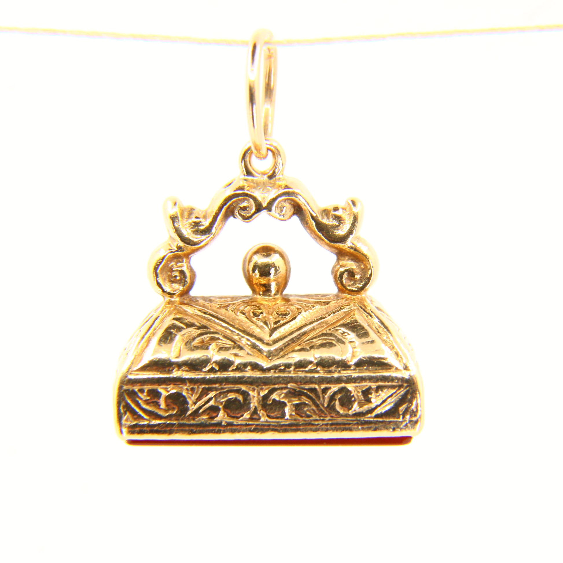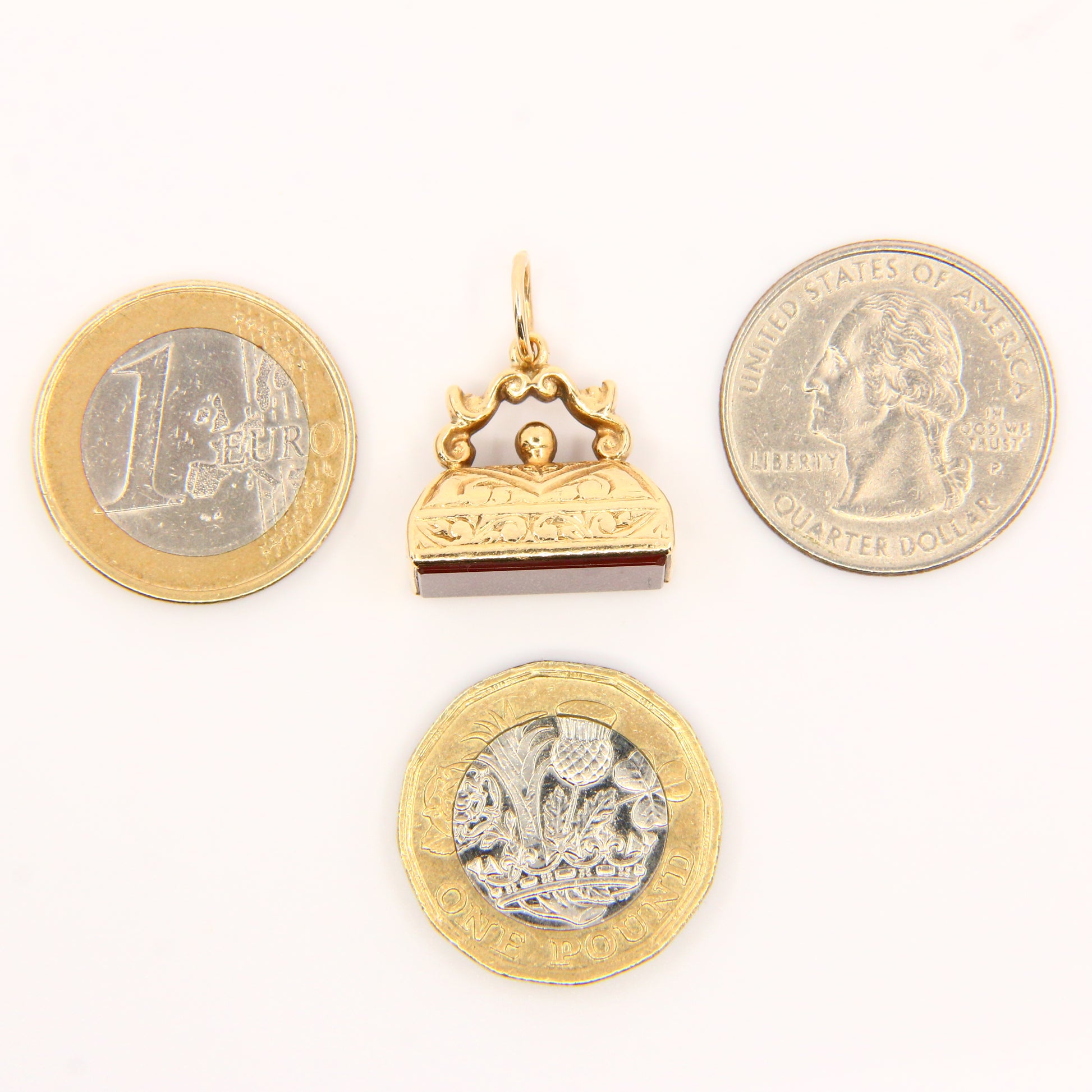Antique 9ct Carnelian Stone Drop Fob Pendant Hallmarked Yellow Gold Charm Gift