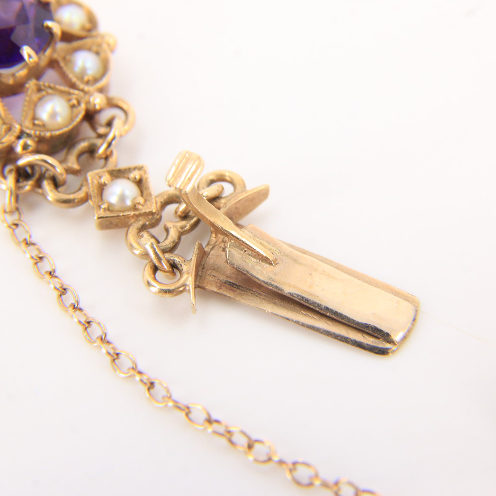 Antique 9ct Gold Hallmarked Scottish Bracelet Amethyst Seed Pearl Boxed Gift