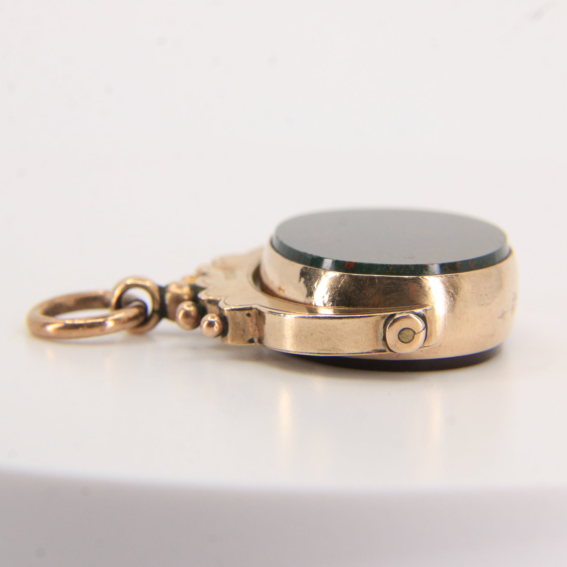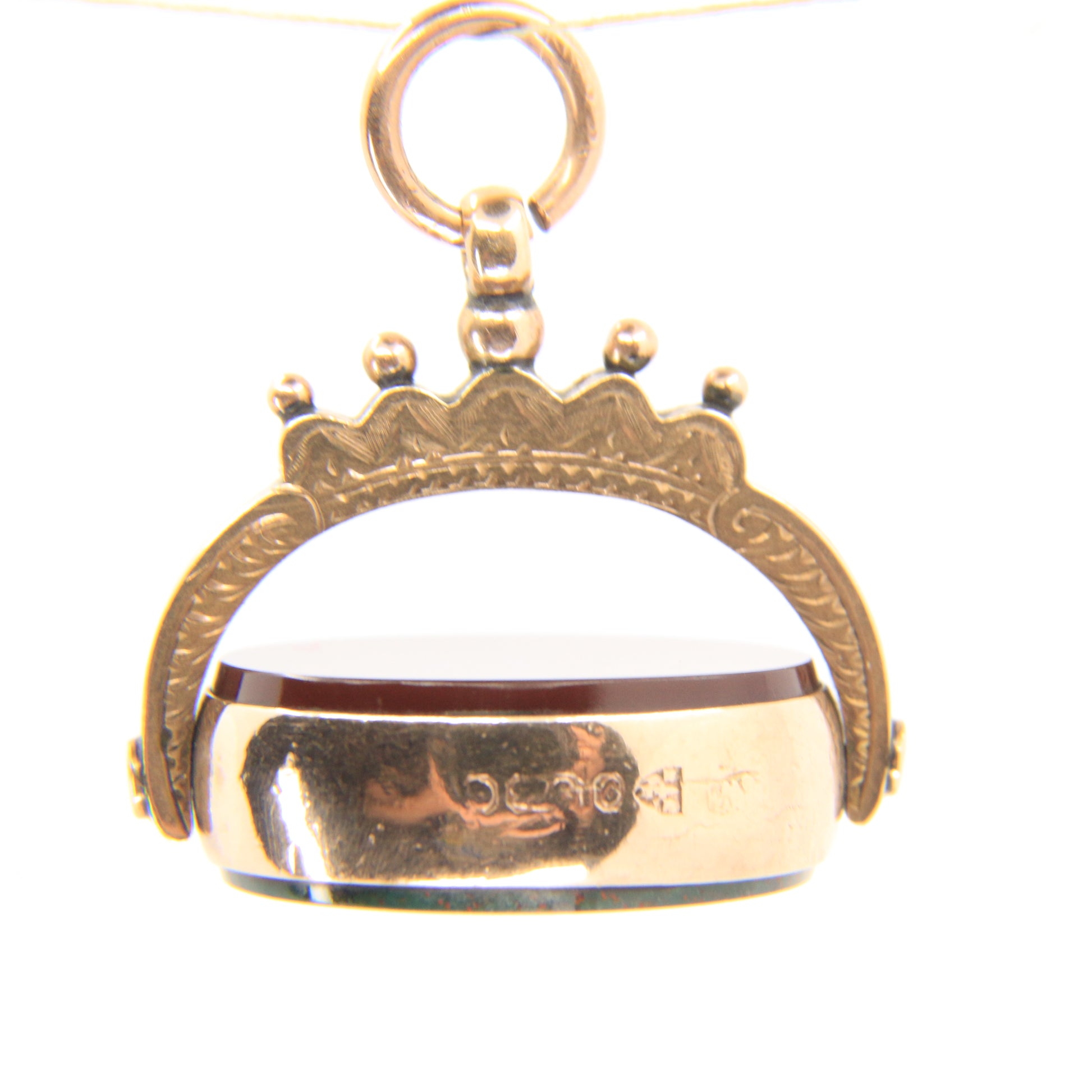 Antique 9ct Gold Hallmarked Spinner Pendant Fob Bloodstone Carnelian Charm