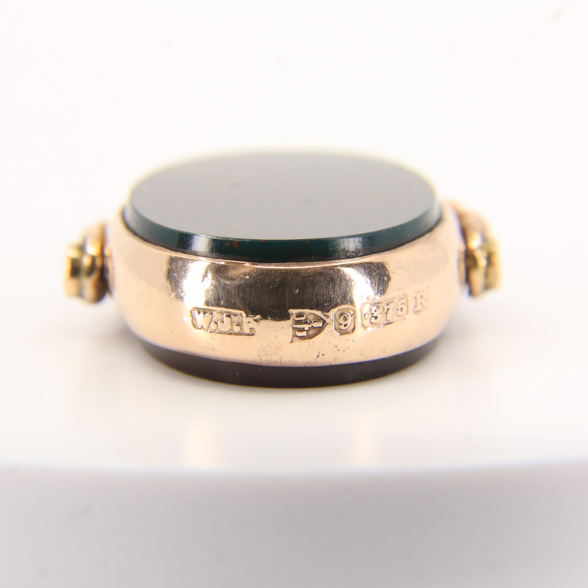 Antique 9ct Gold Hallmarked Spinner Pendant Fob Bloodstone Carnelian Charm