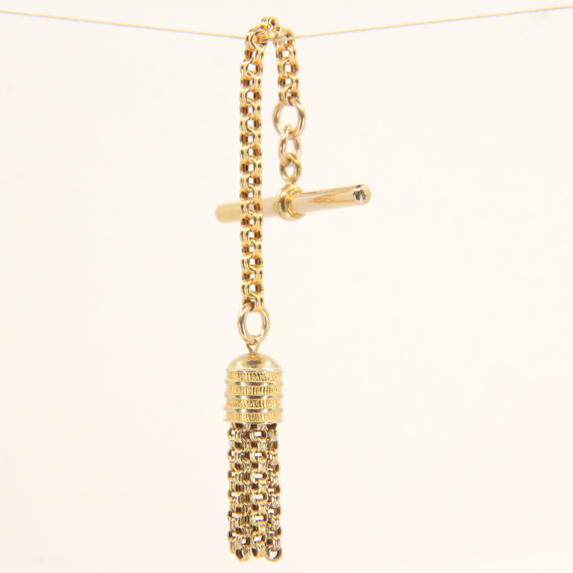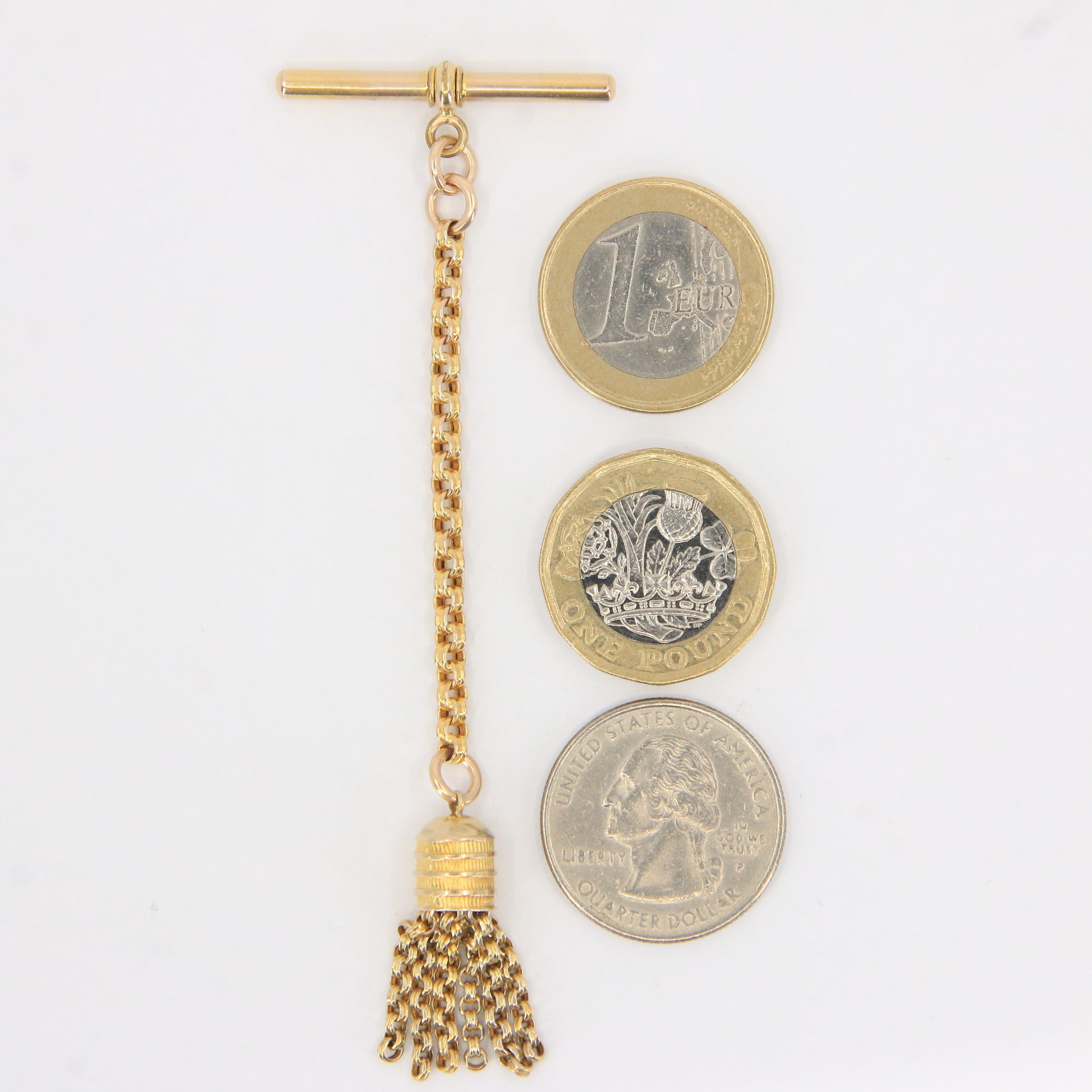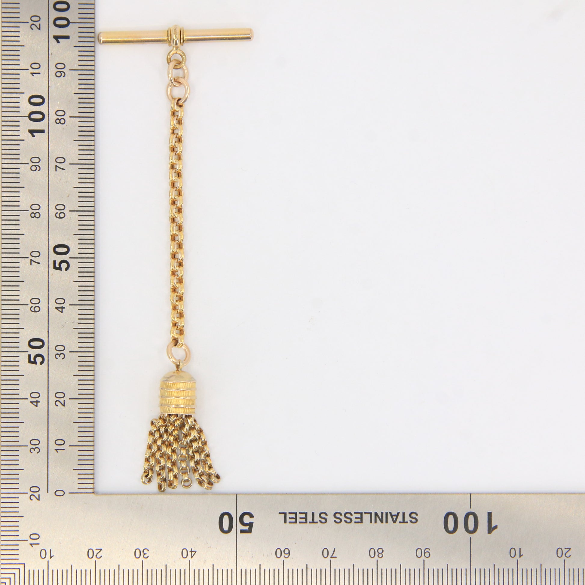 Antique 9ct solid yellow gold tassel drop on T-bar with fancy chain, part of an Albertina-style watch chain. A charming and versatile gift for vintage jewellery lovers or fob chain collectors.