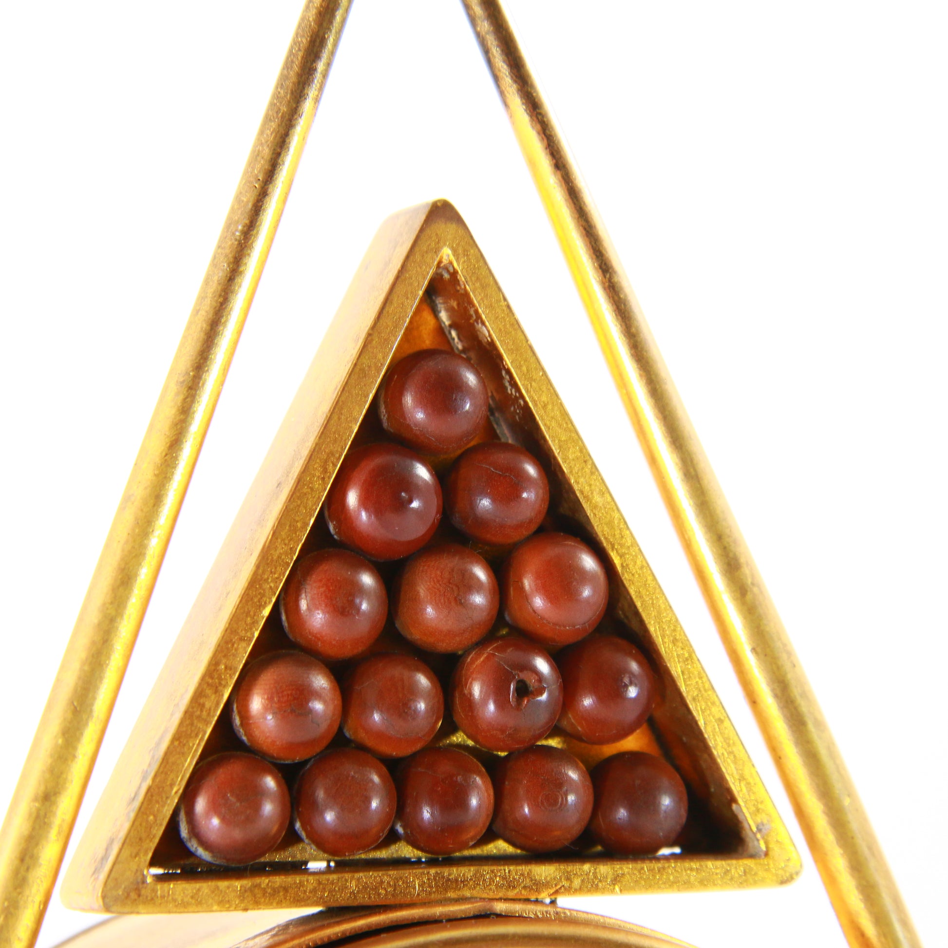 surmounted with a rack of balls with a rest and three balls underneath it.
