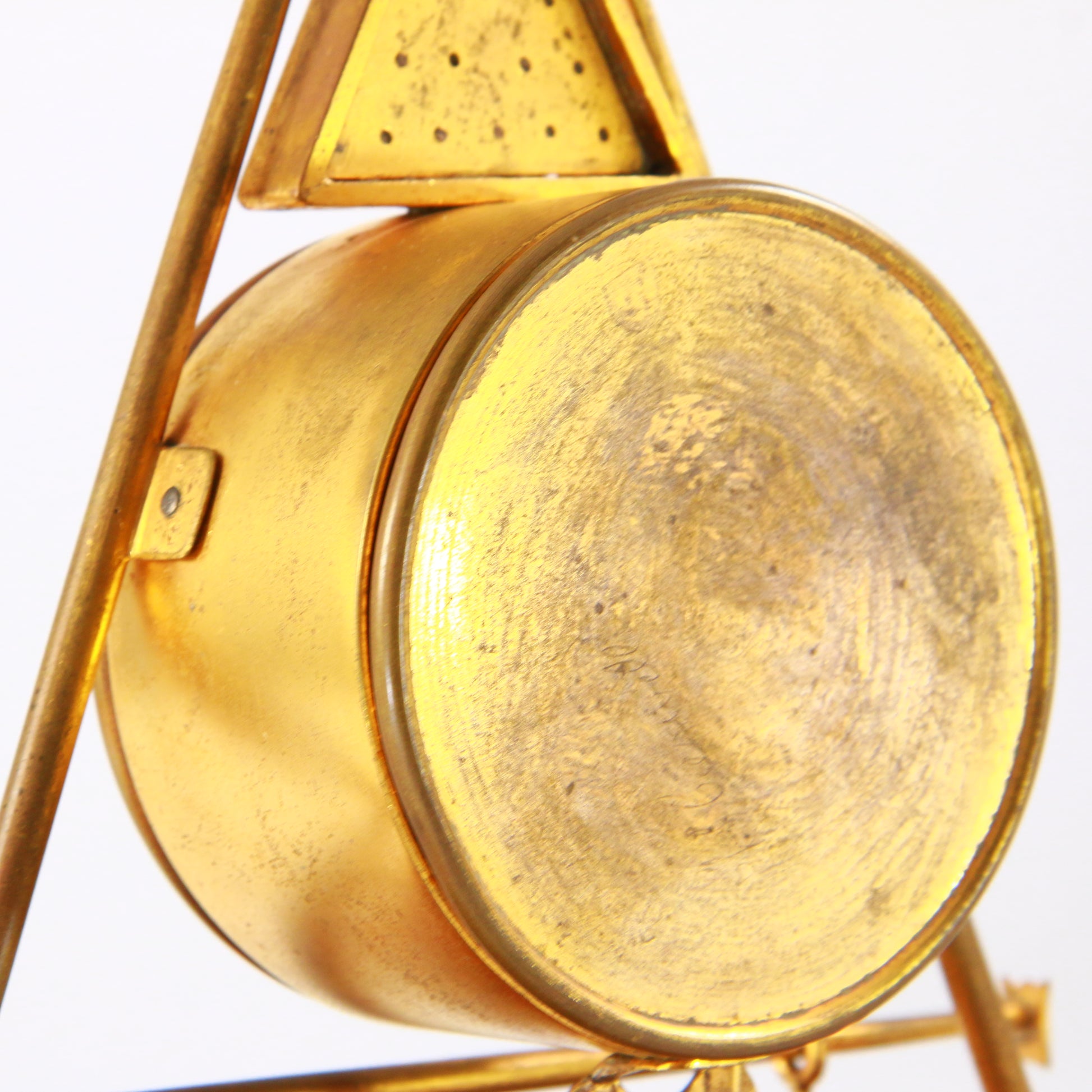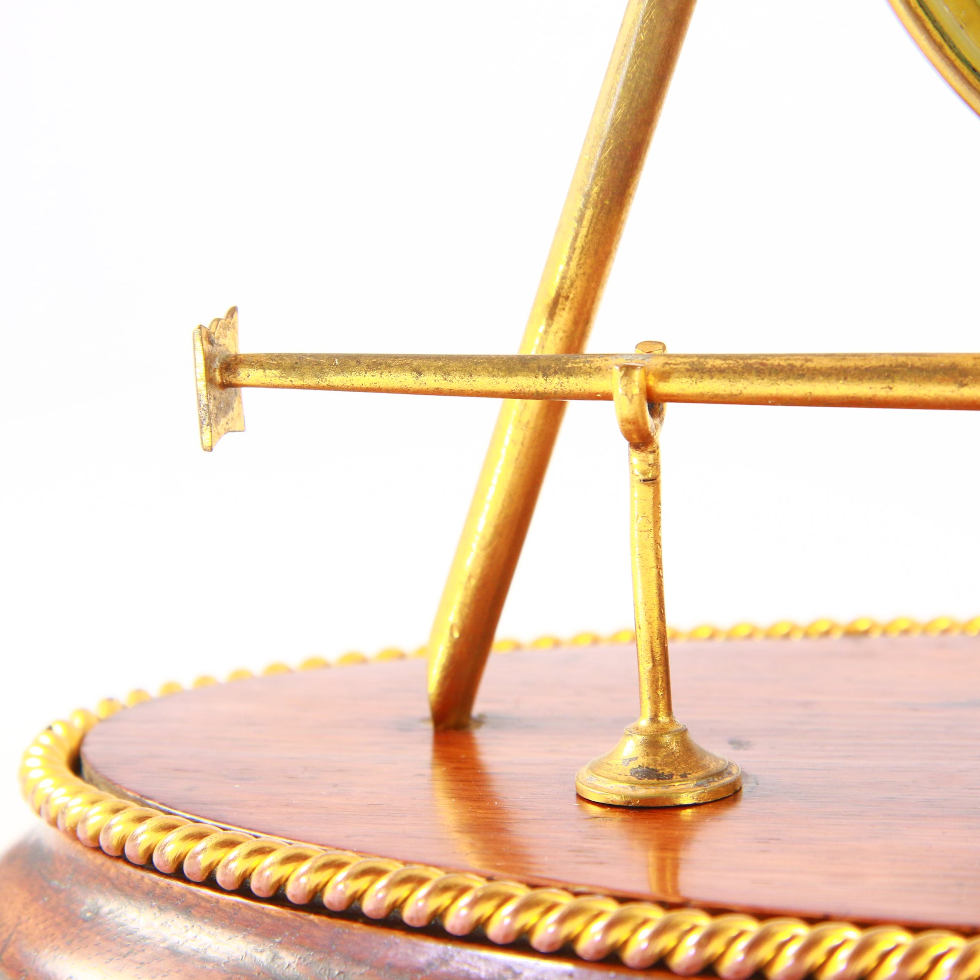 The clock standing on an oak base, the dial flanked with gilt brass cues and