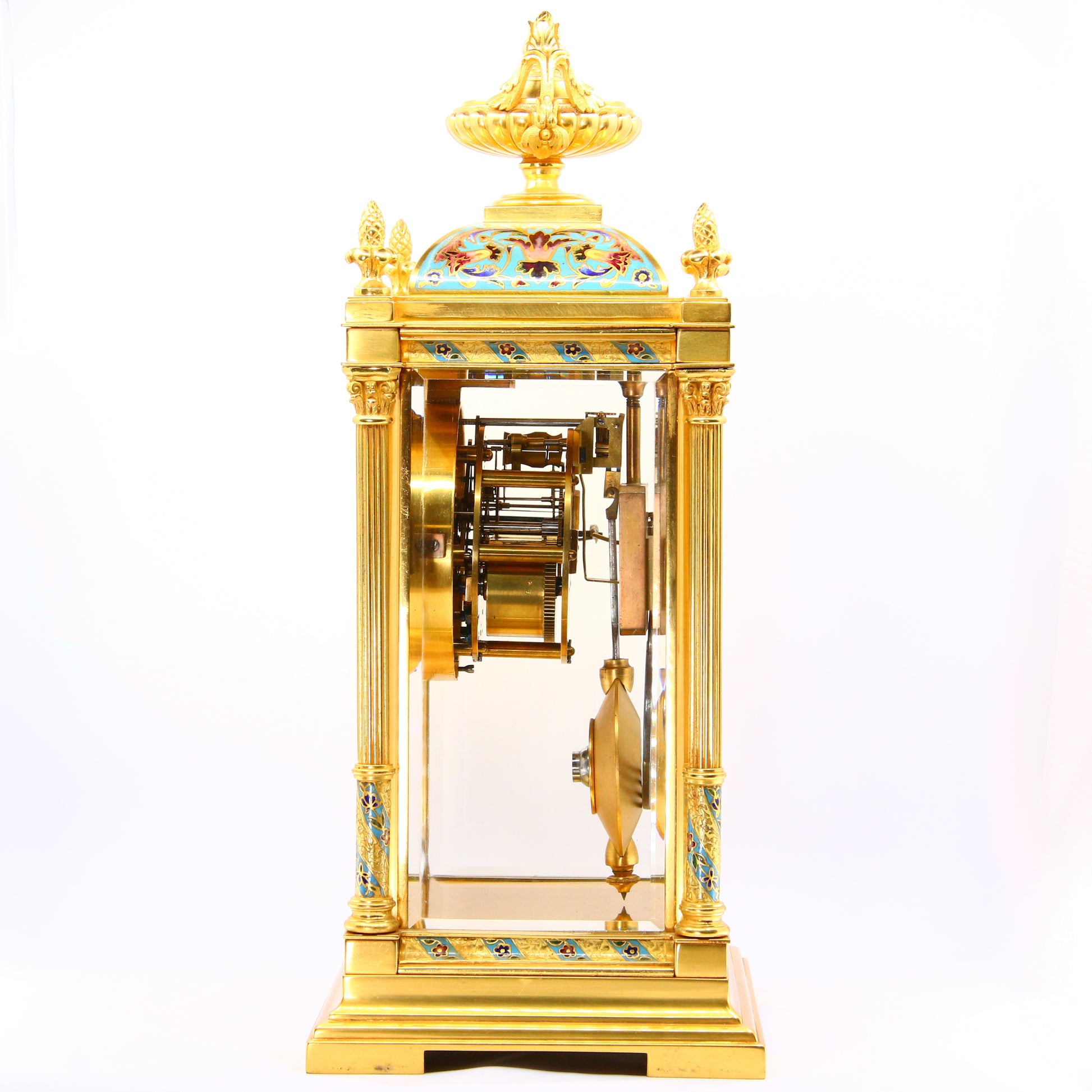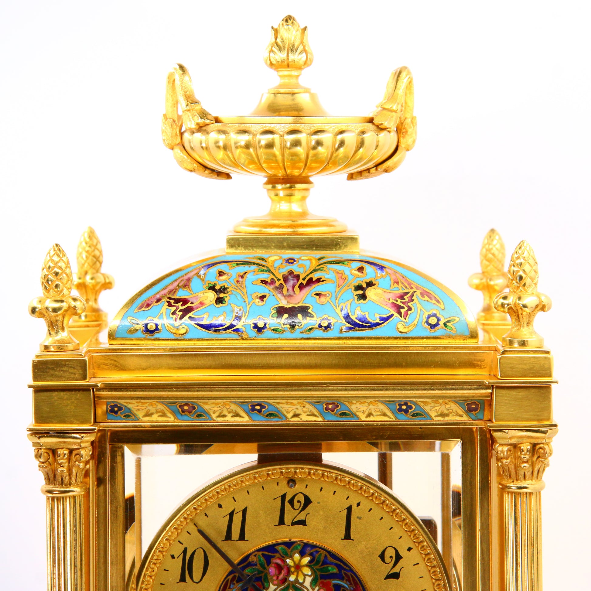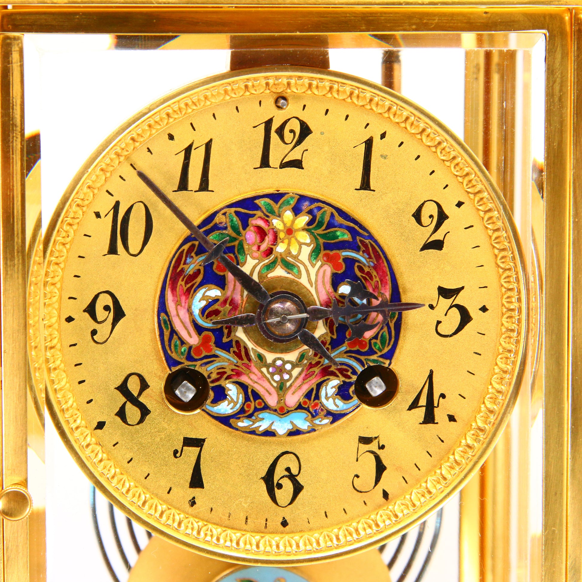 Antique French Ormolu and Champleve Enamel 4-Glass Mantel Clock, Circa 1900
