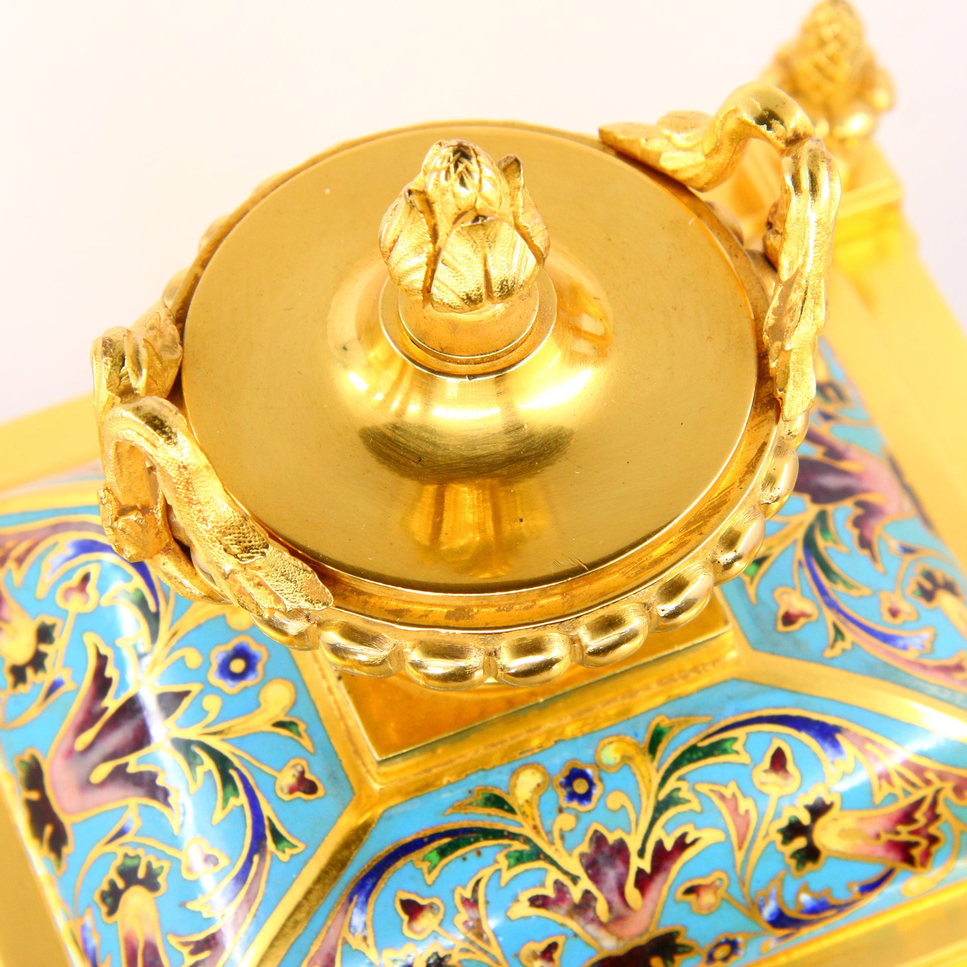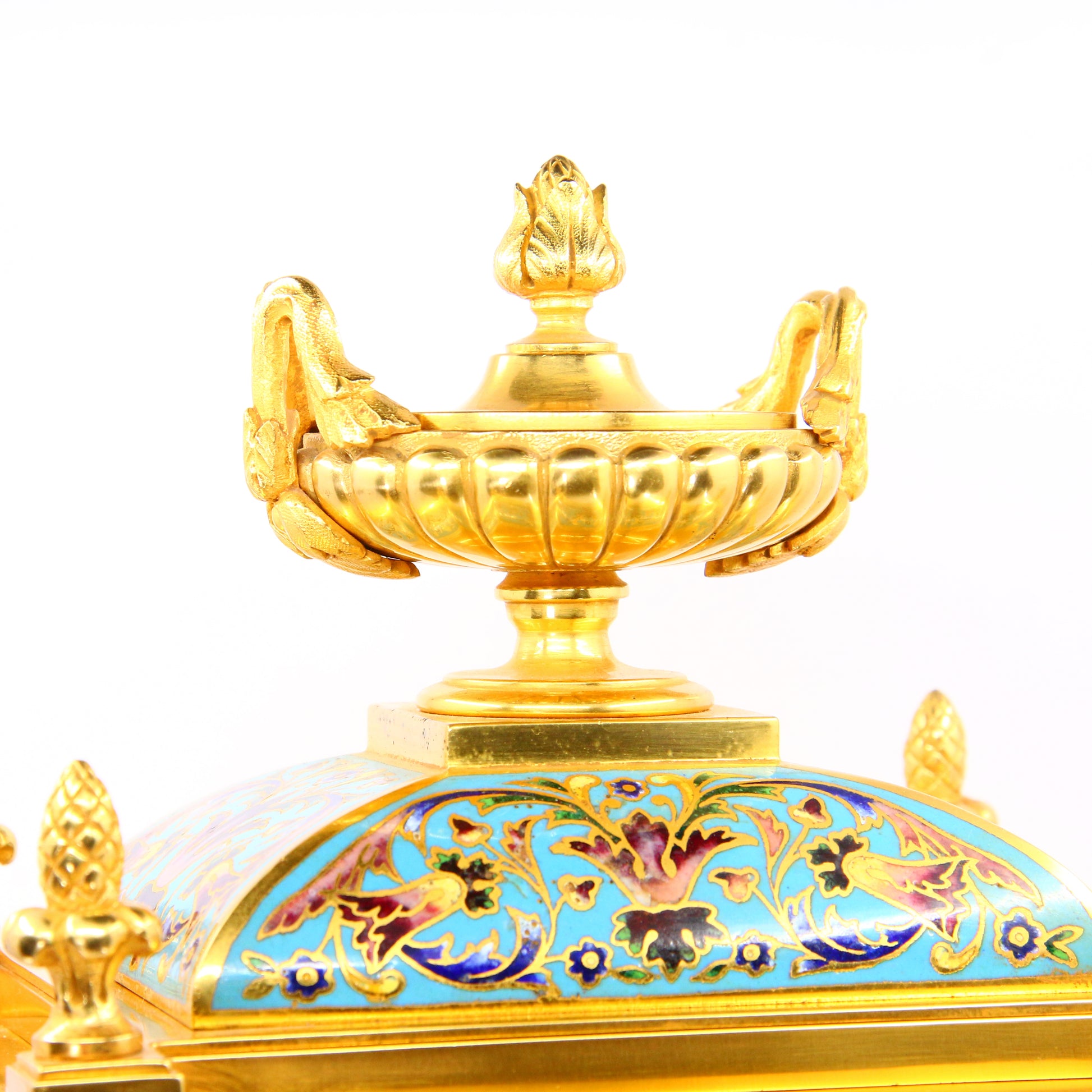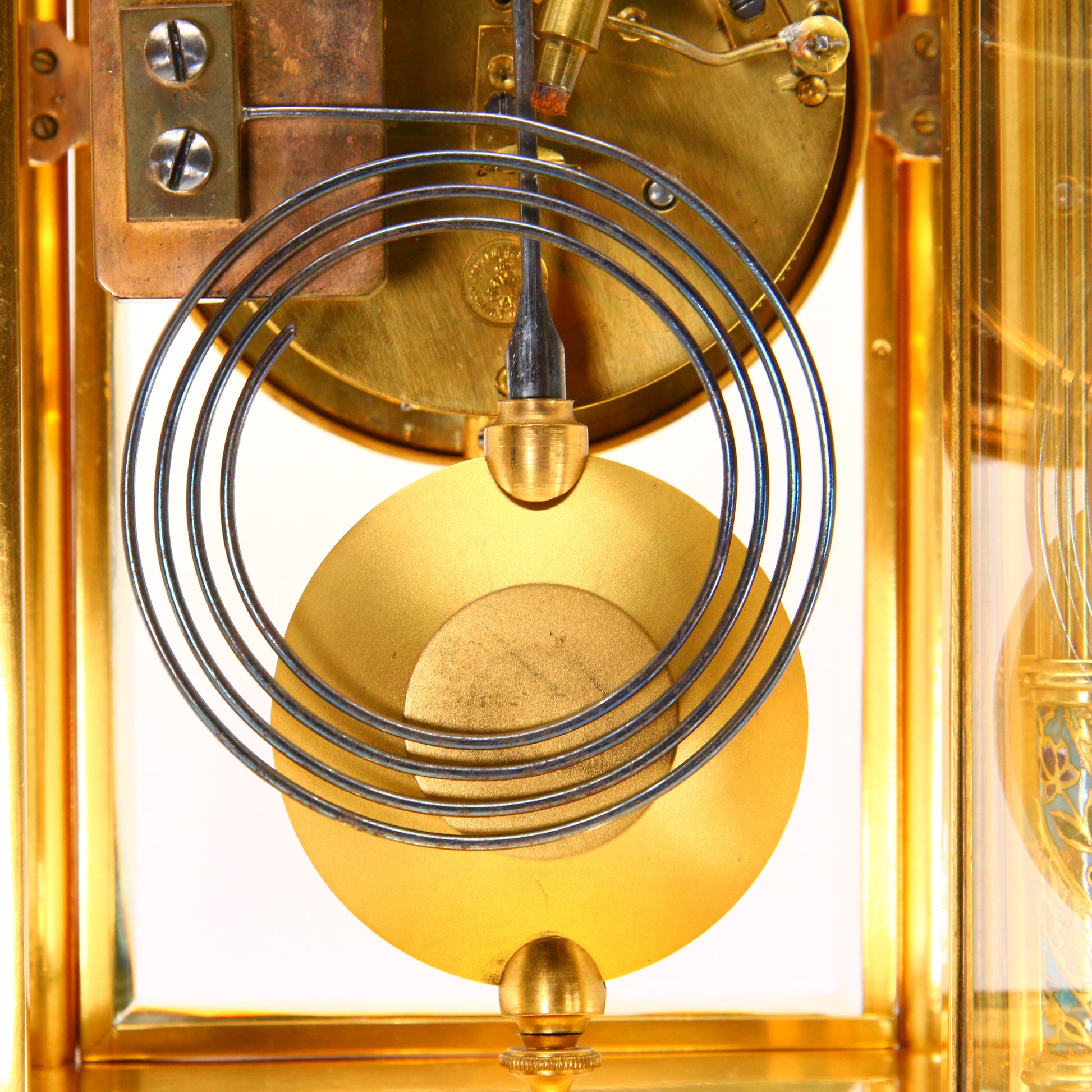 Antique French Ormolu and Champleve Enamel 4-Glass Mantel Clock, Circa 1900