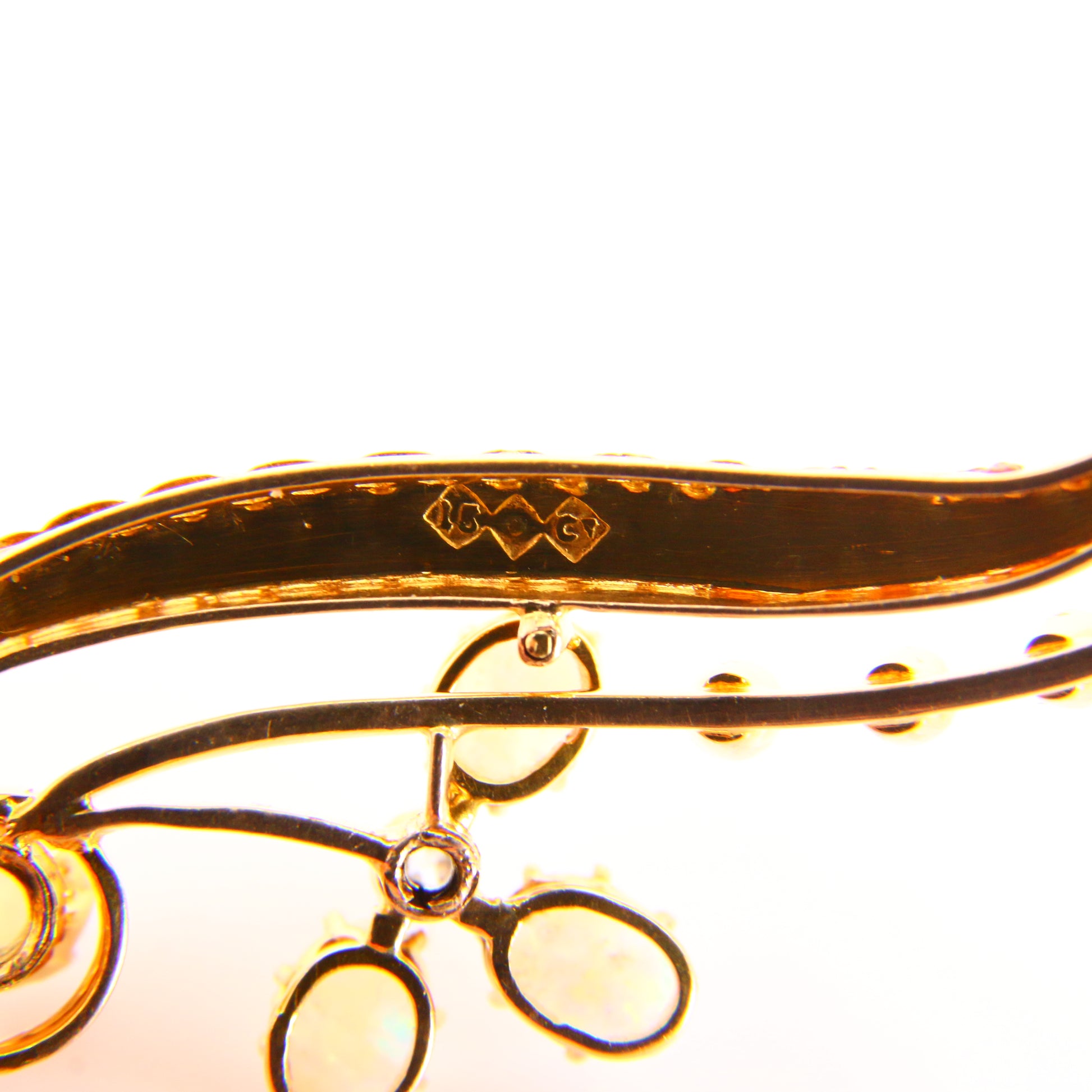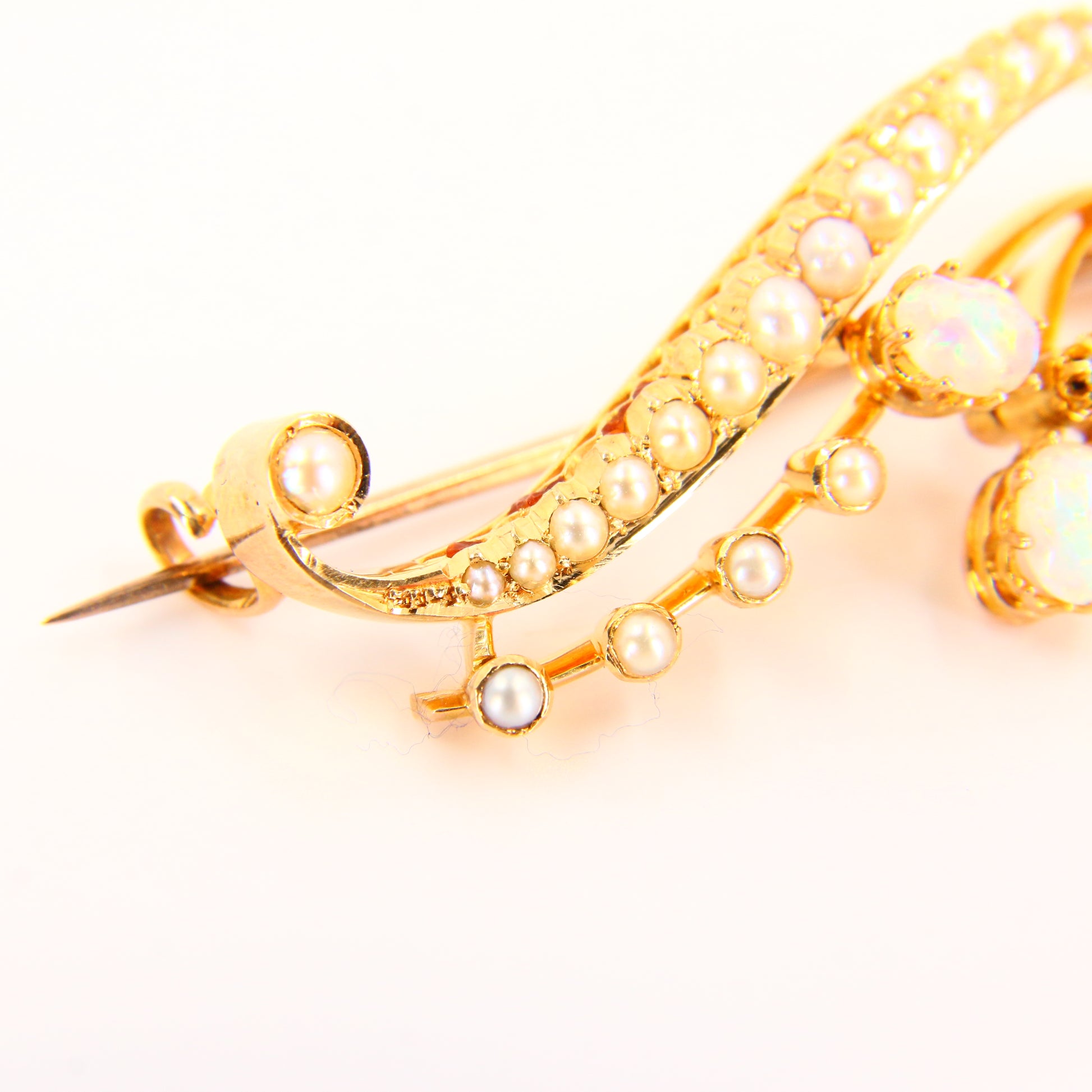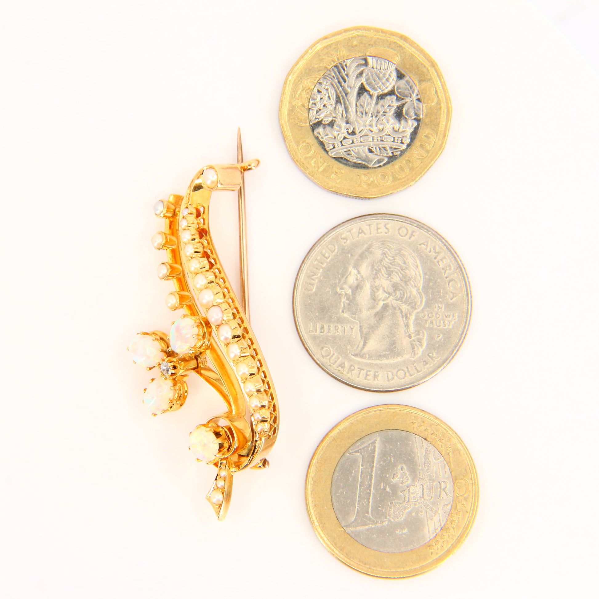 Antique Edwardian 15ct Gold Opal Diamond Brooch Yellow Gold Natural Stone Boxed