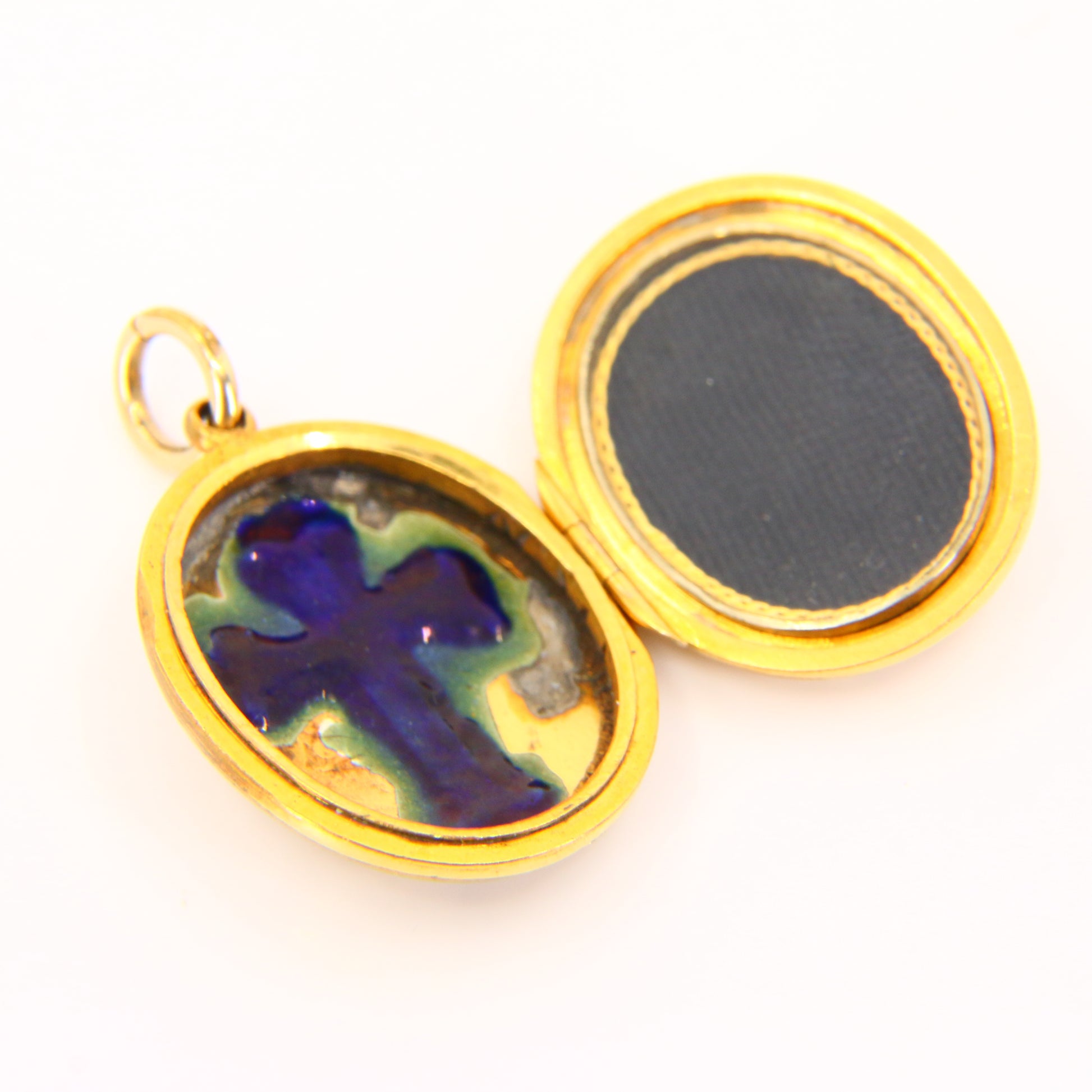 Antique Enamel Cross Locket 12ct Back & Front Locket with 9ct Suspension Loop