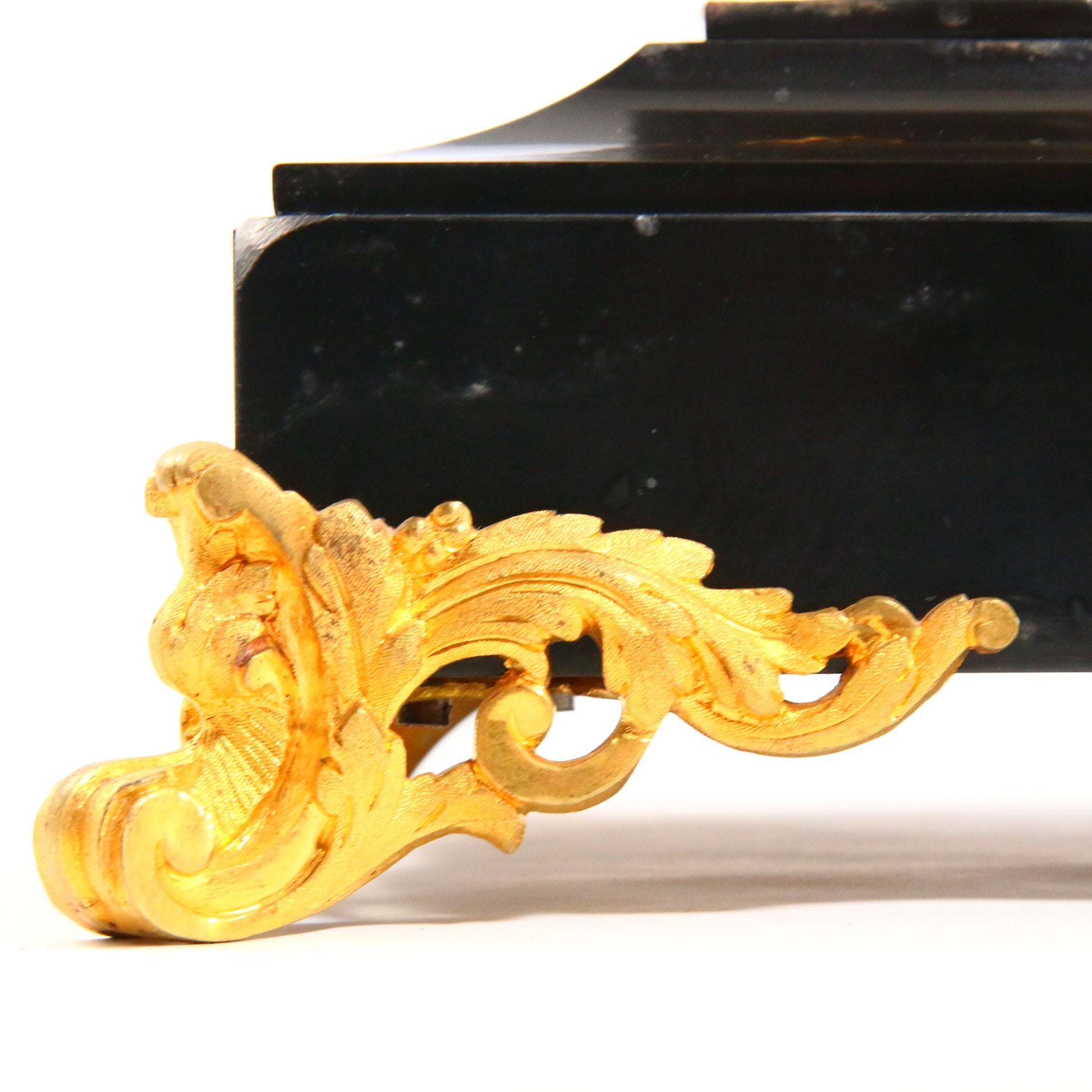 Antique French Mystery Clock Circa 1875 by A.R.Guilmet Black Marble Table Clock
