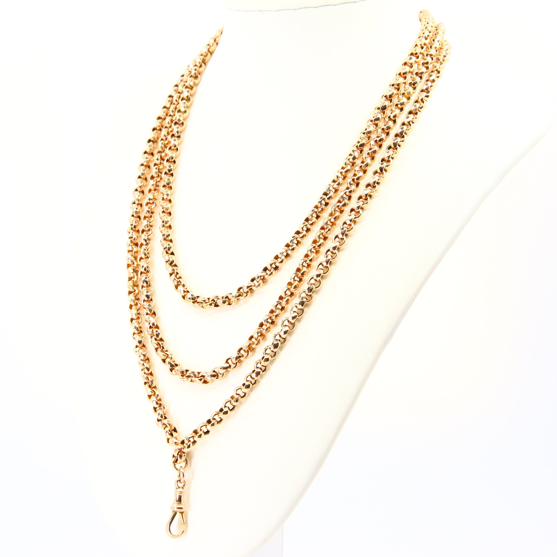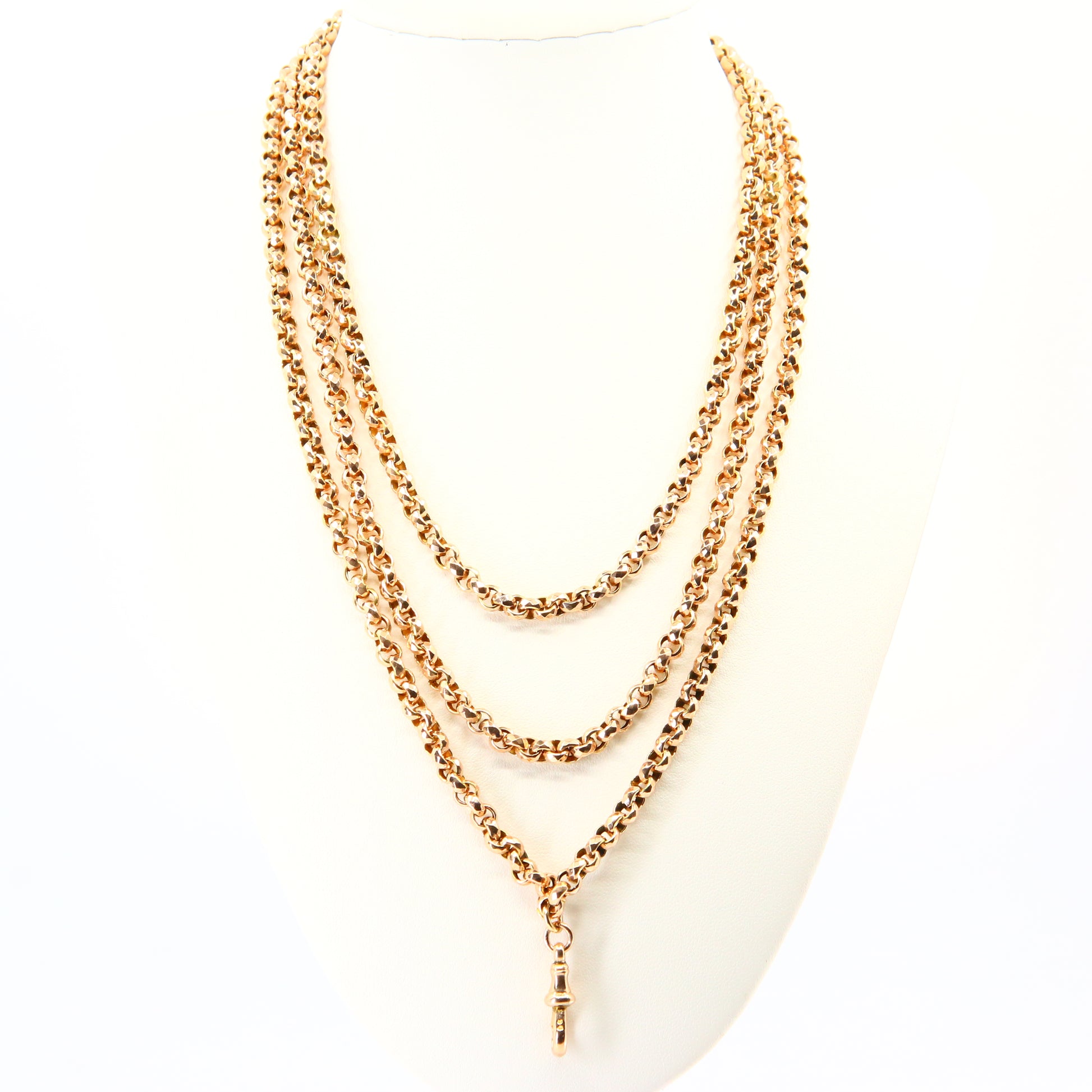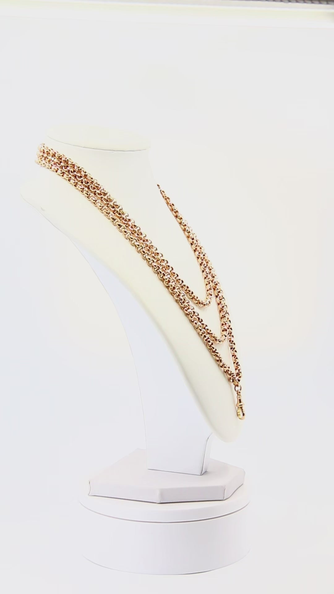 Antique 54" Long 9ct Gold Muff Guard Watch Chain Necklace Yellow Gold Hallmarked