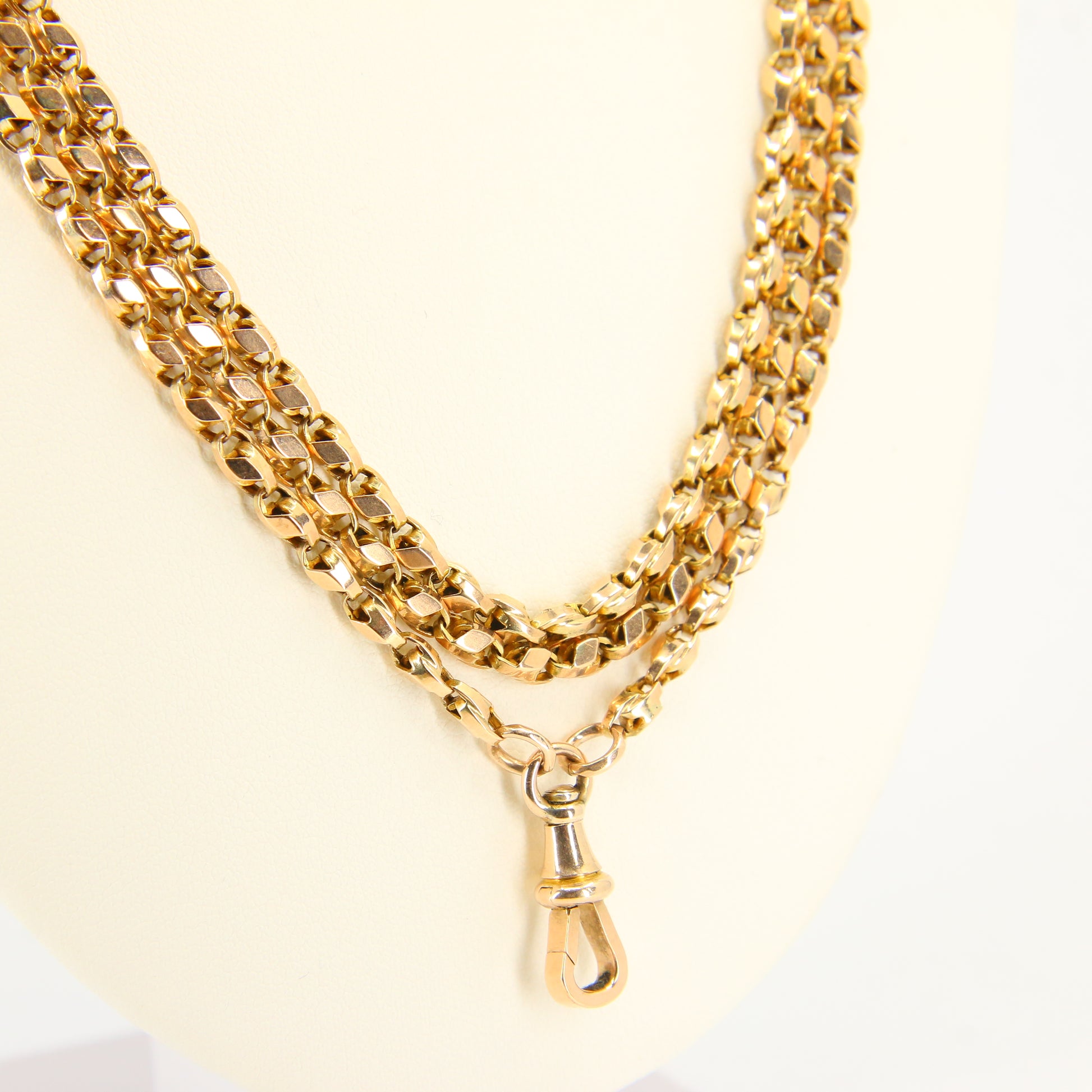 Antique 62" Long Muff Guard Chain Gold Necklace 9ct Yellow Gold Chain Necklace