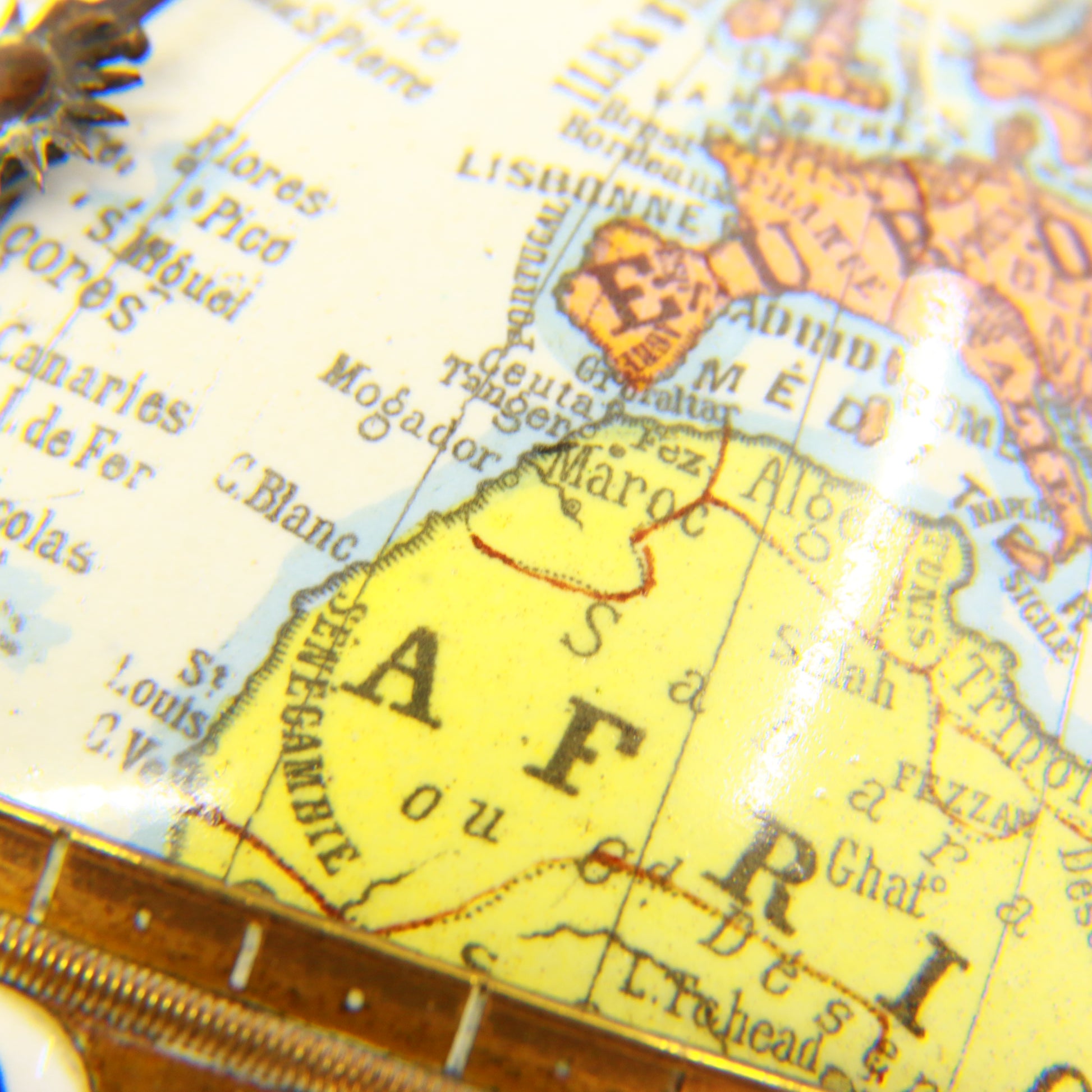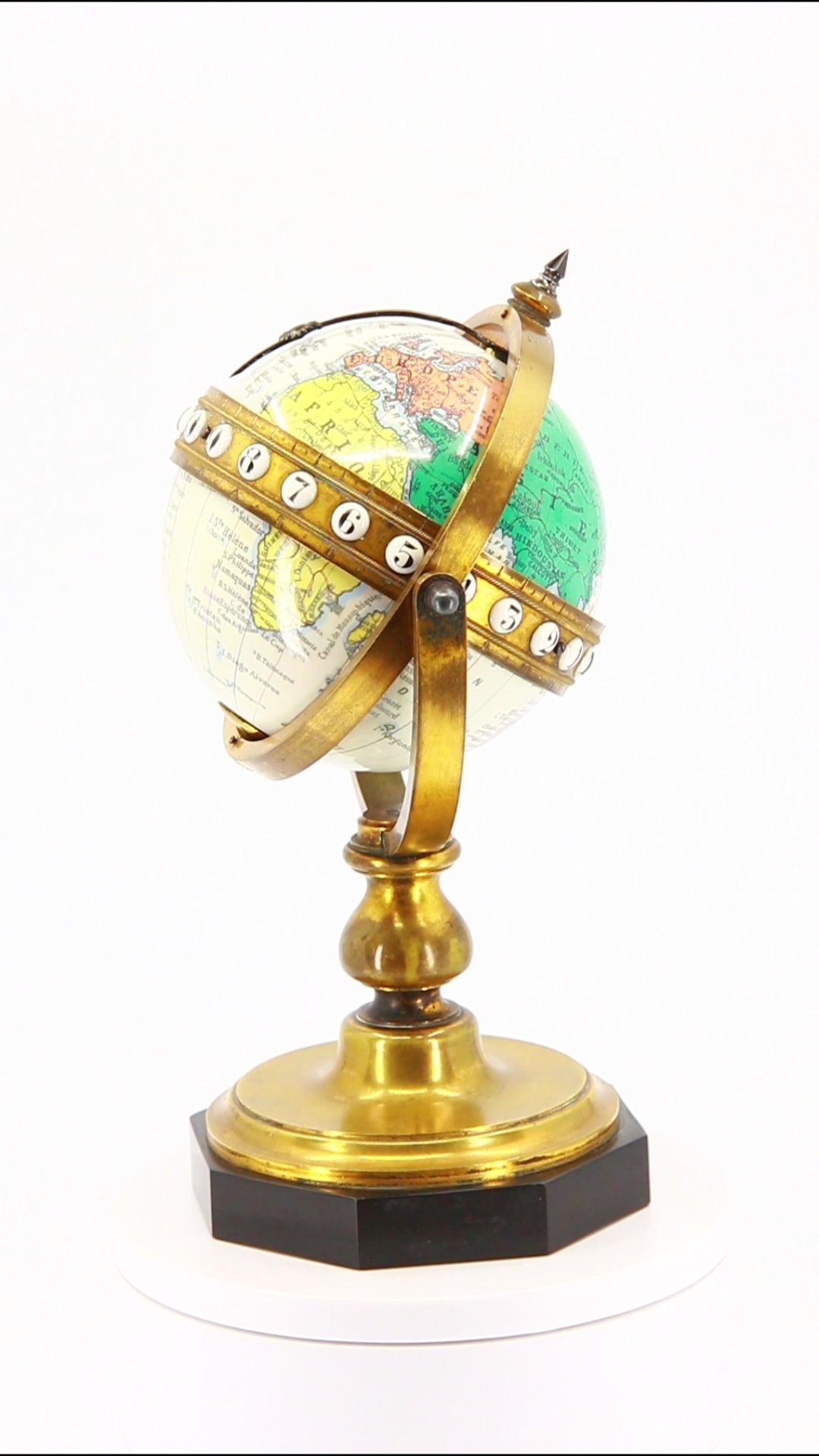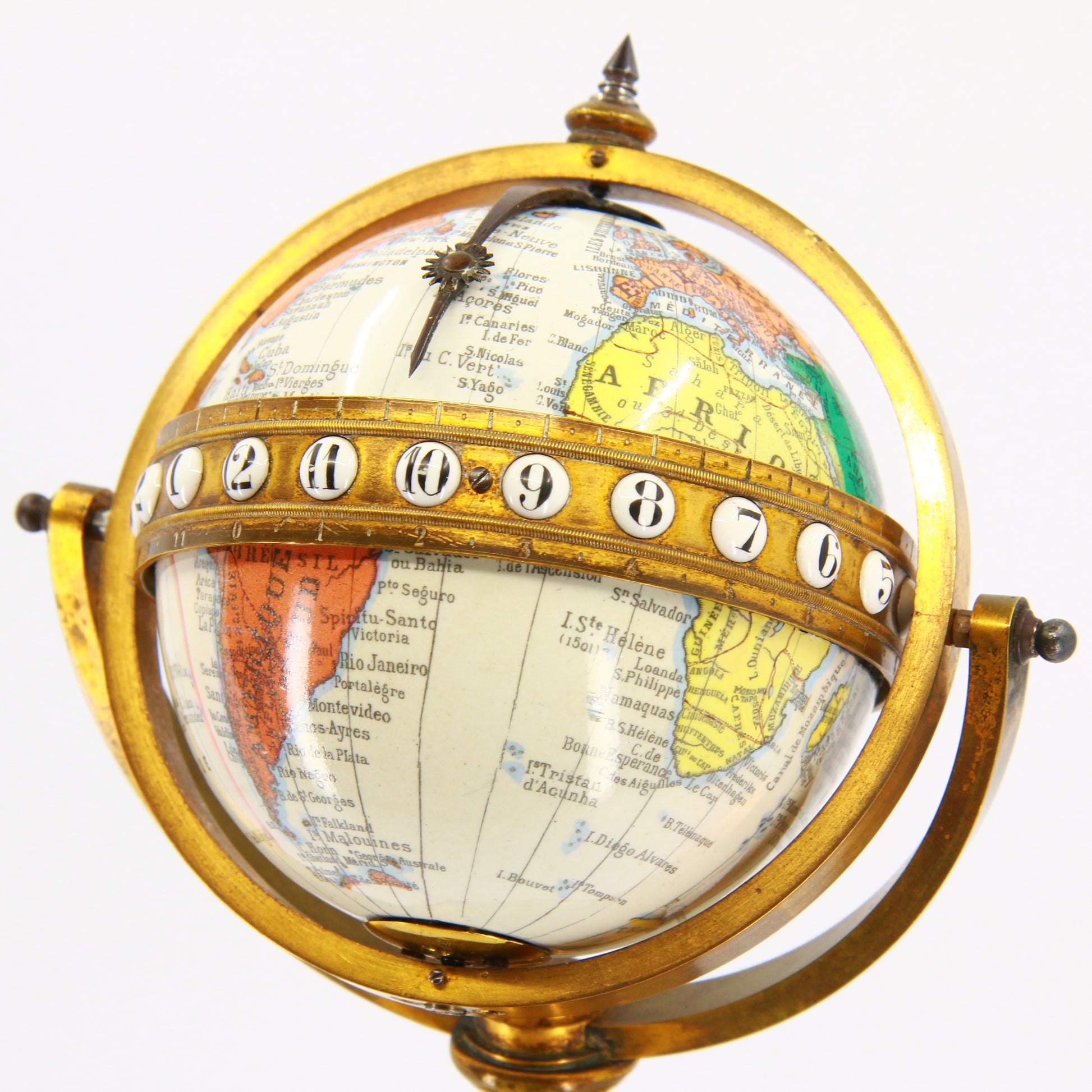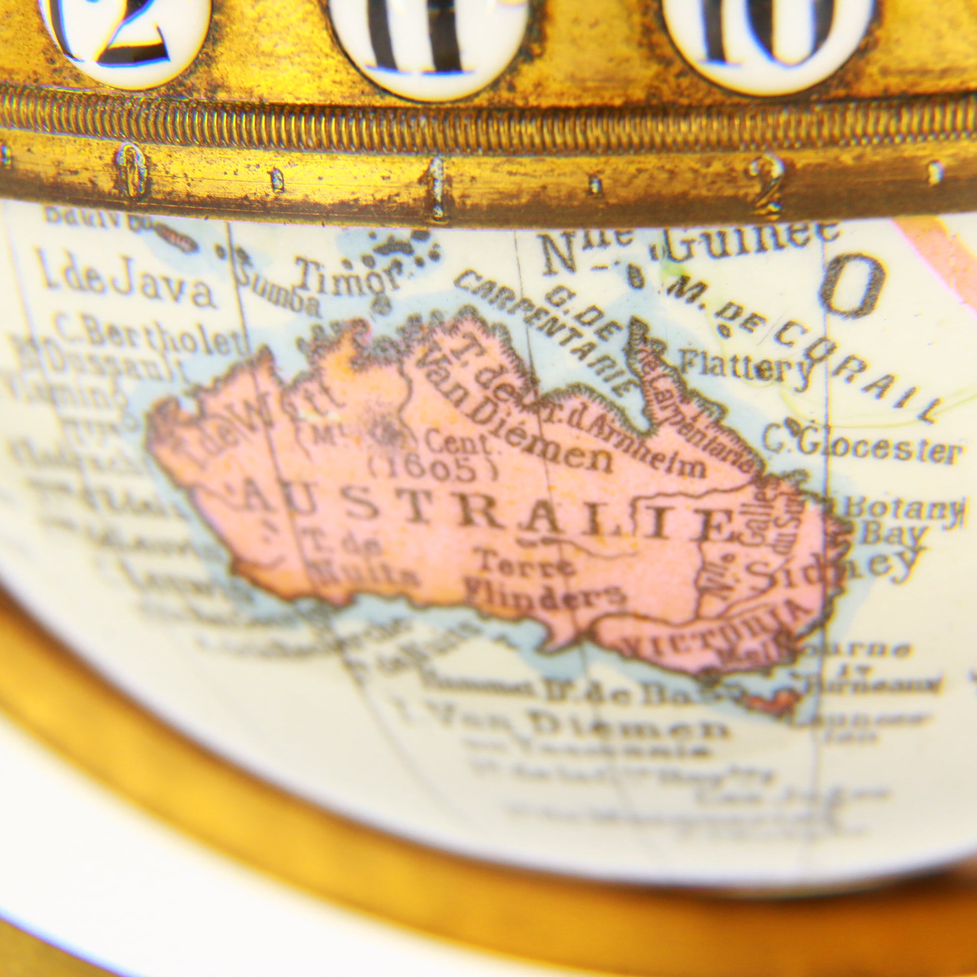 Antique Revolving Globe Antoine Redier French Enamel & Brass World Time Clock
