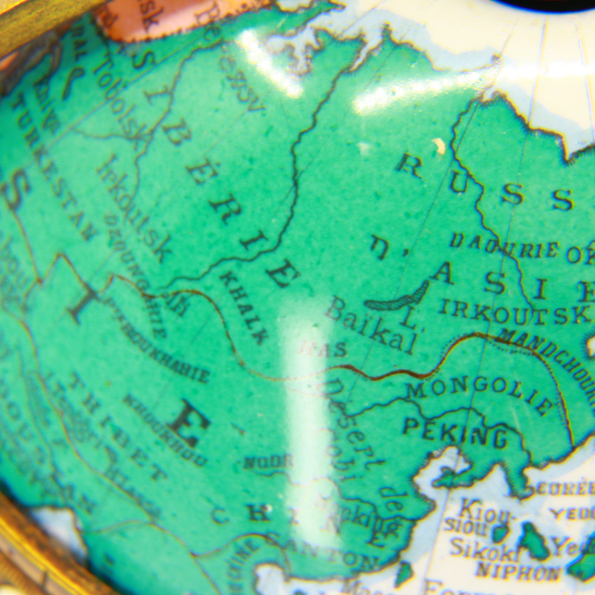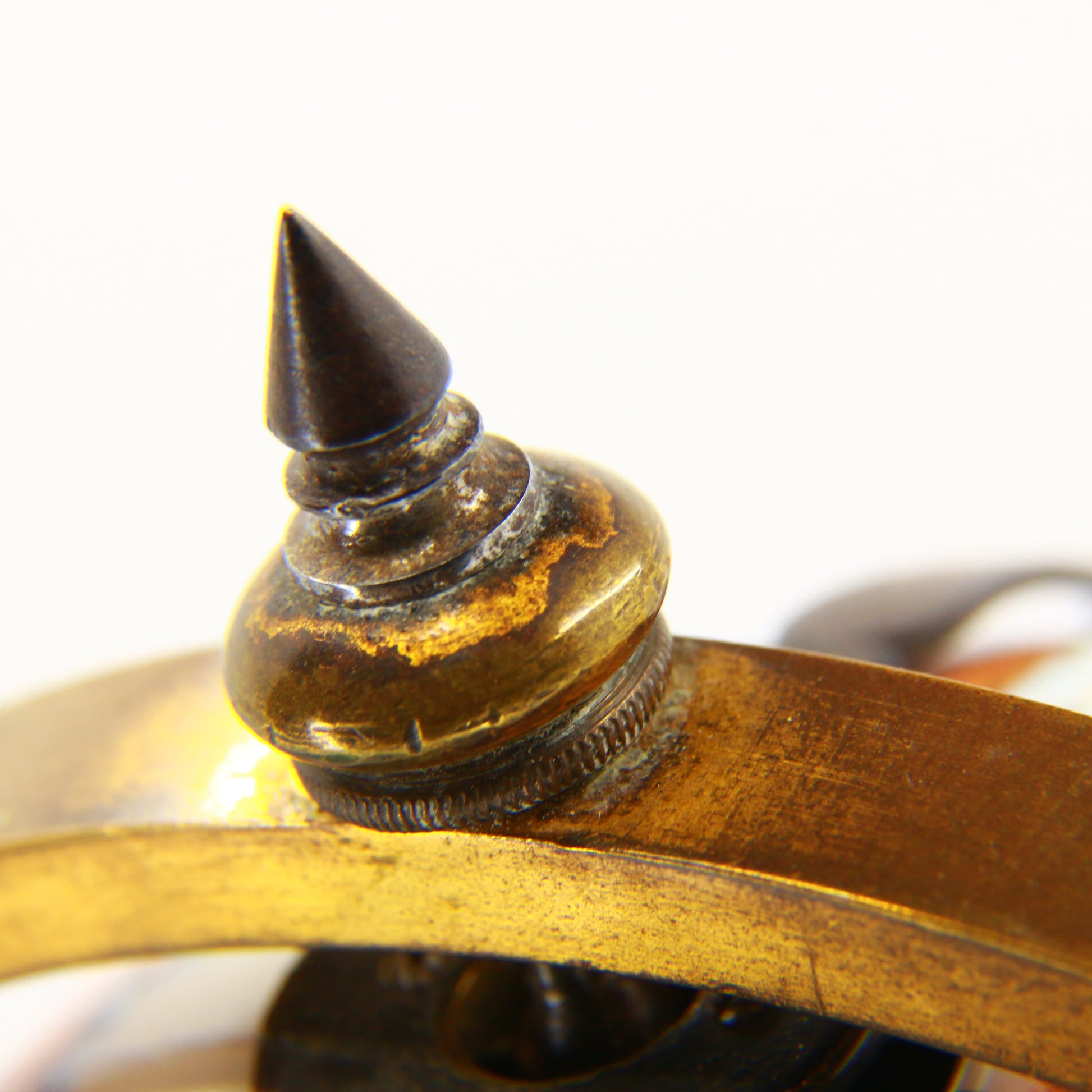 The 3.5 inch enamel globe is decorated in many colours and marked with country borders, capital cities, major rivers, lakes and twenty four time zones with a single steel pointer, mounted around the meridian with a brass band carrying 24 white enamel cartouche arabic numerals, all in a gimballed mount on a marble base, the cylinder platform escapement housed within the globe and wound via a two-pronged key acting through the lower section of the brass gimbal, a weight set inside the hemisphere opposite the hand ensures that the annular chapter ring remains at an easily legible angle throughout use. Antoine Redier was born in 1817 and was an eminent maker of clocks & registering instruments, he died in 1892.