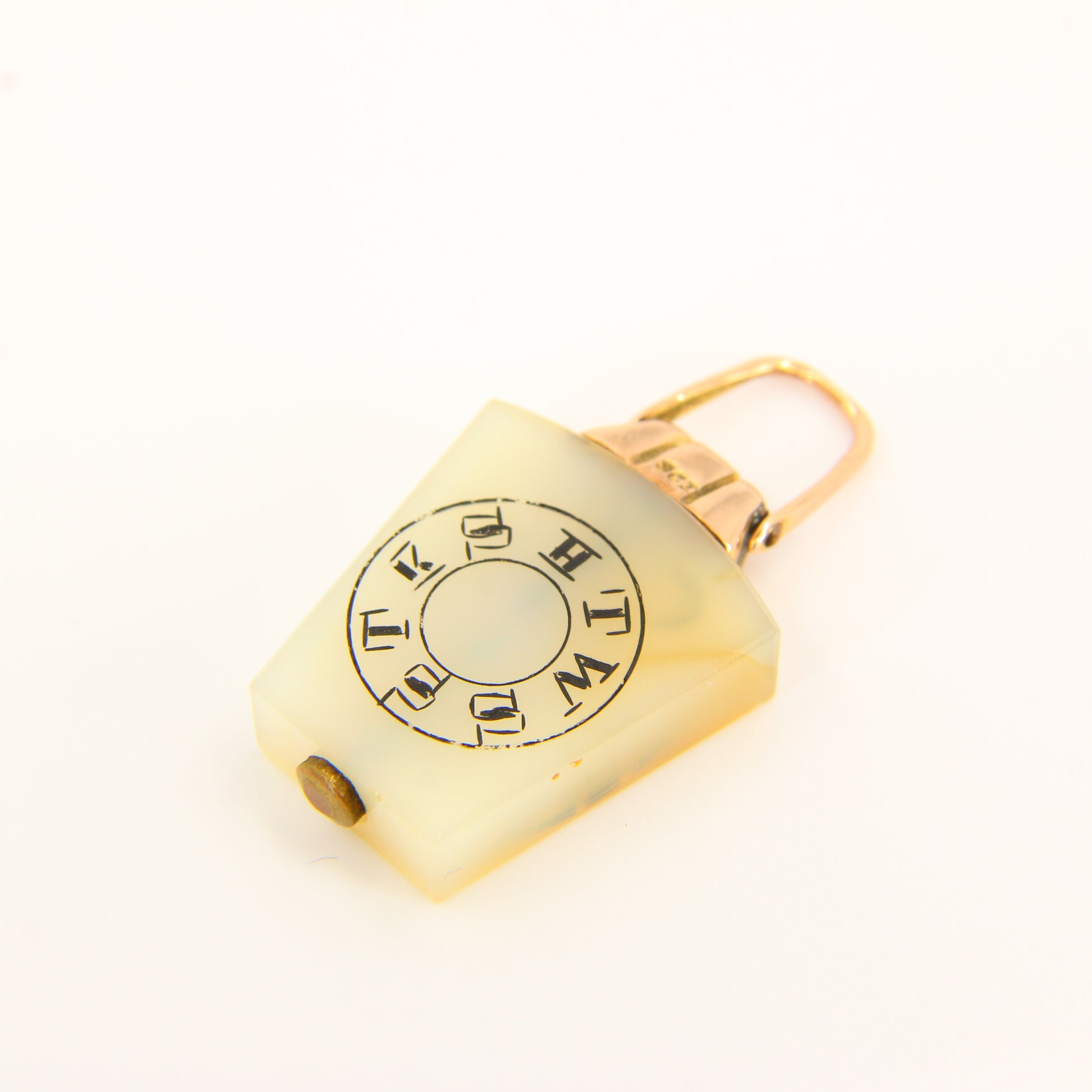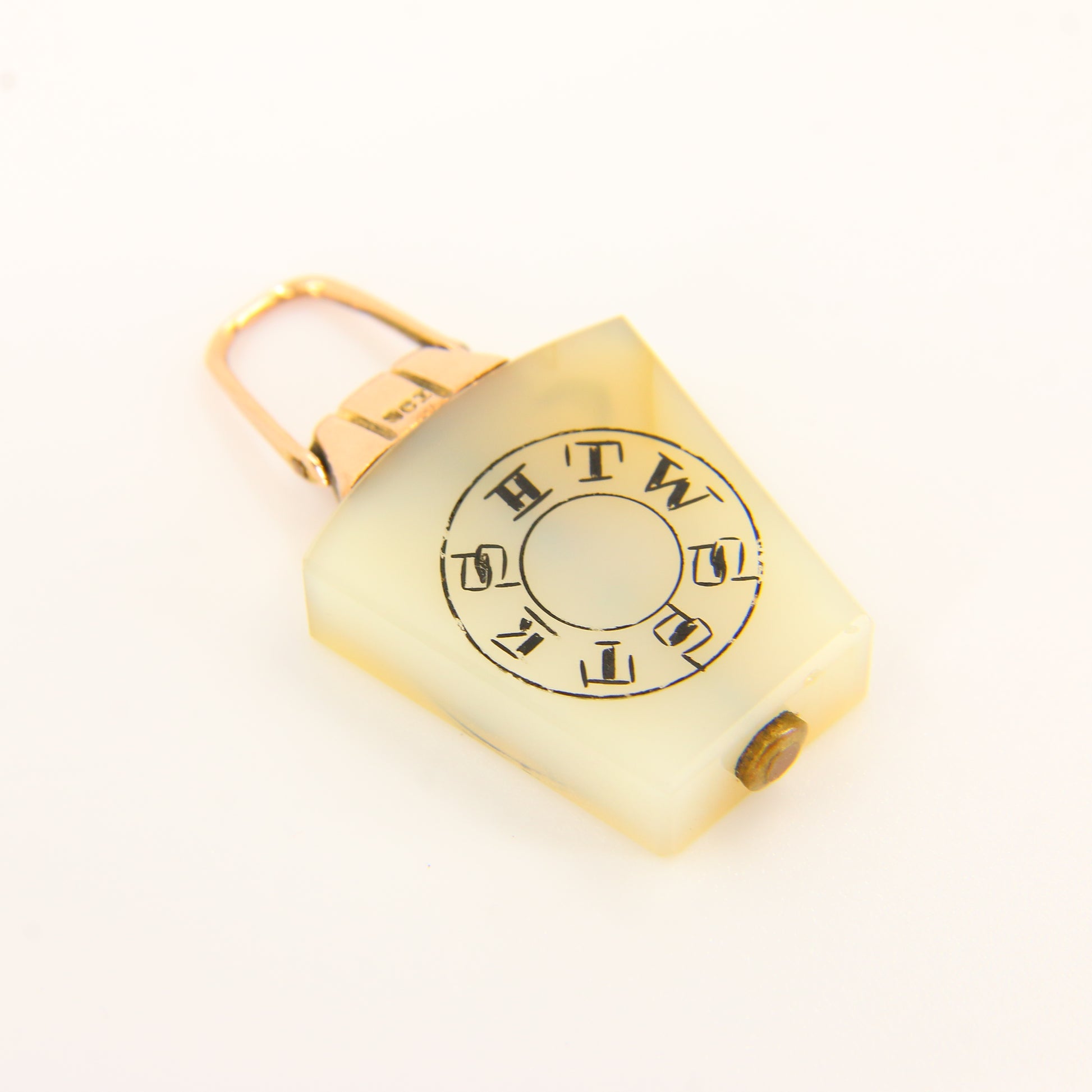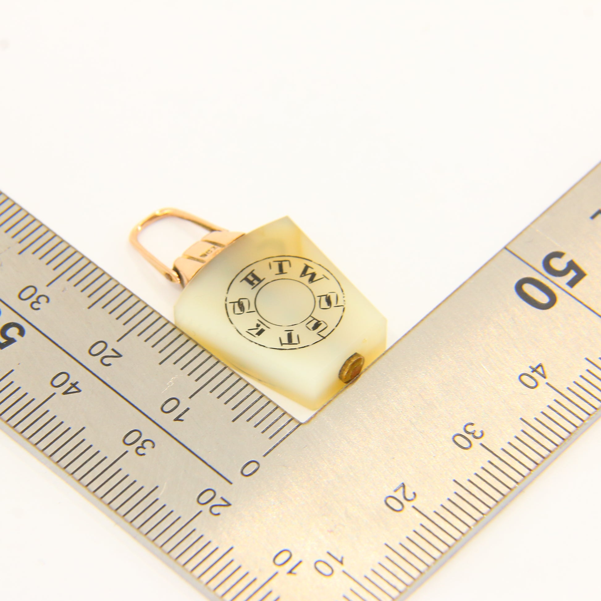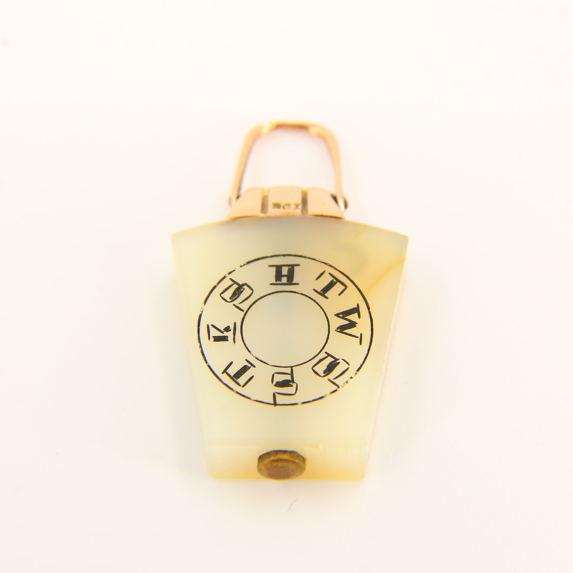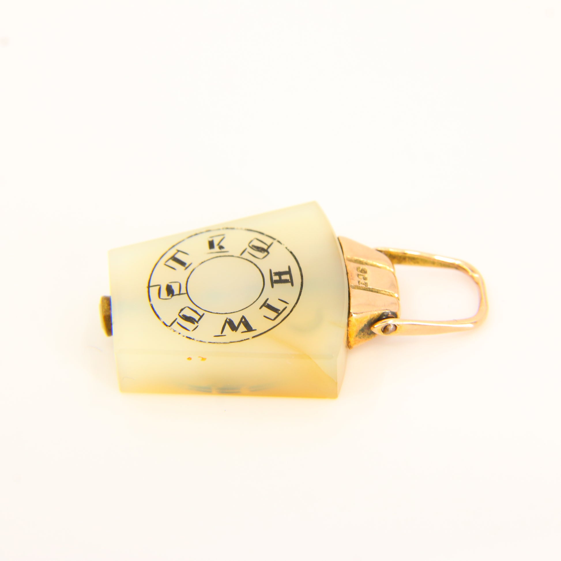 The fob is topped with a gold suspension loop and finial. The stone is inlaid with two agate discs, one of which has letters TKSHTWSS, the otherside has the same letters in Hebrew.