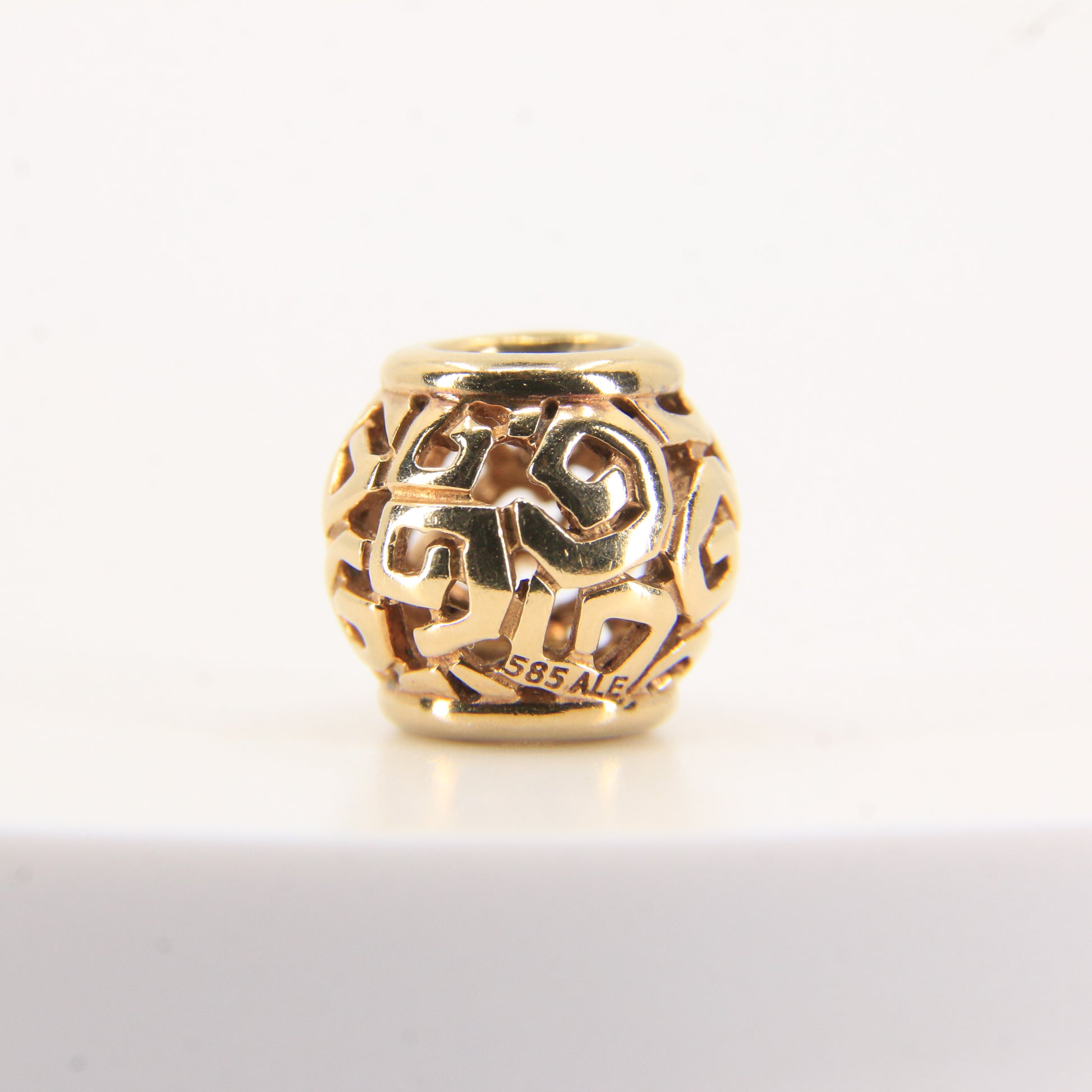 Pandora 14ct Solid Gold Bead Charm Nonthreaded Yellow Gold Bracelet Bead