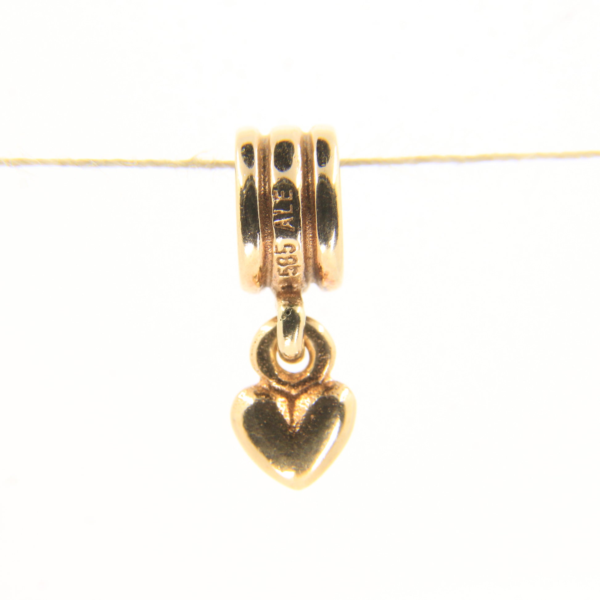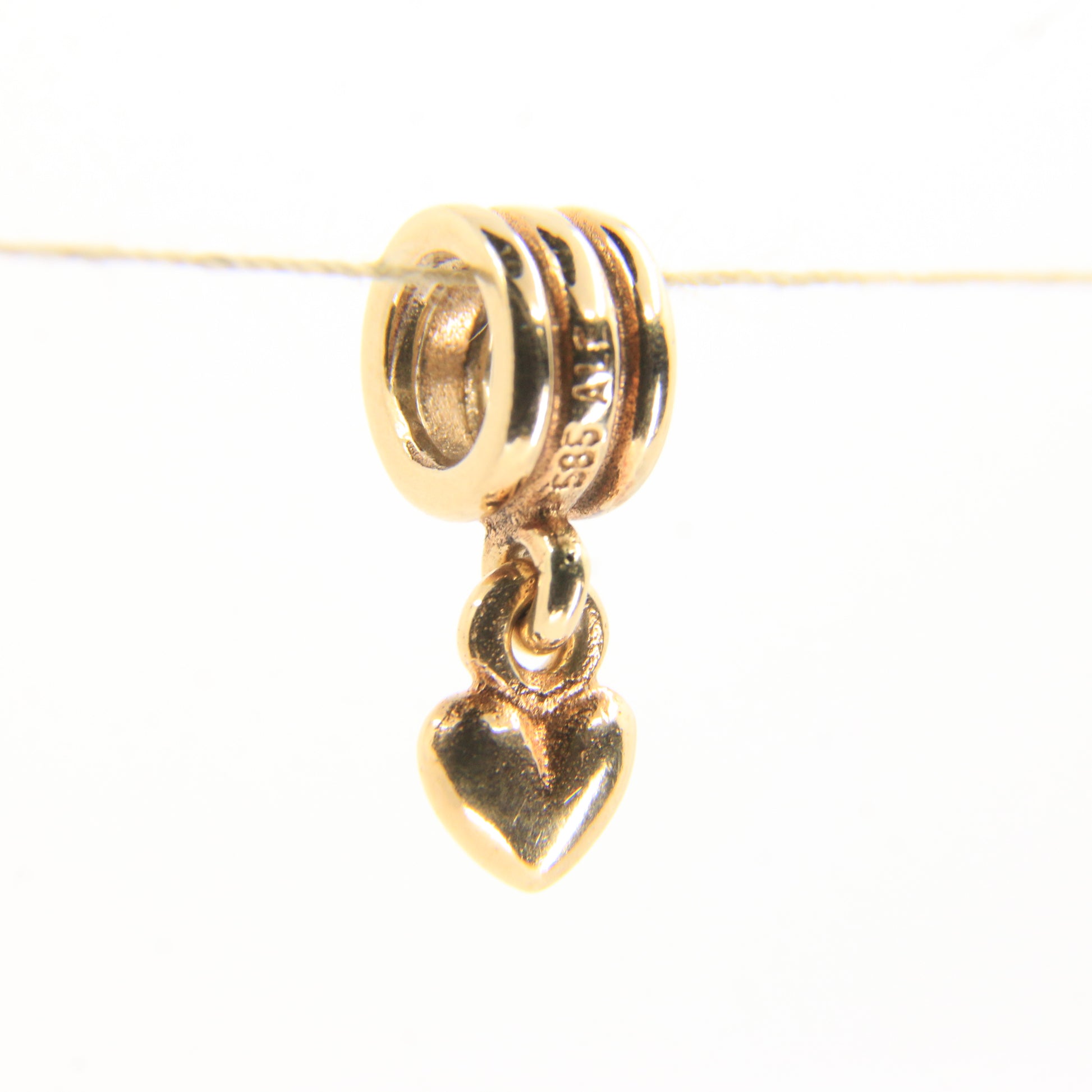 Pandora 14ct Solid Gold Hanging Heart Charm Threaded Yellow Gold Bracelet Bead
