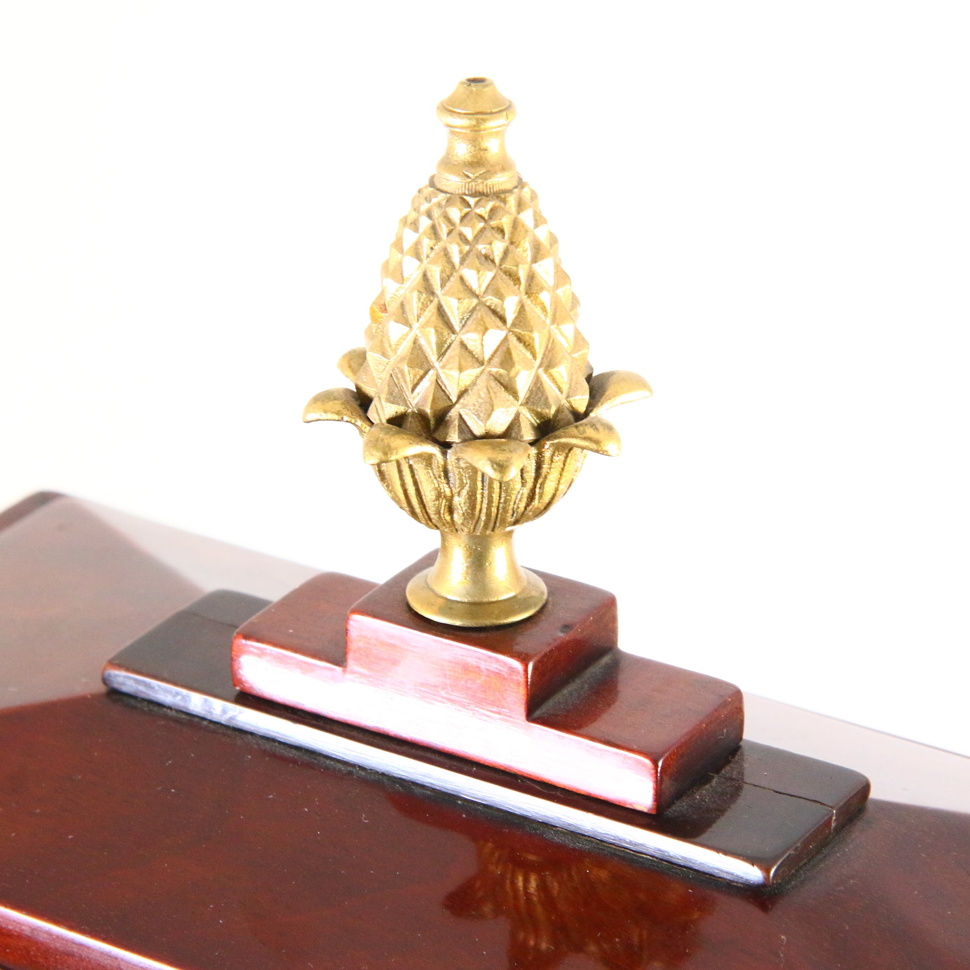 Dimensions: 20 inches tall including finial, 11.5 inches wide, 7.25 inches deep.
