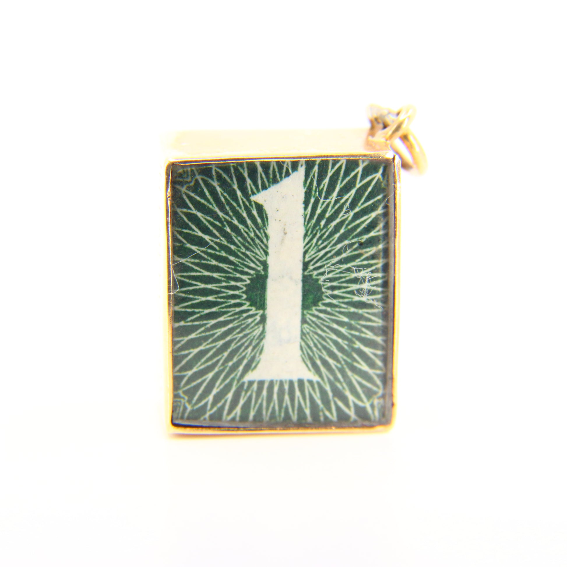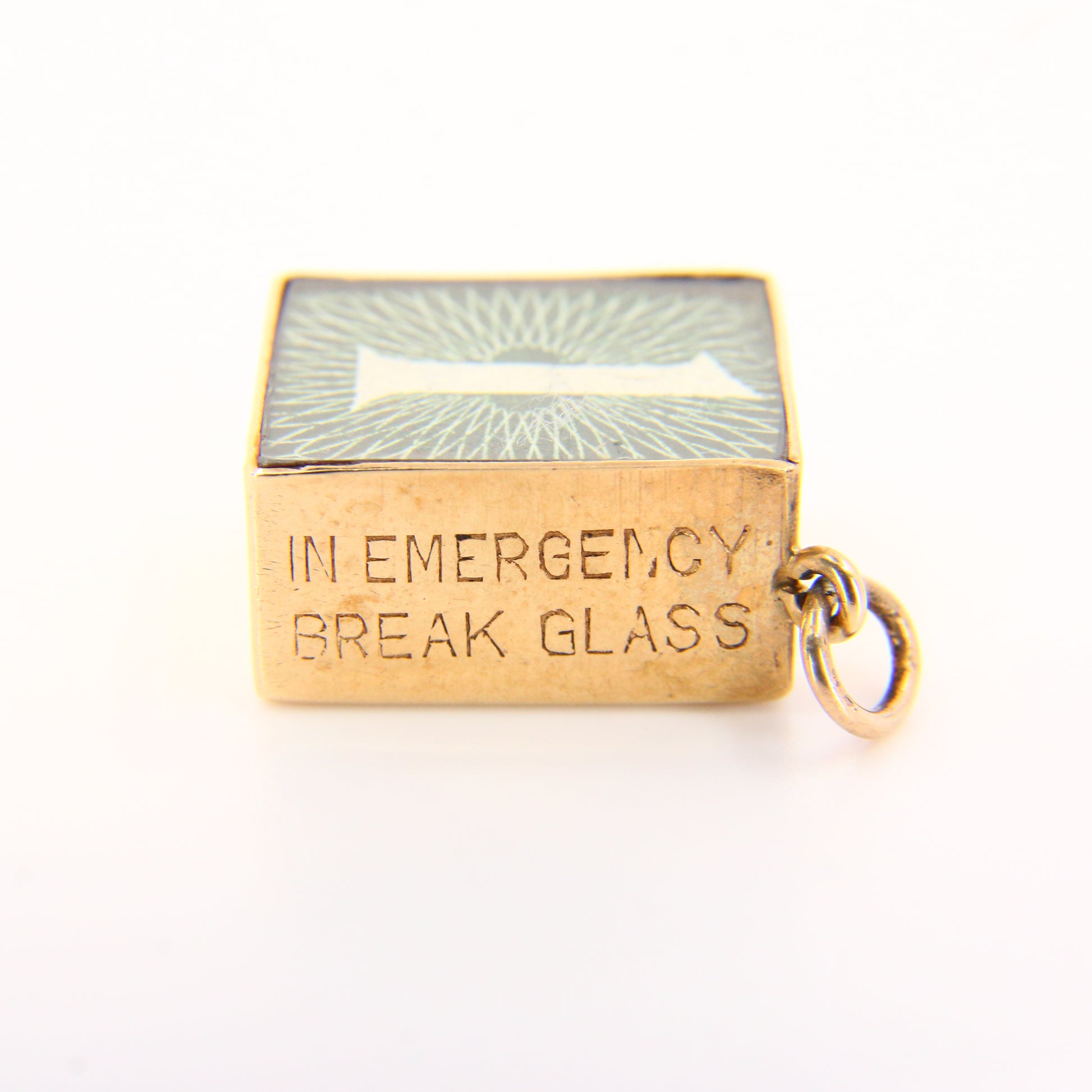 Vintage 1 Shilling Emergency Break Glass Gold Charm Shilling Bank Note Pendant