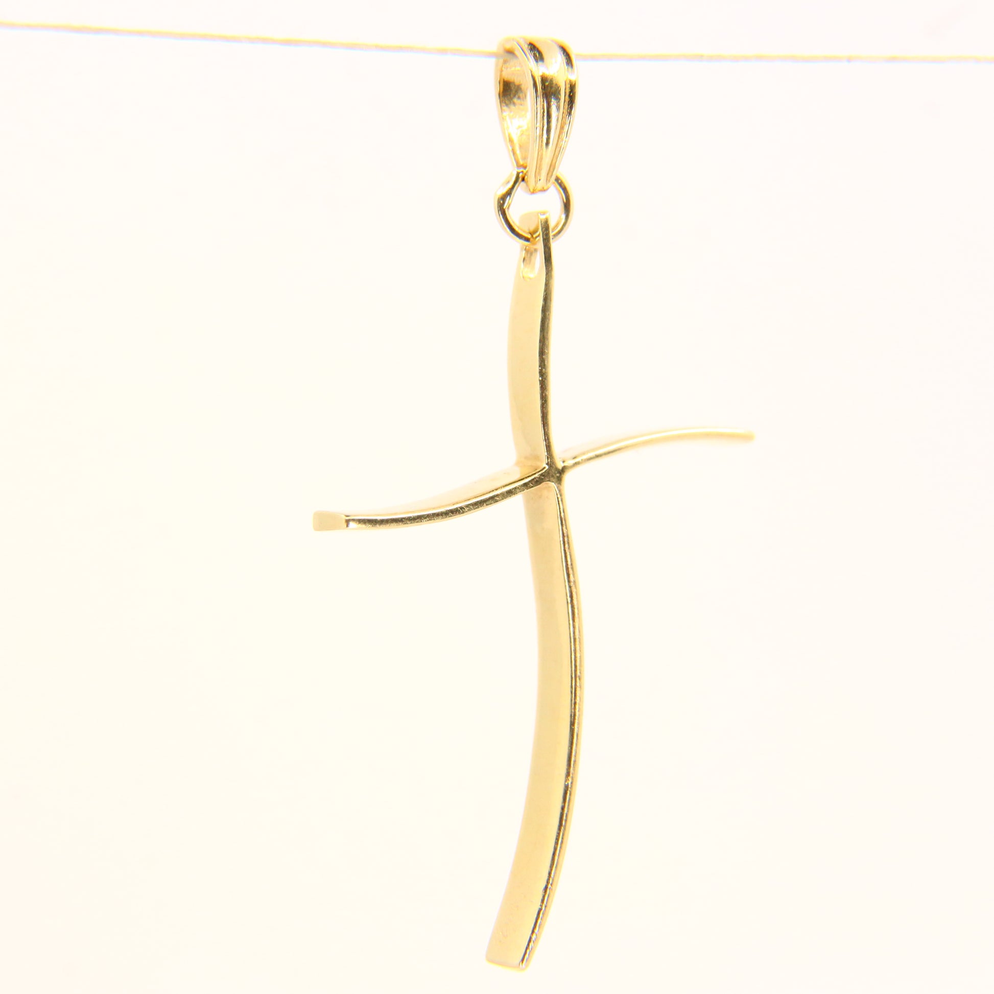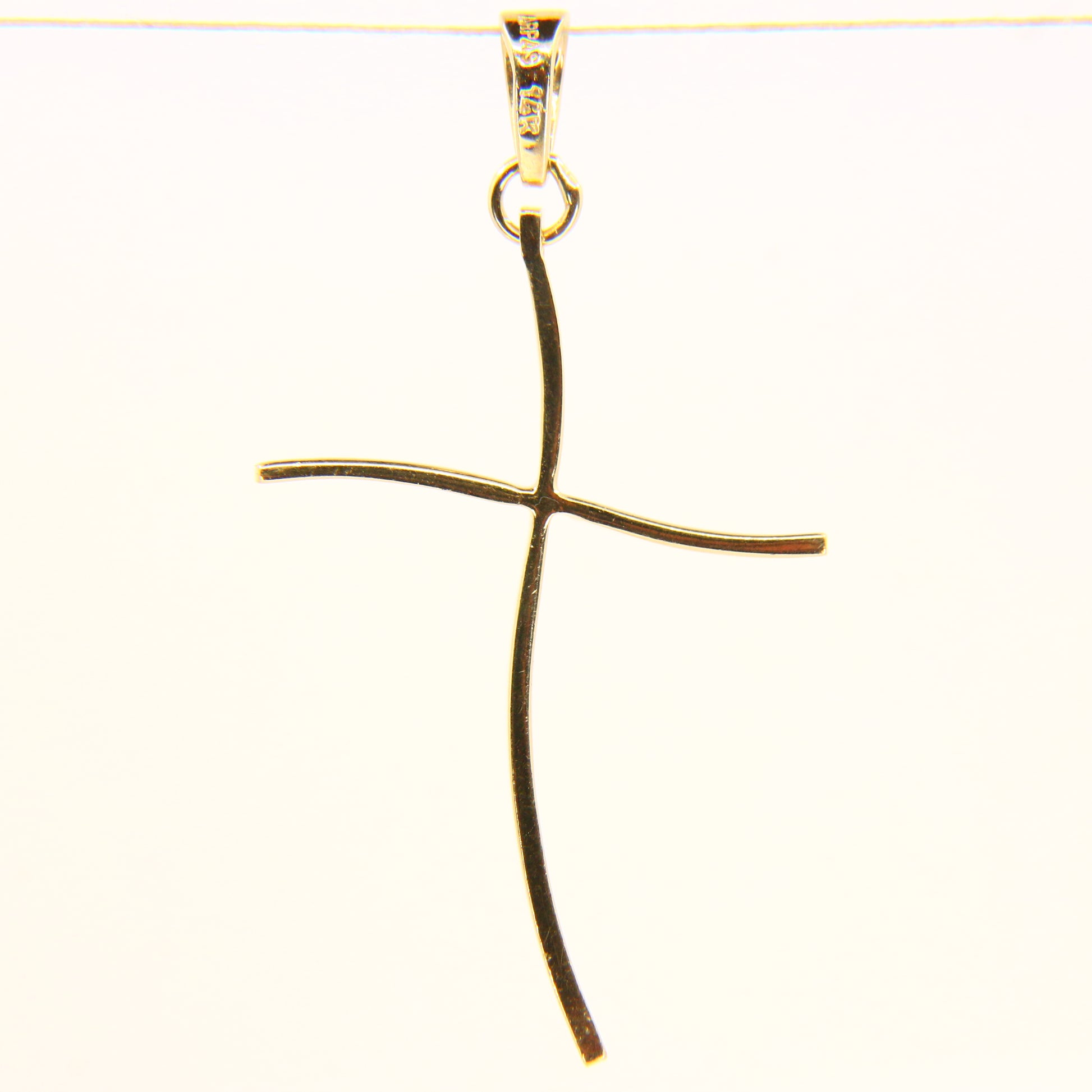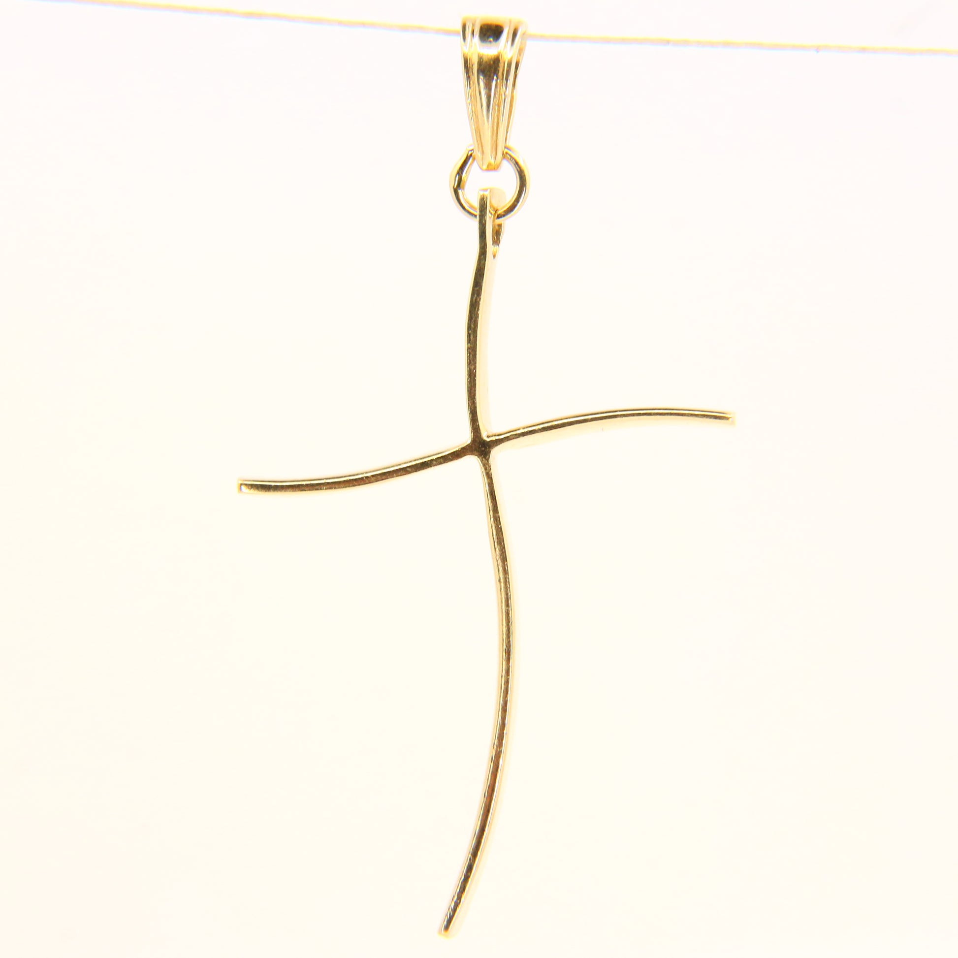 Vintage 14K Gold Modern Contemporary Art Wavey Cross Pendant Yellow Gold Charm