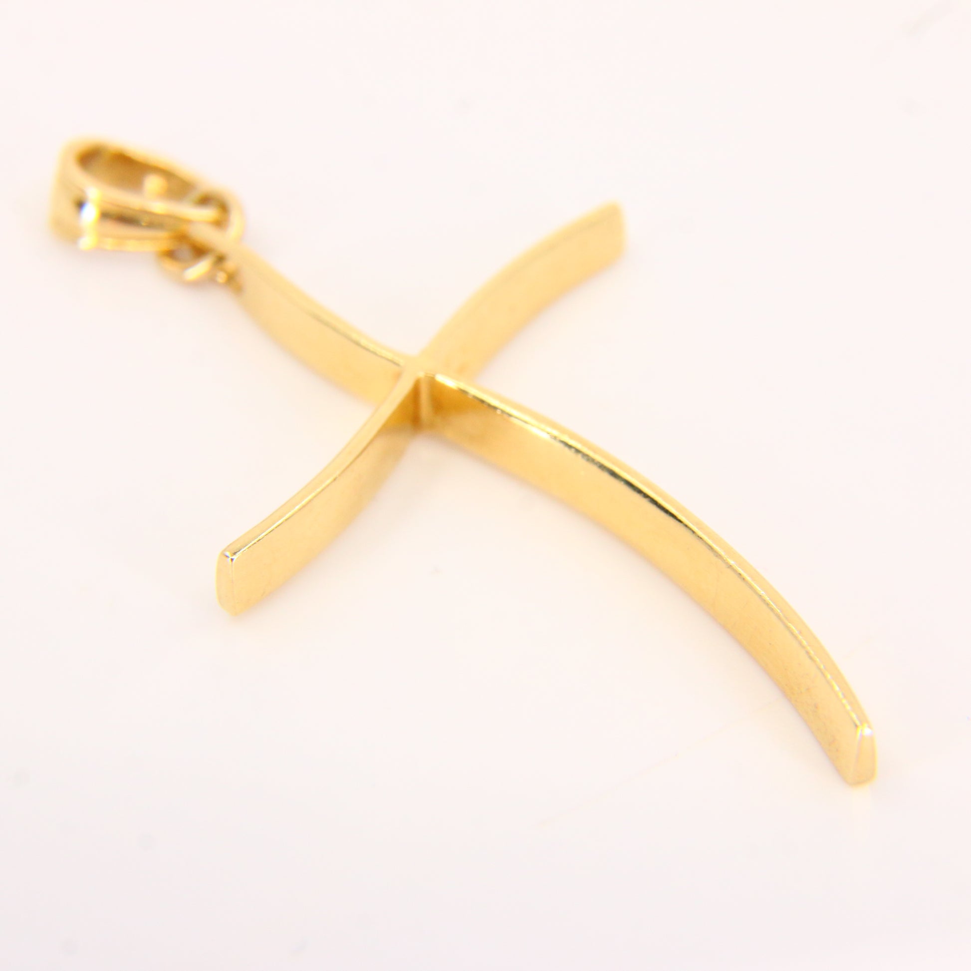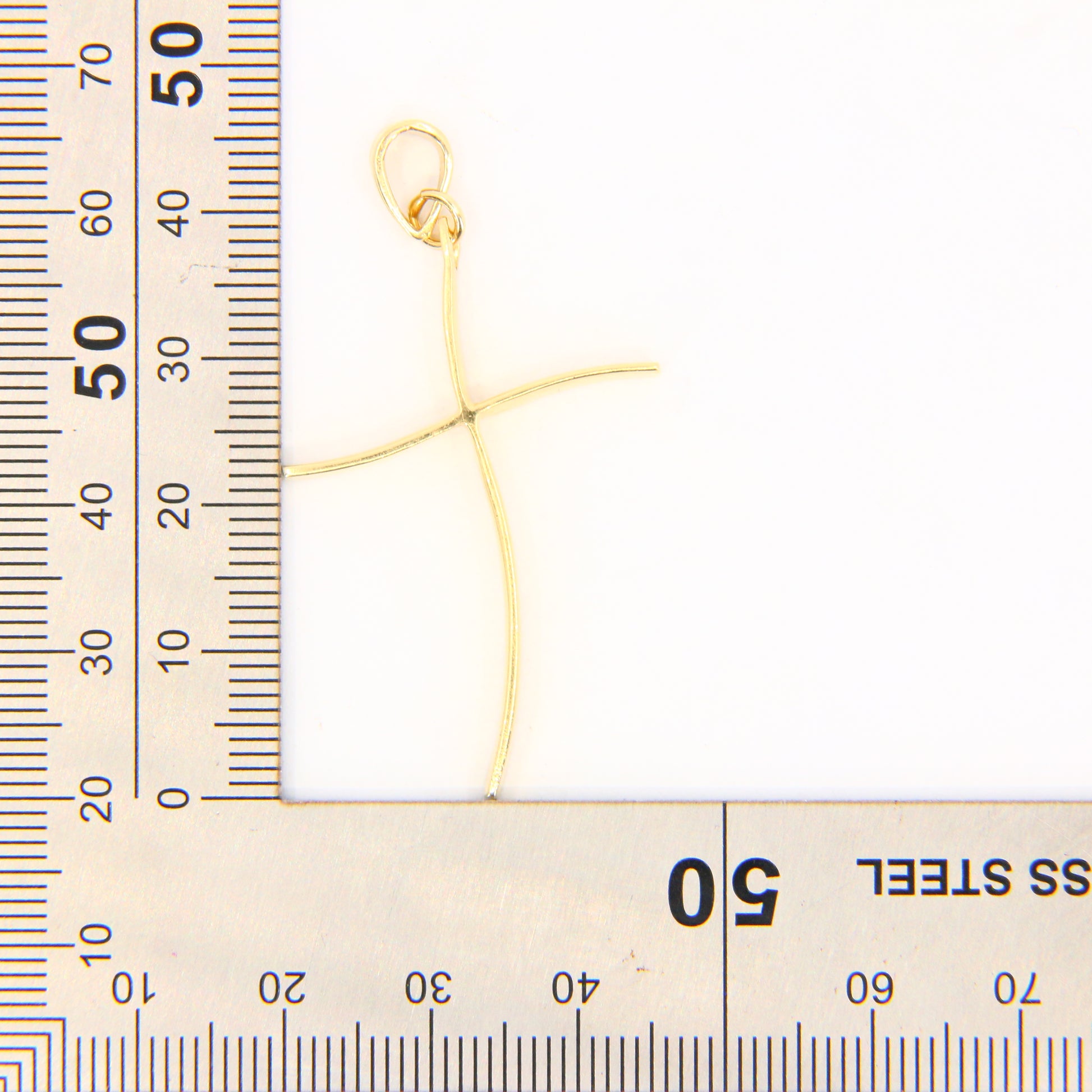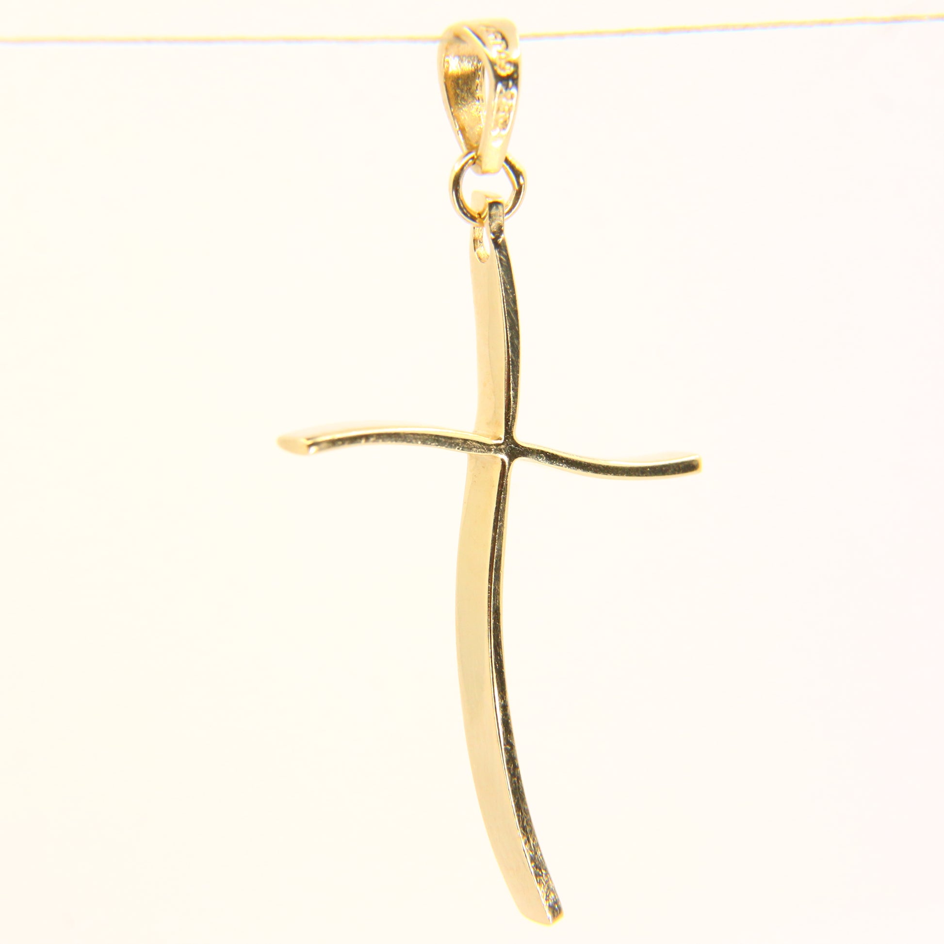 Vintage 14K Gold Modern Contemporary Art Wavey Cross Pendant Yellow Gold Charm