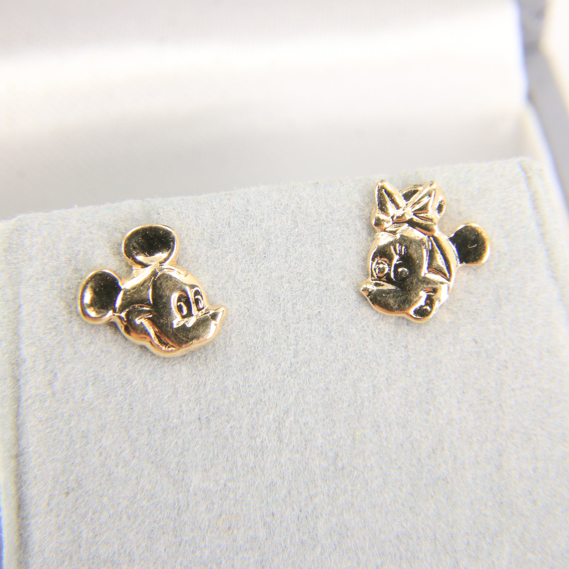 A delightful pair of vintage 14K yellow gold official Disney stud earrings featuring Mickey and Minnie Mouse. A charming collectible and ideal gift for Disney fans or vintage jewellery lovers—add this playful gold set to your collection today.