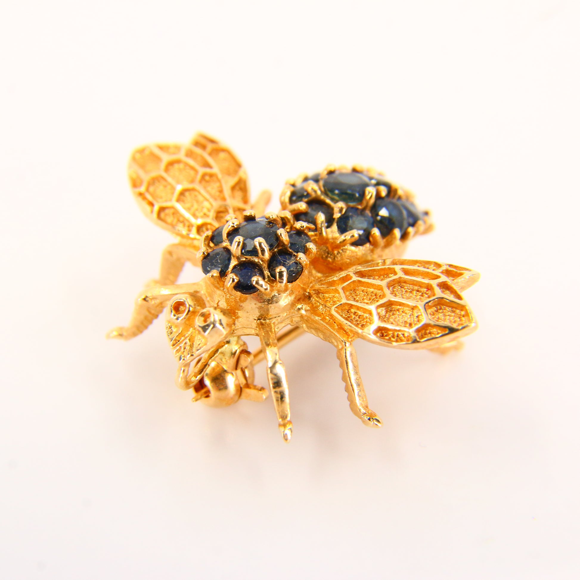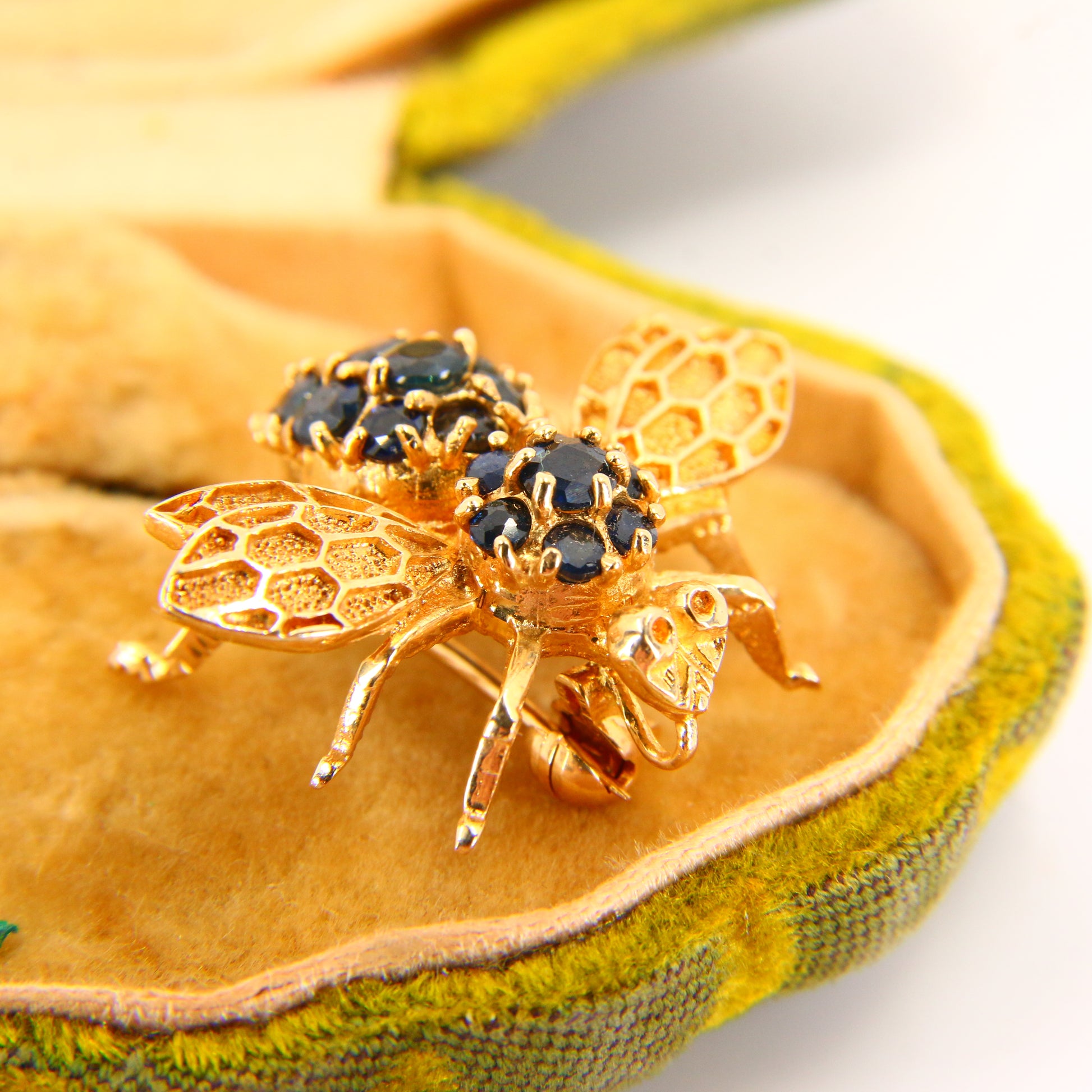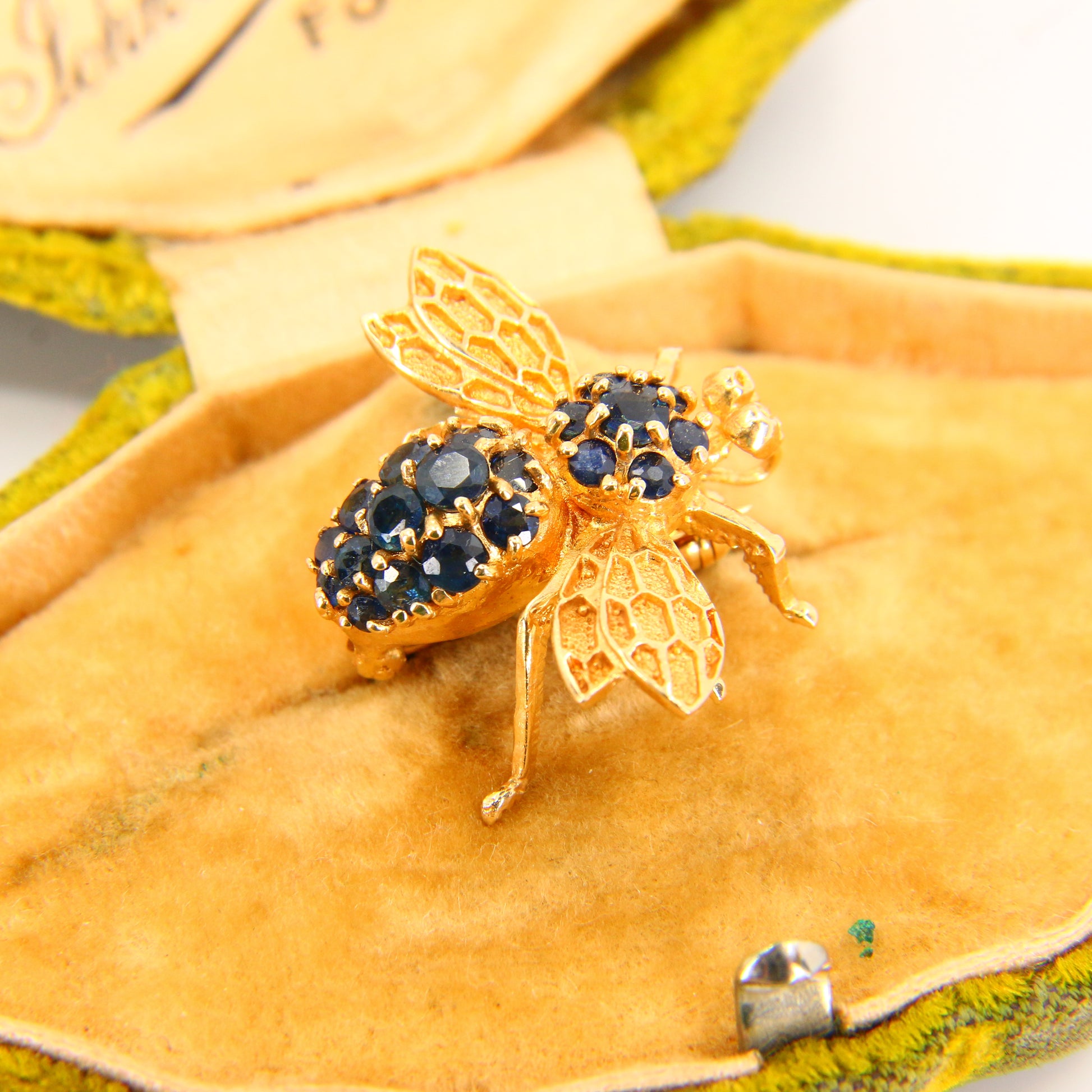 Vintage 14K Queen Bee Brooch Blue Sapphire & Yellow Gold Insect Brooch Boxed Gift