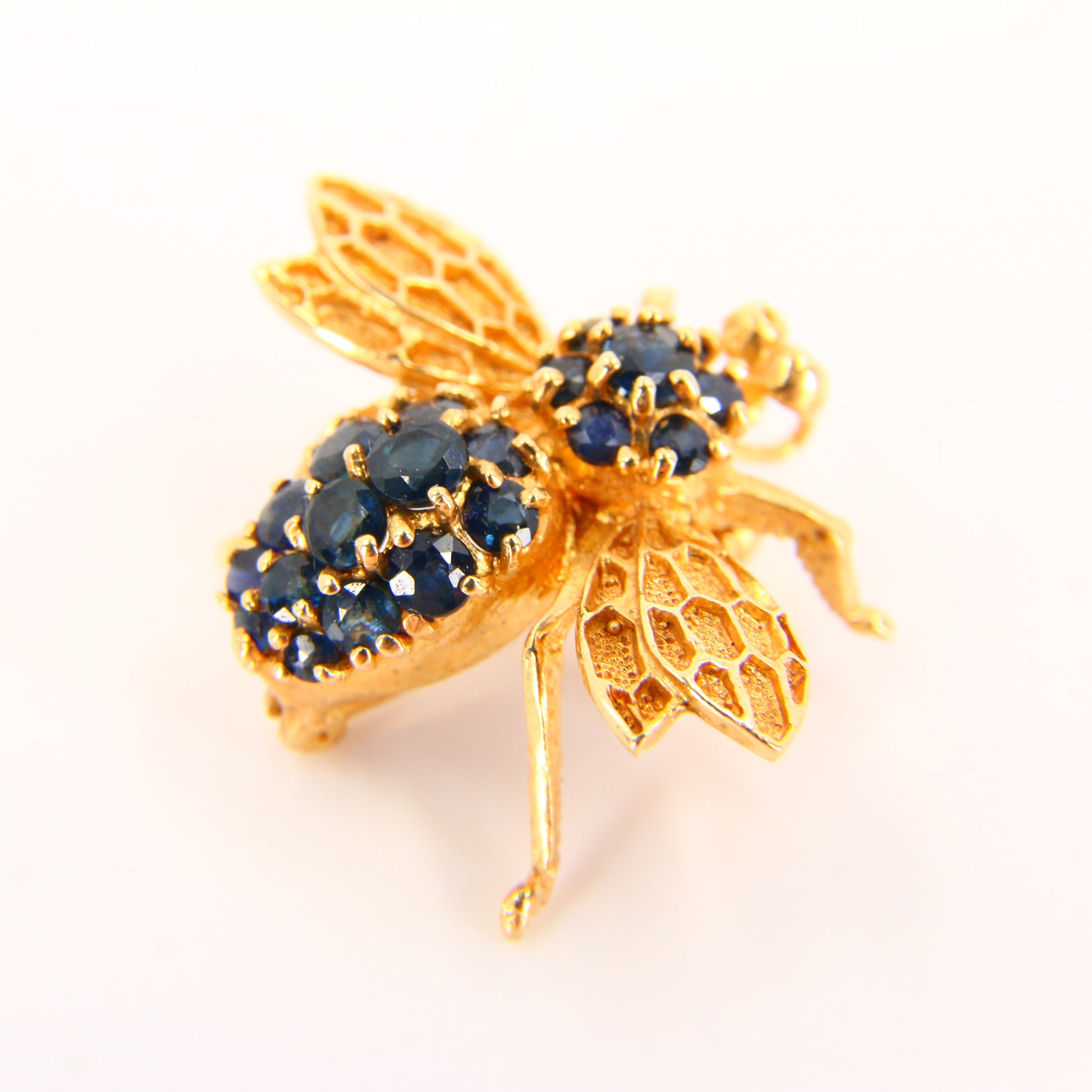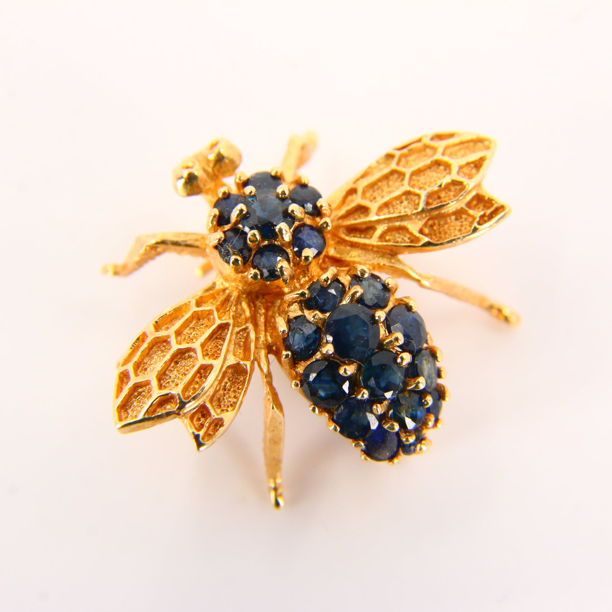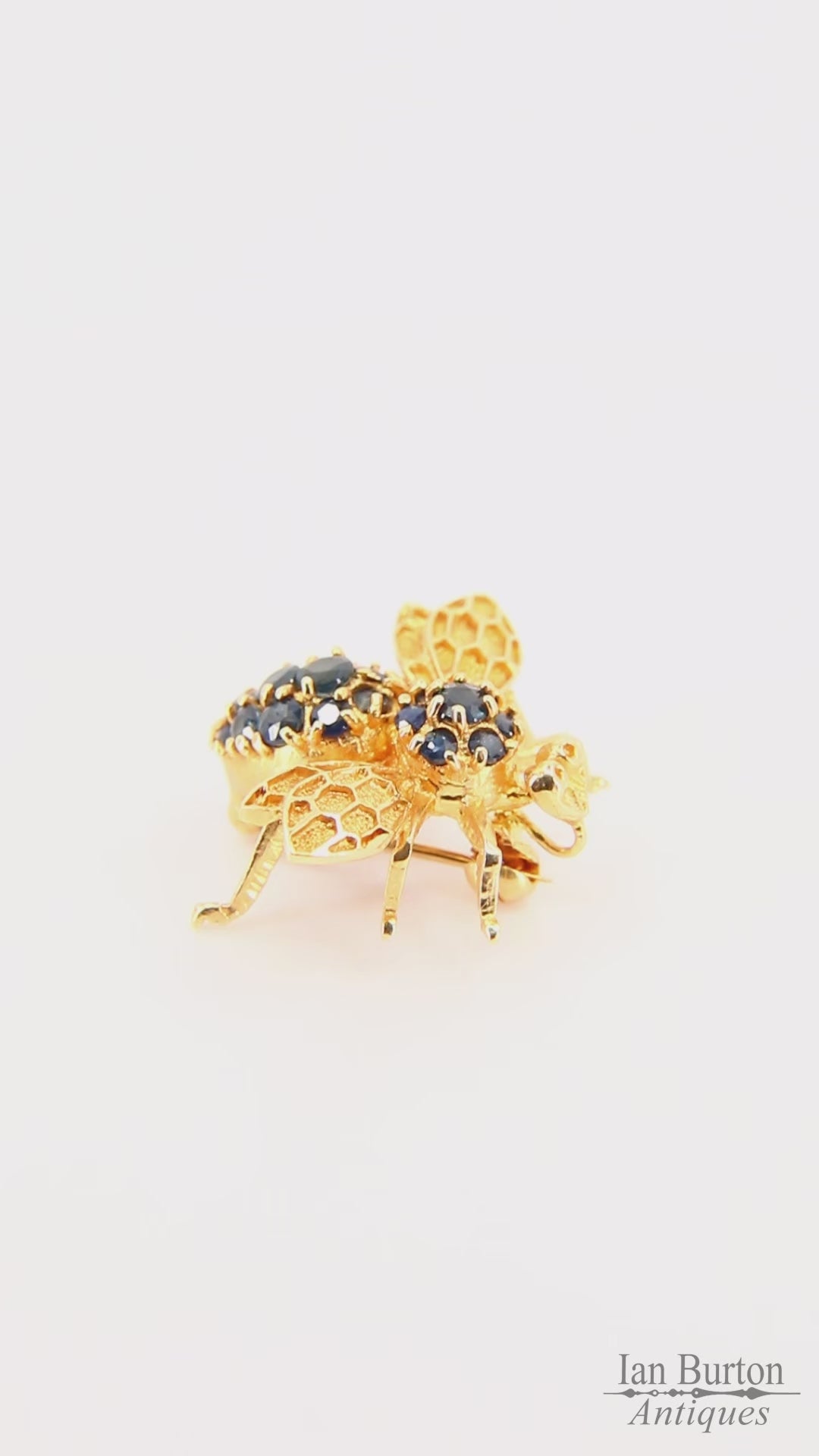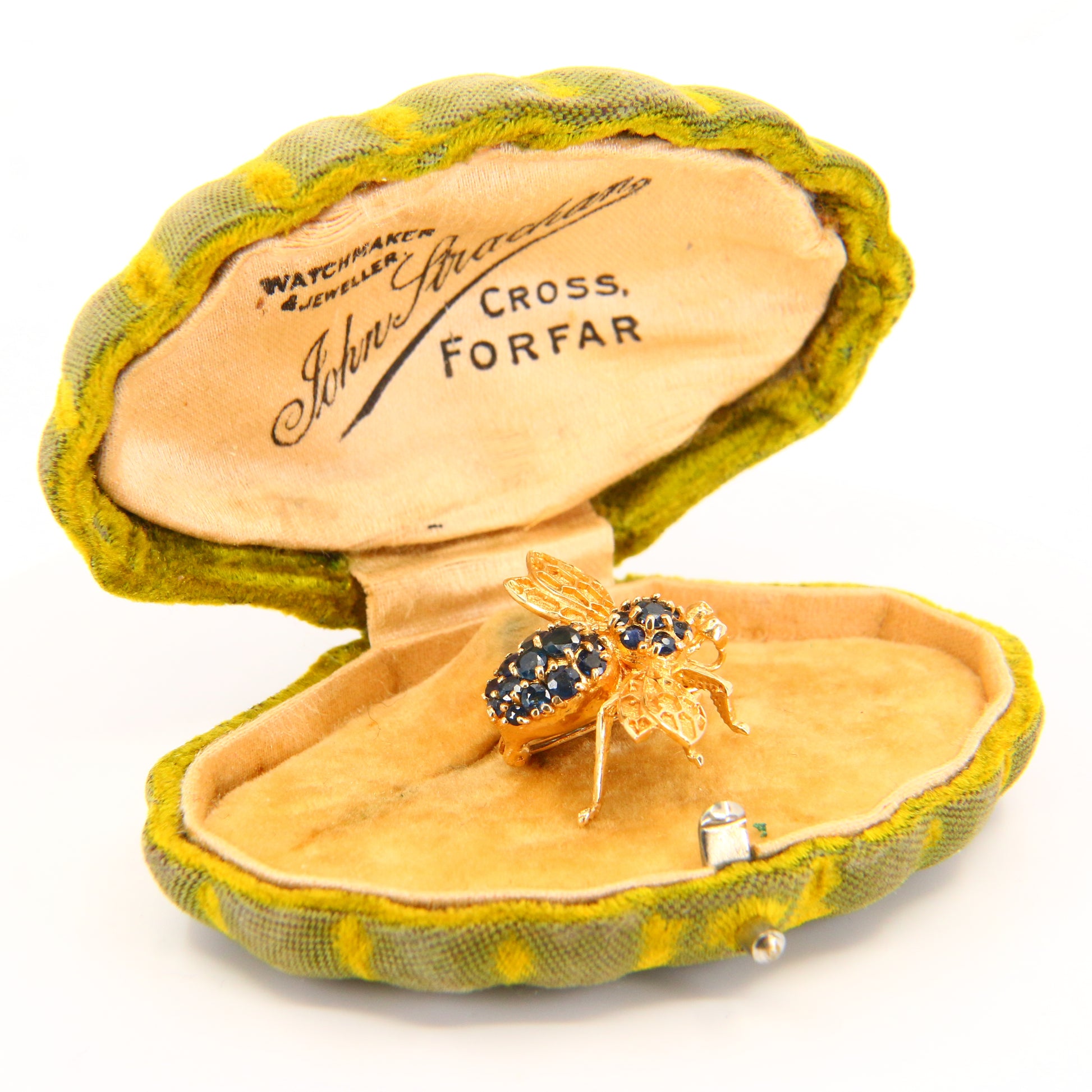 Vintage 14K Queen Bee Brooch Blue Sapphire & Yellow Gold Insect Brooch Boxed Gift