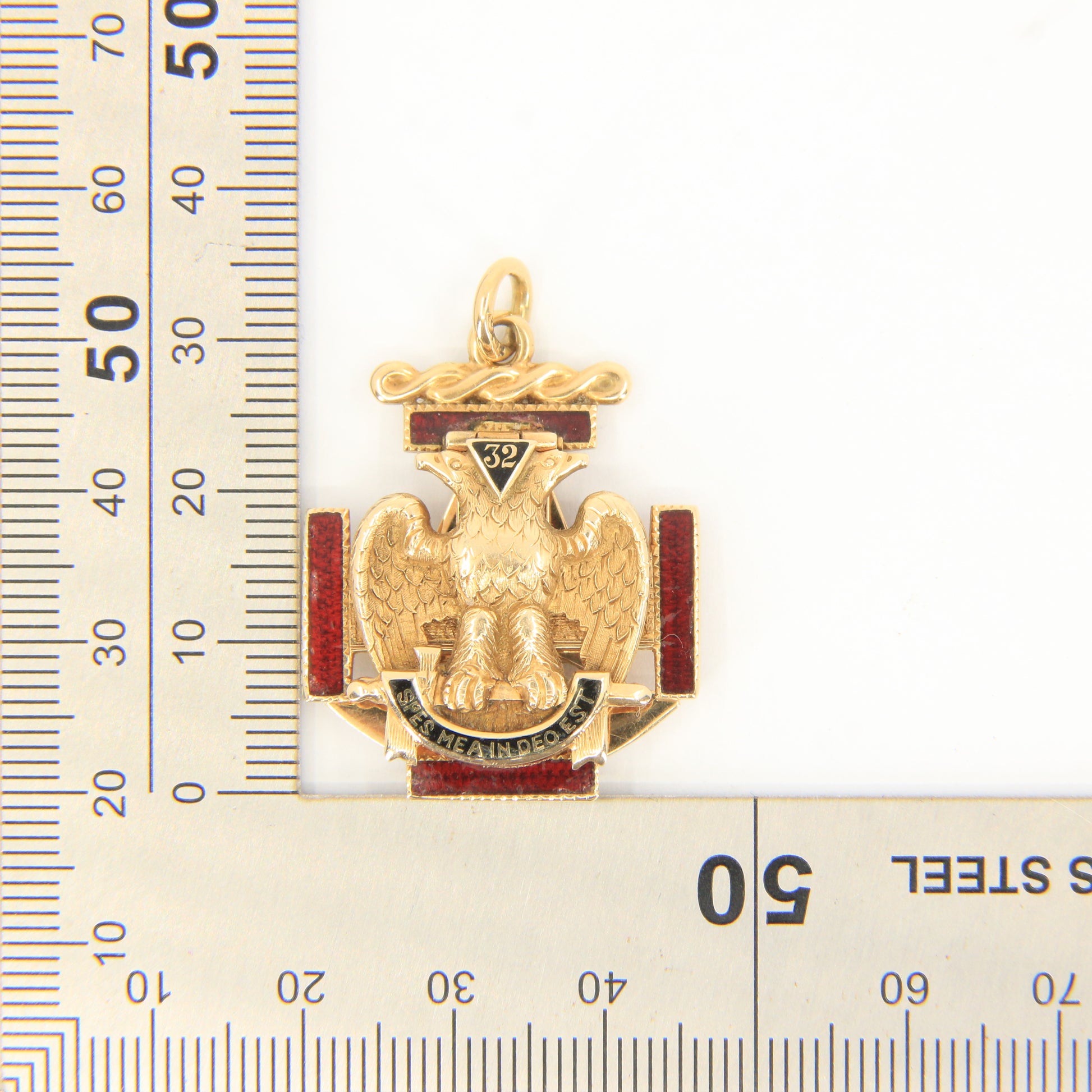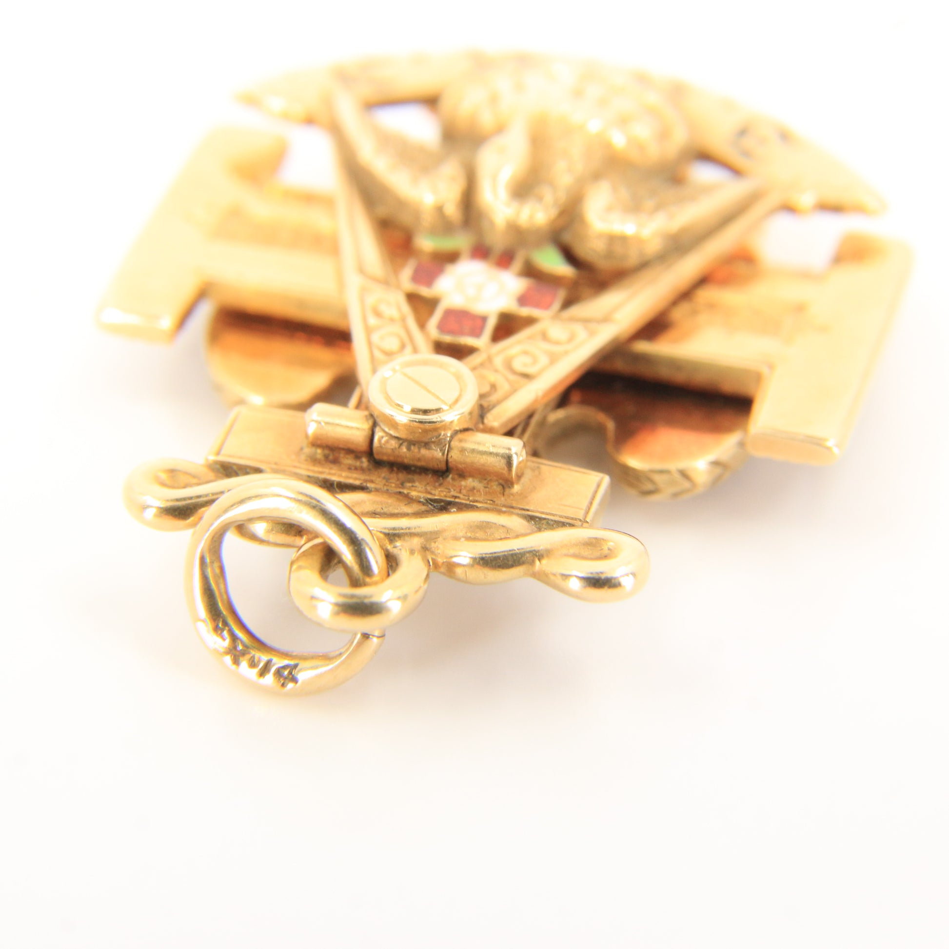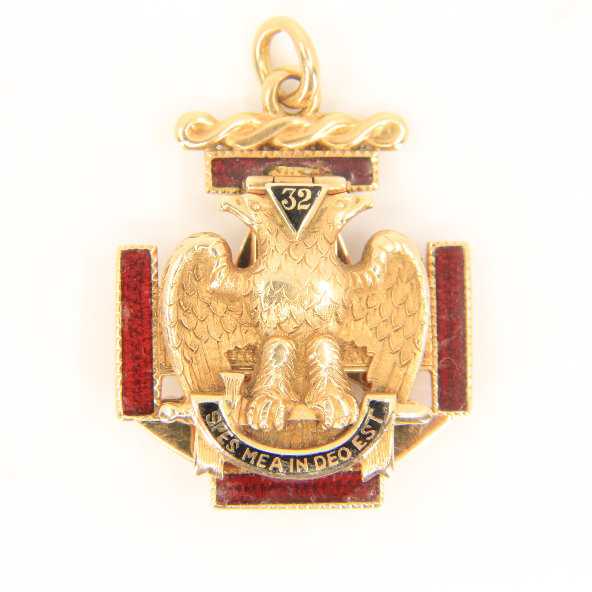Vintage 14k Solid Gold Masonic 32nd Degree Pendant with Enamel