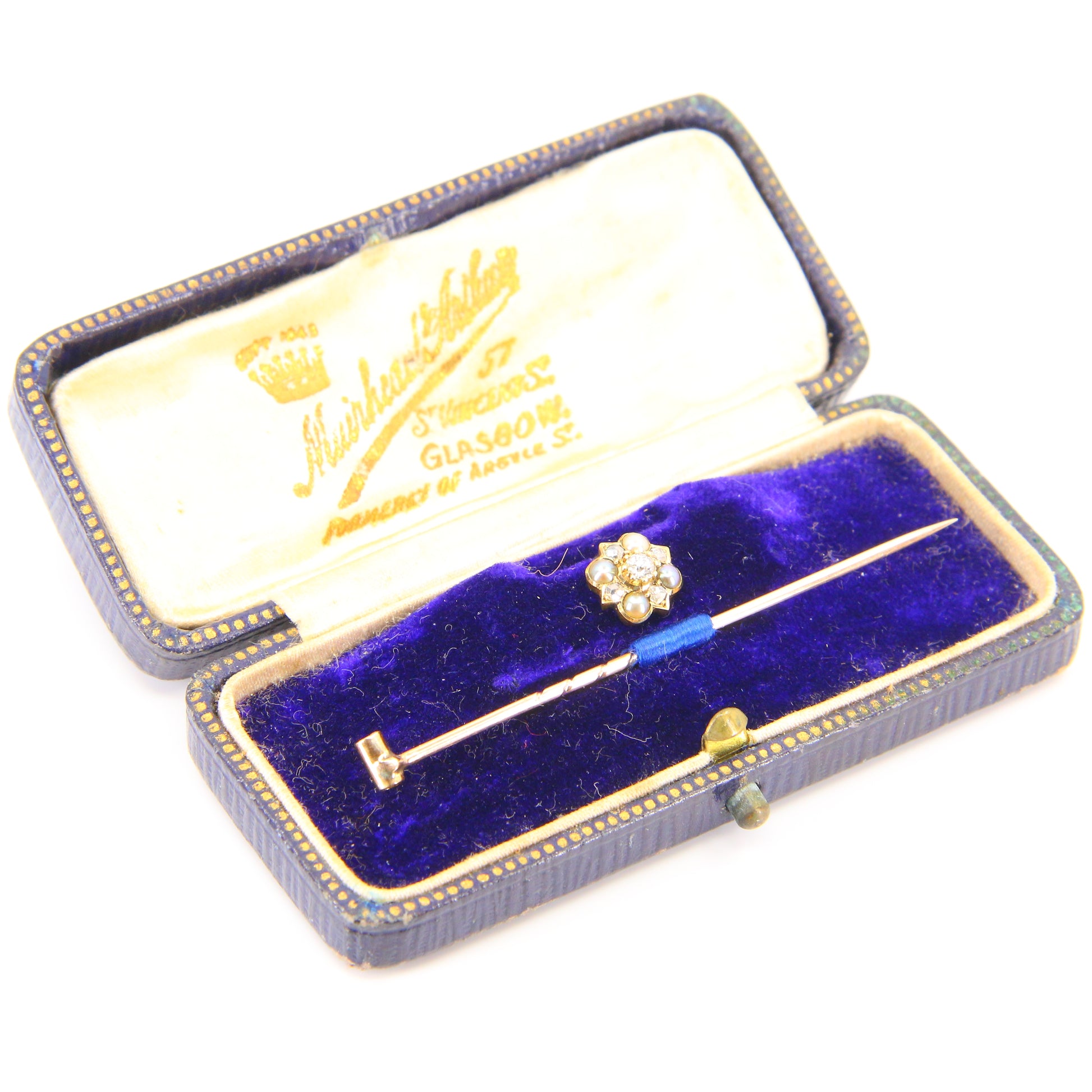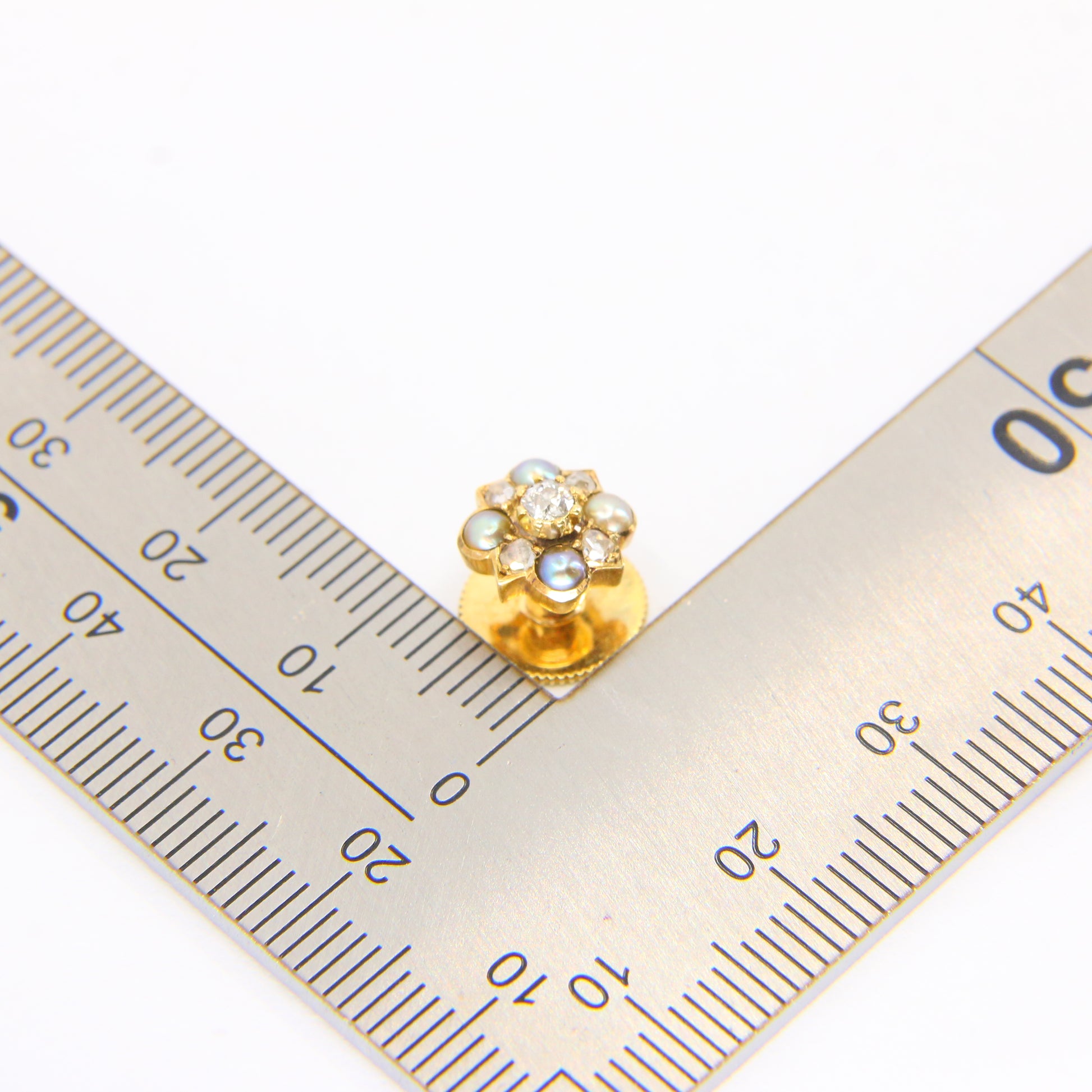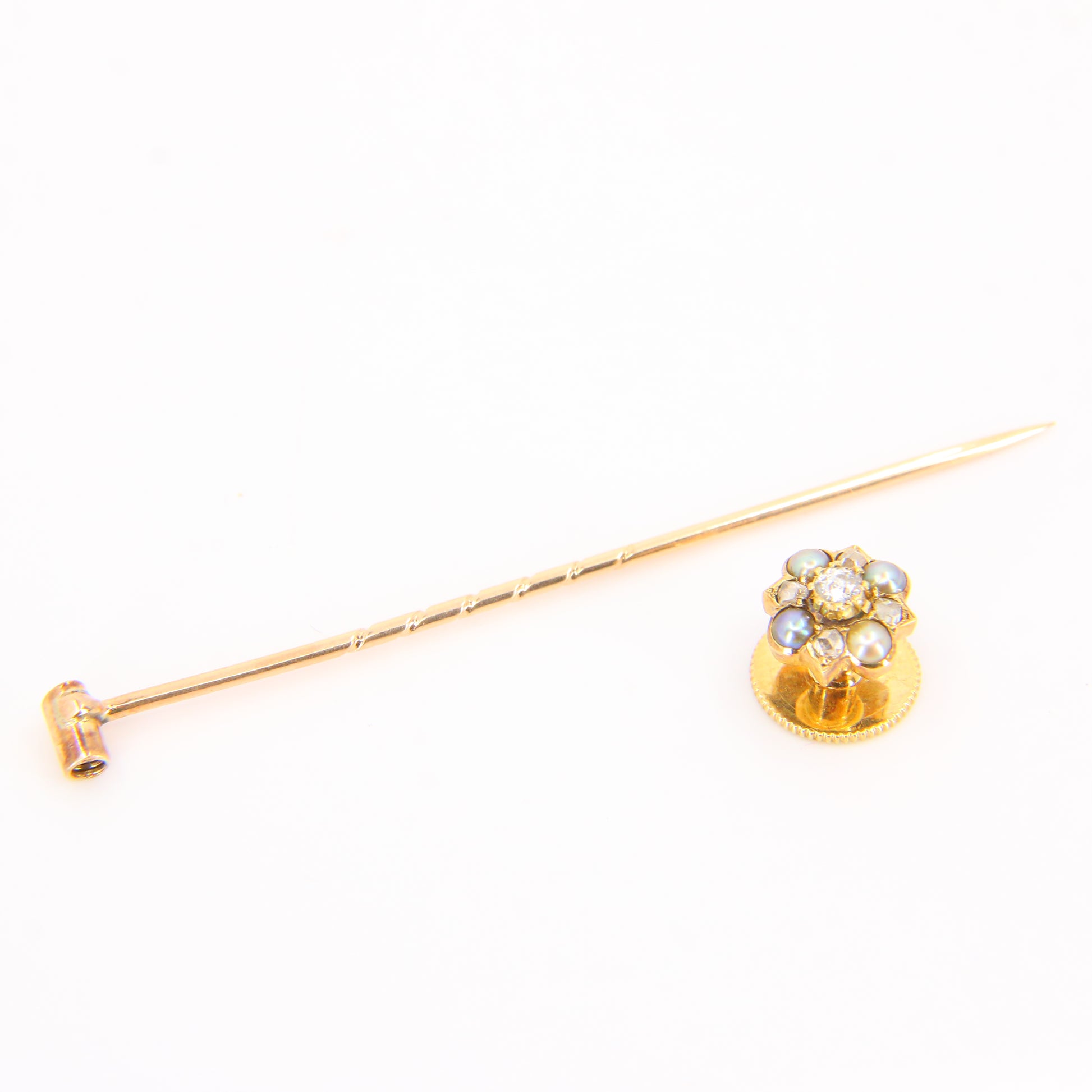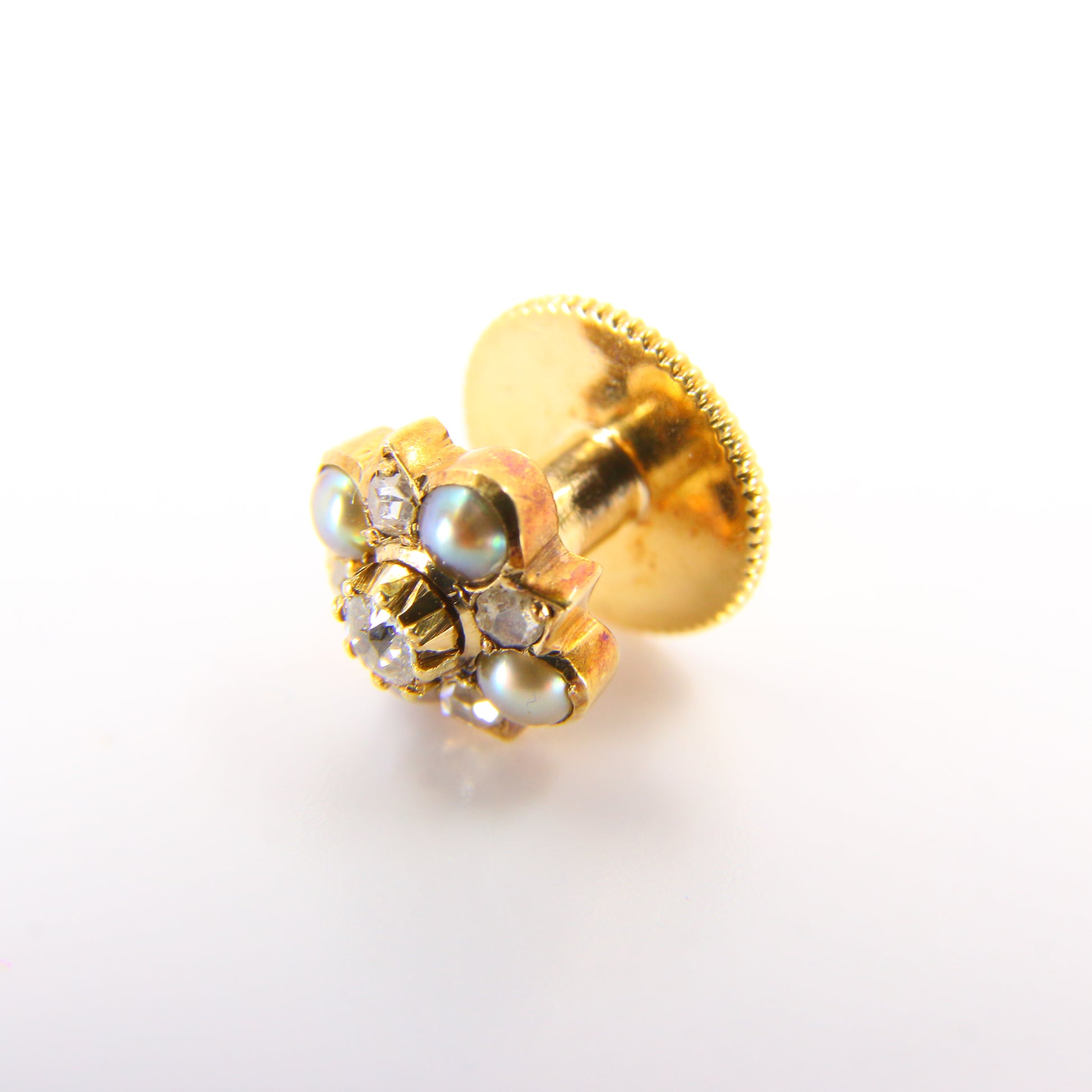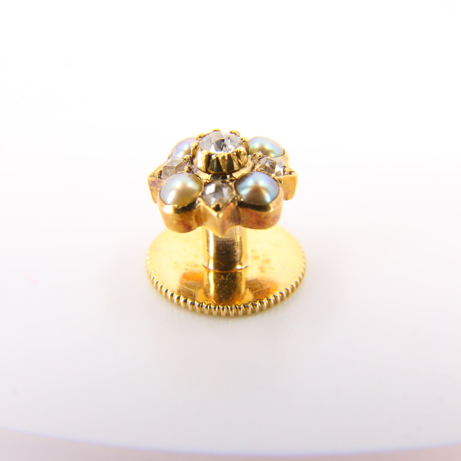 Vintage 15ct Gold Diamond and Pearl Shirt Stud and Pin Converter Stud or Brooch