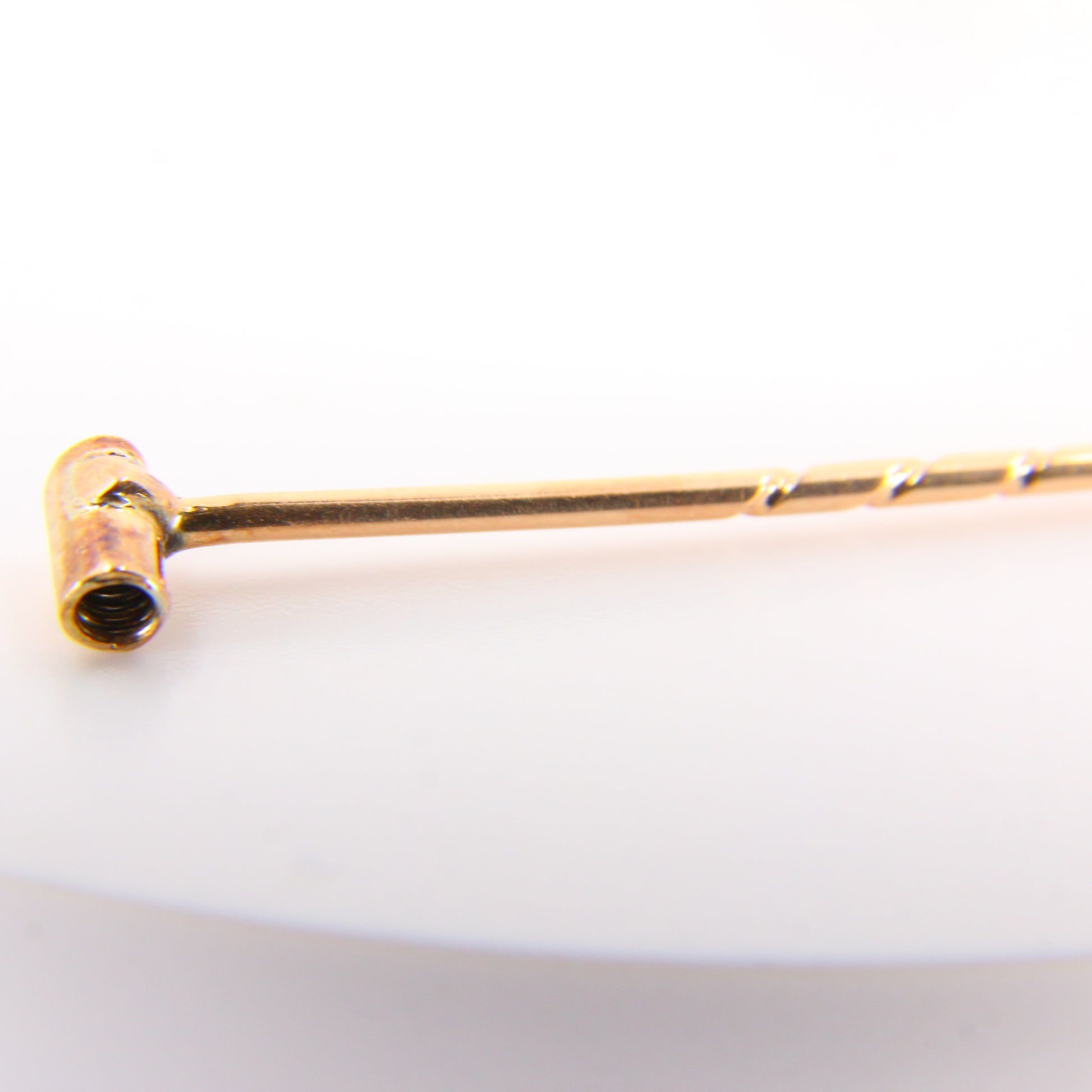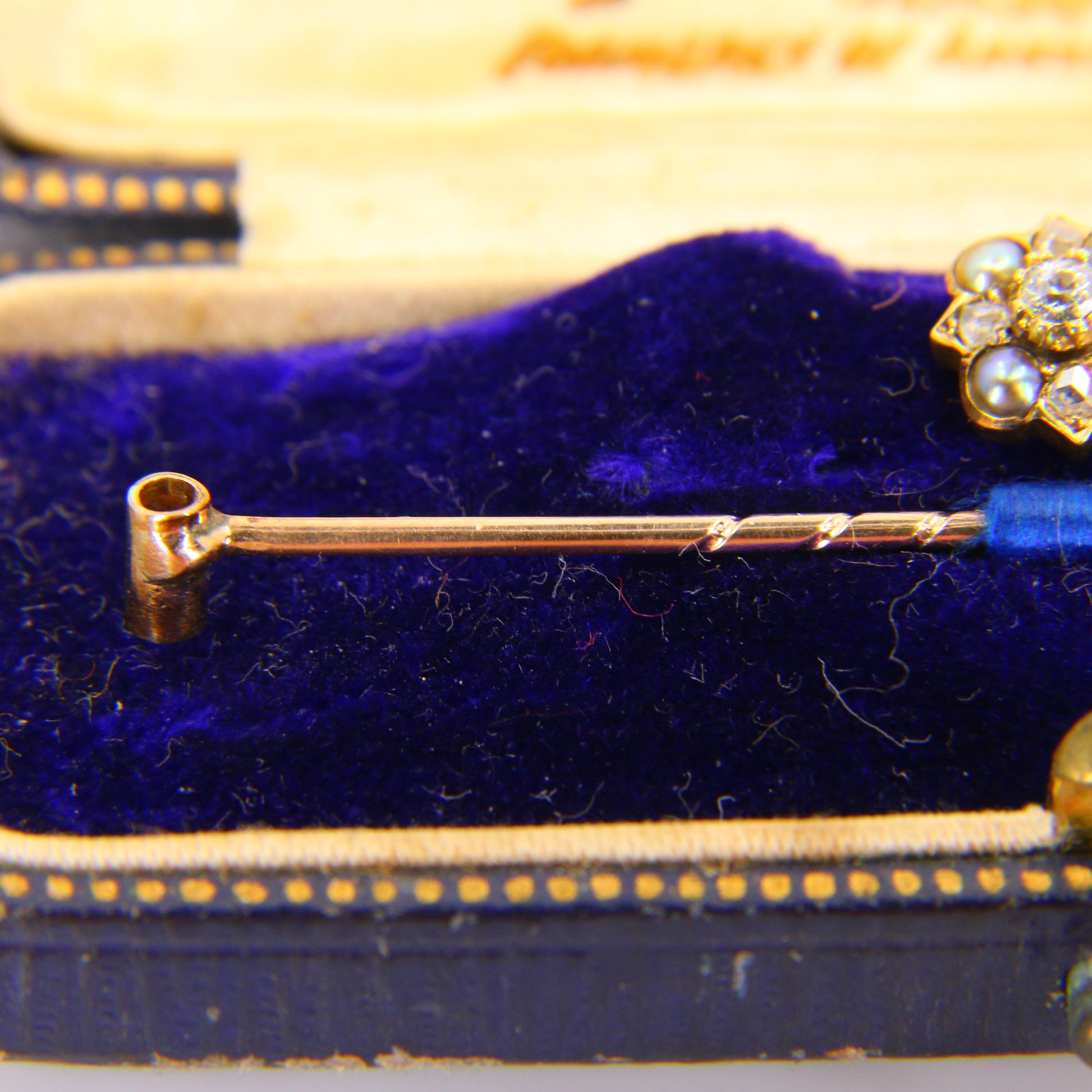 A beautifully boxed single woman's diamond and gold shirt stud with pin brooch converter. Simply unscrew the stud completely from the stud back and attach via a screw fixing to the pin for easy and sturdy conversion. A perfect gift or addition to any collection.