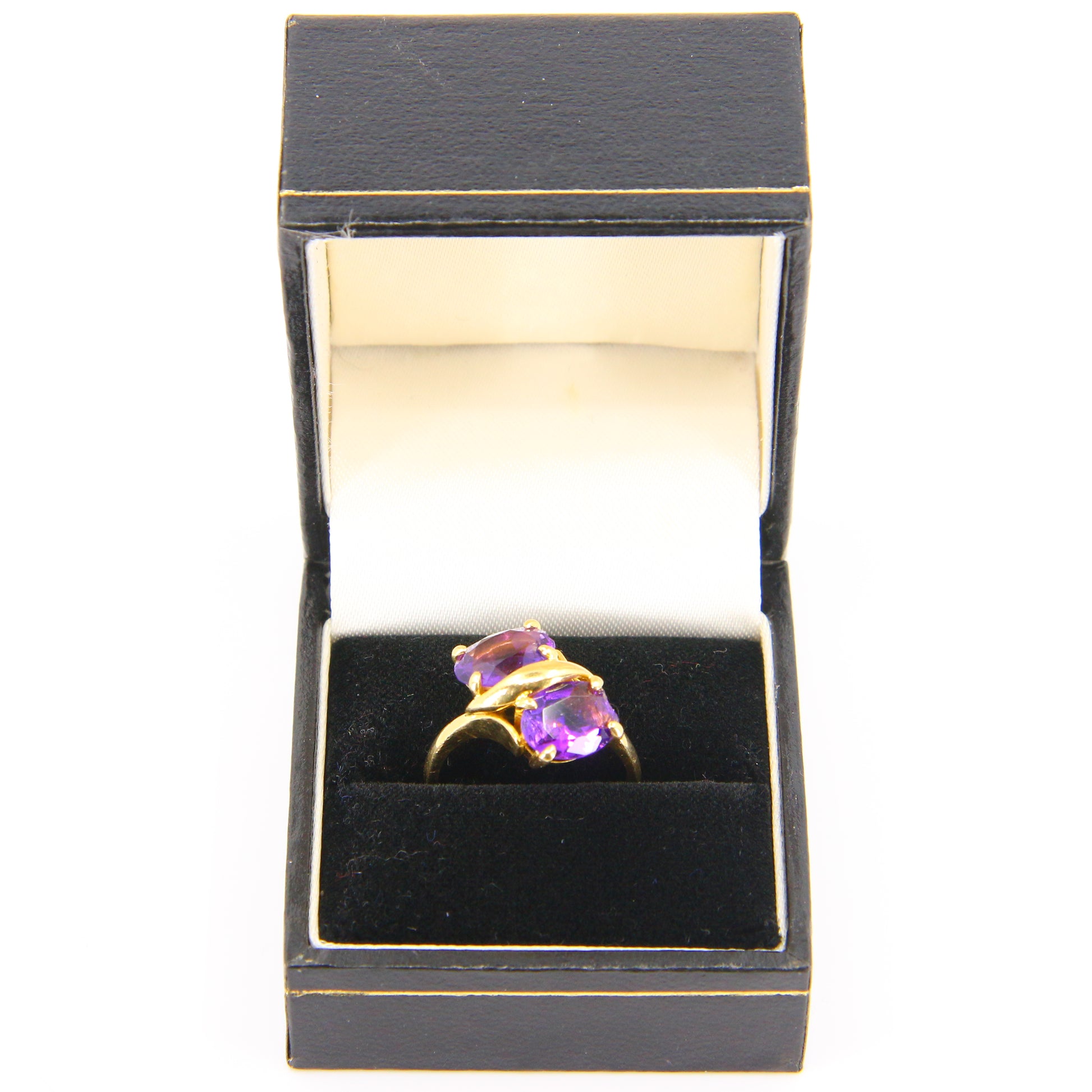 Dimensions: amethysts each approximately 6.2mm x 8.9mm. This ring is also sizeable, meaning it can be resized if needed.
