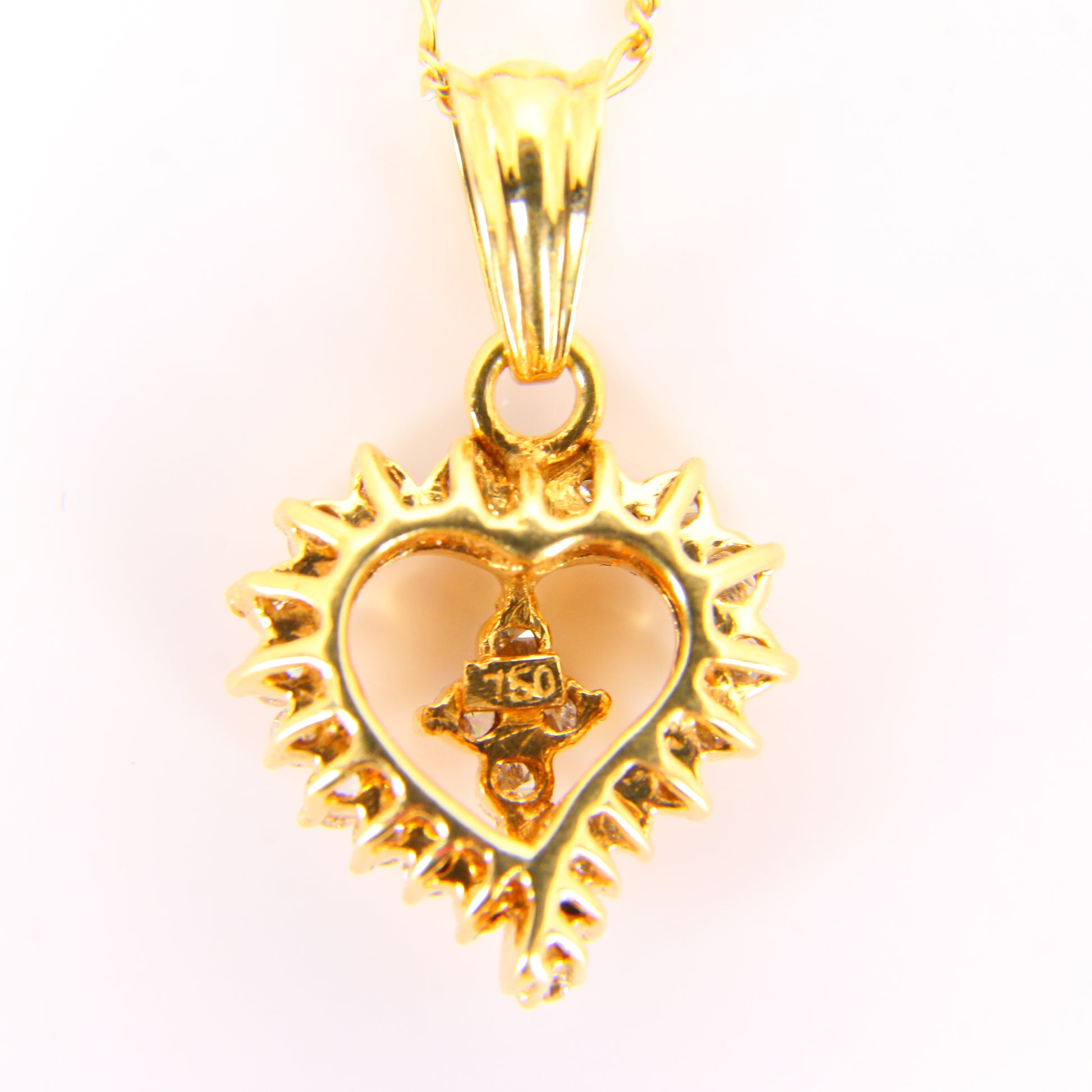 Vintage 18ct Gold Diamond Heart Pendant Necklace Hallmarked Yellow Gold Boxed