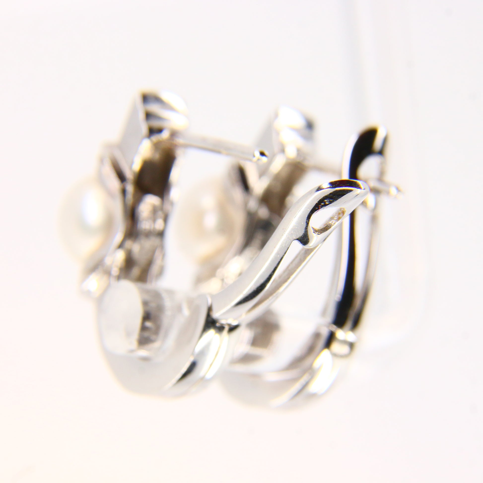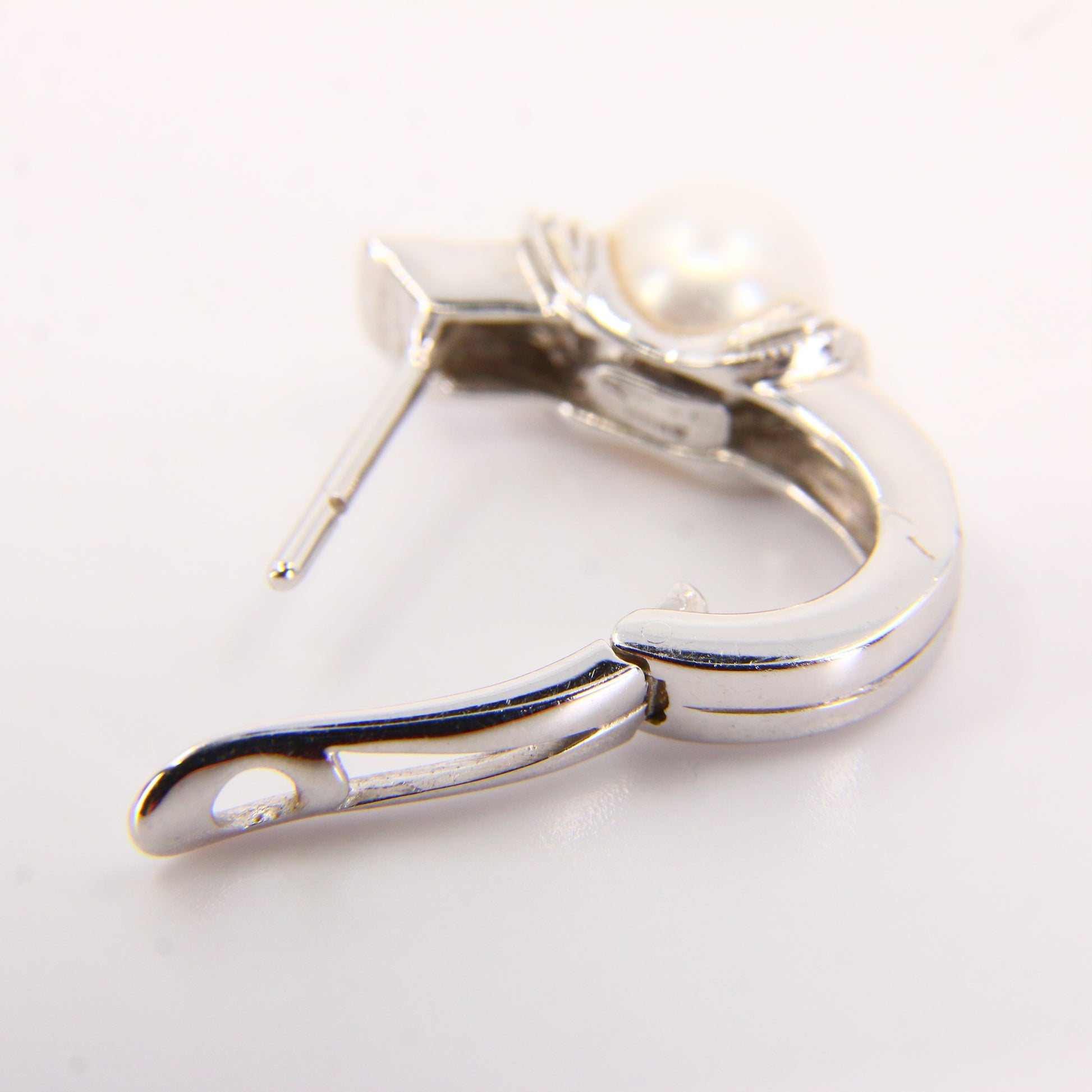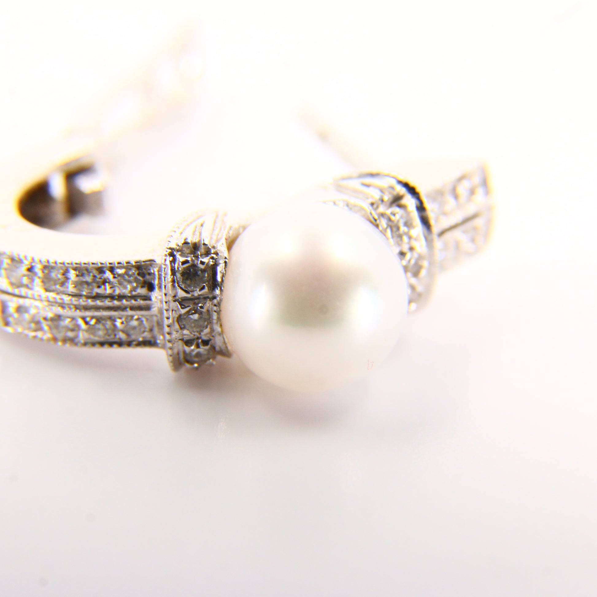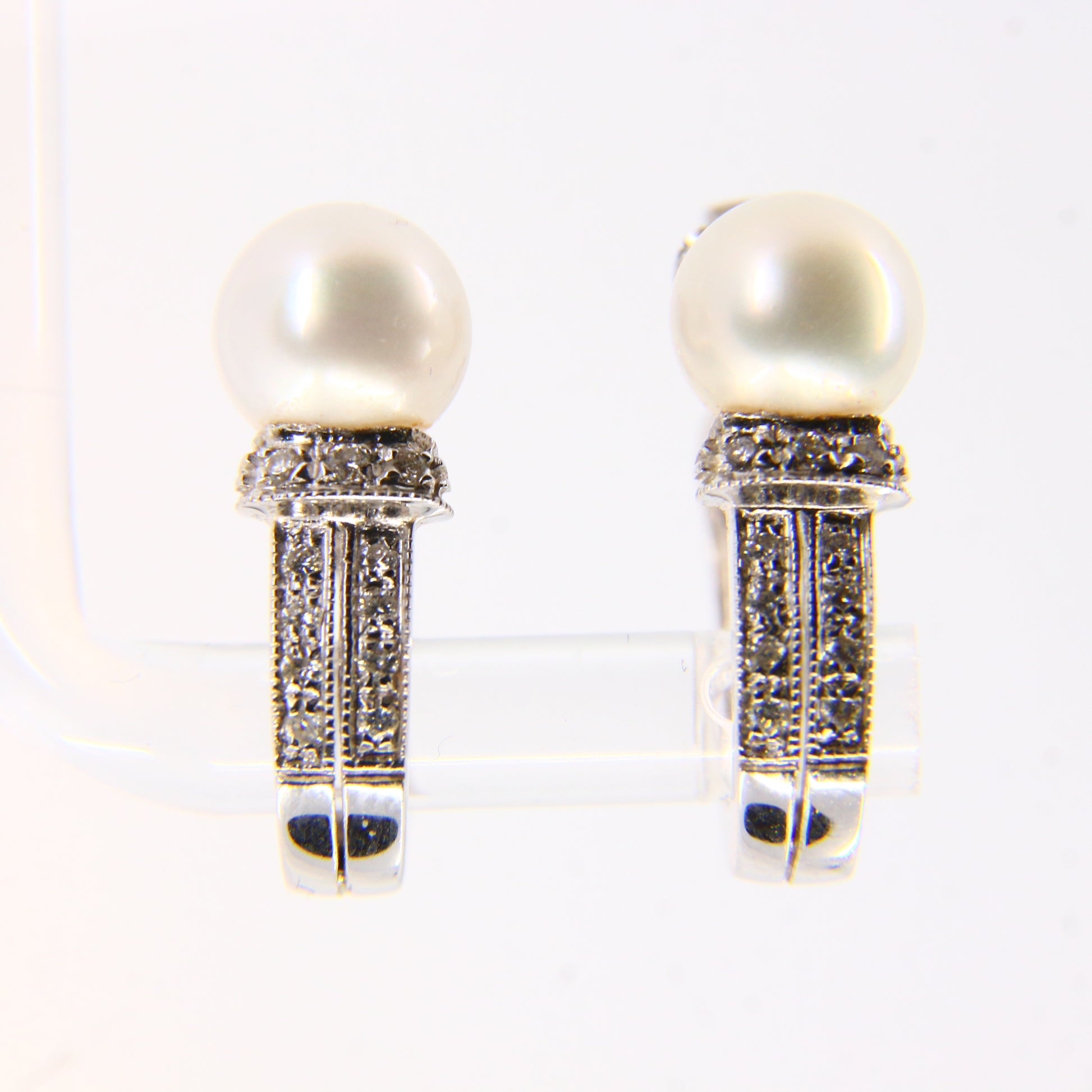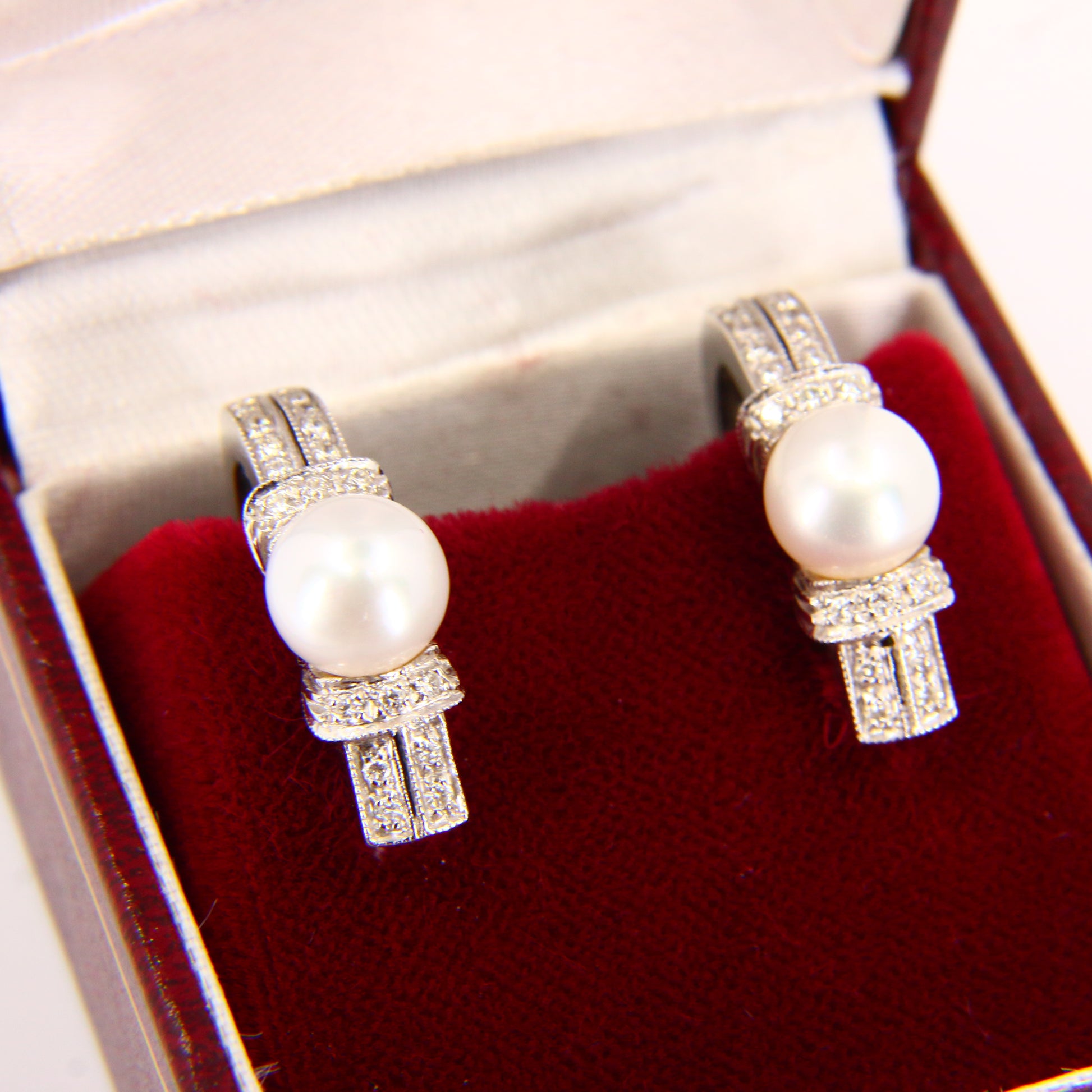 Vintage 18ct Gold Diamond & Pearl Dangle Earrings 18 Carat White Gold Boxed Gift