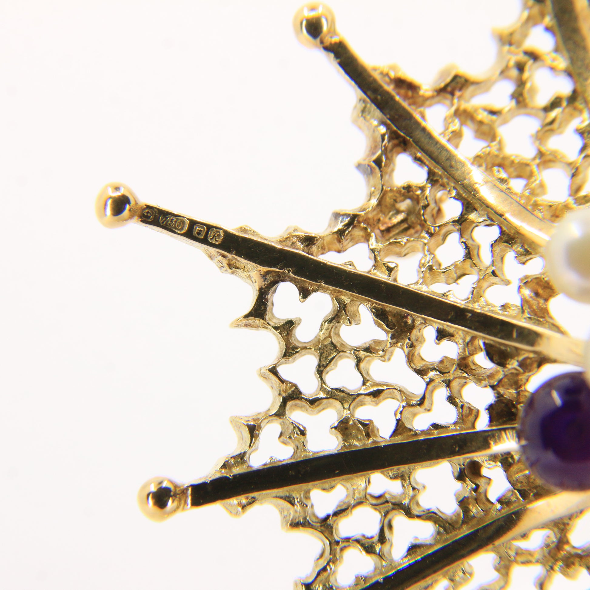 Vintage 18ct Hallmarked Stuart Devlin Jewellery Set Gold Brooch & Stud Earrings Amethyst Pearls