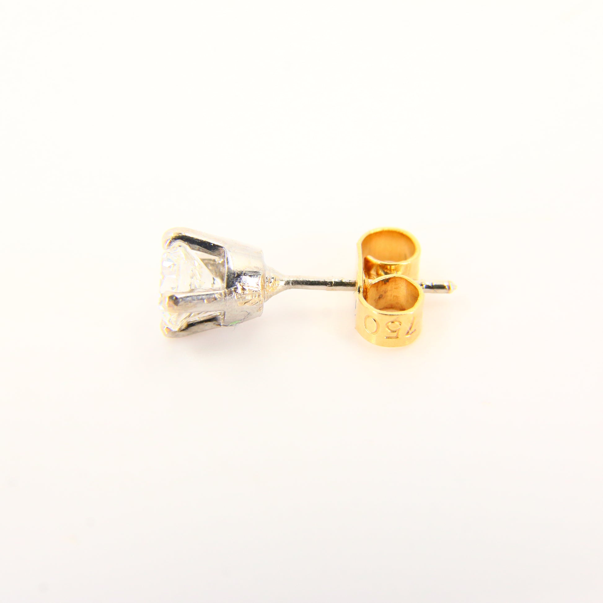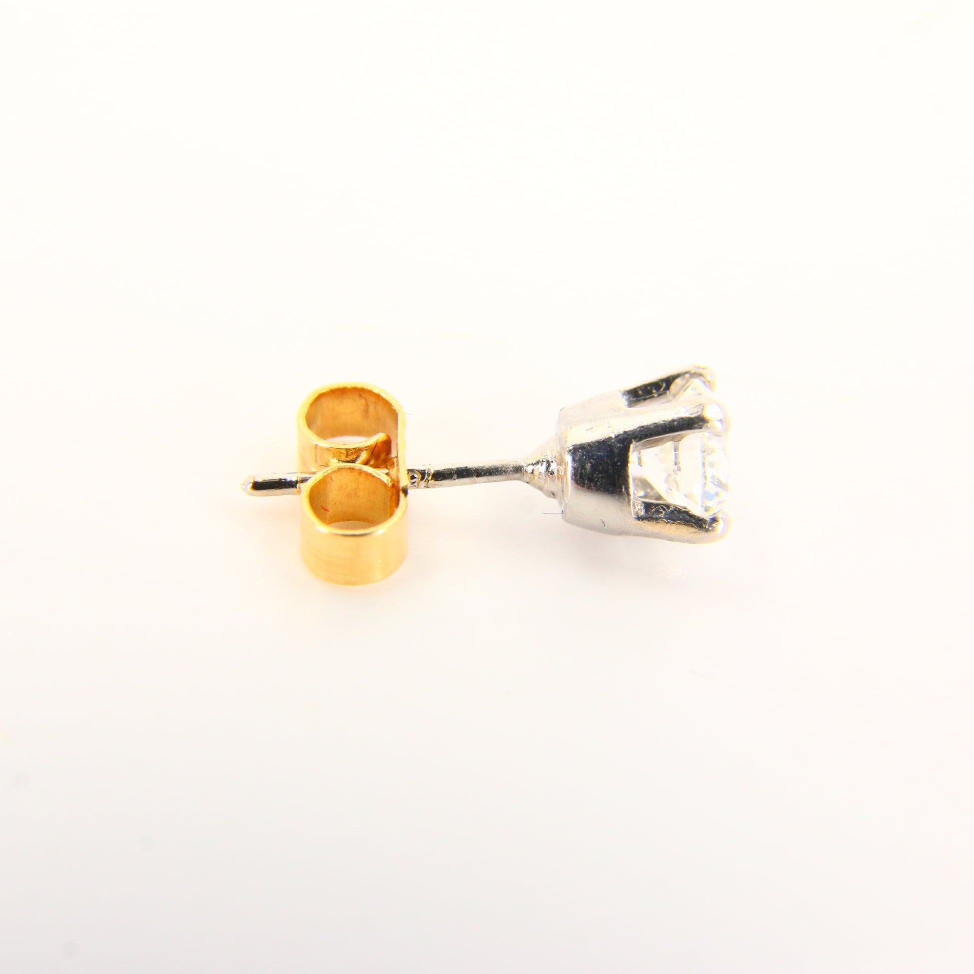 A beautiful set of 18 Carat white gold diamond stud earrings with yellow gold 18ct backing springs, 1/2 carat of diamond in total 1/4 carat per stud, 25 points in each stone. A perfect gift or addition to any collection.
