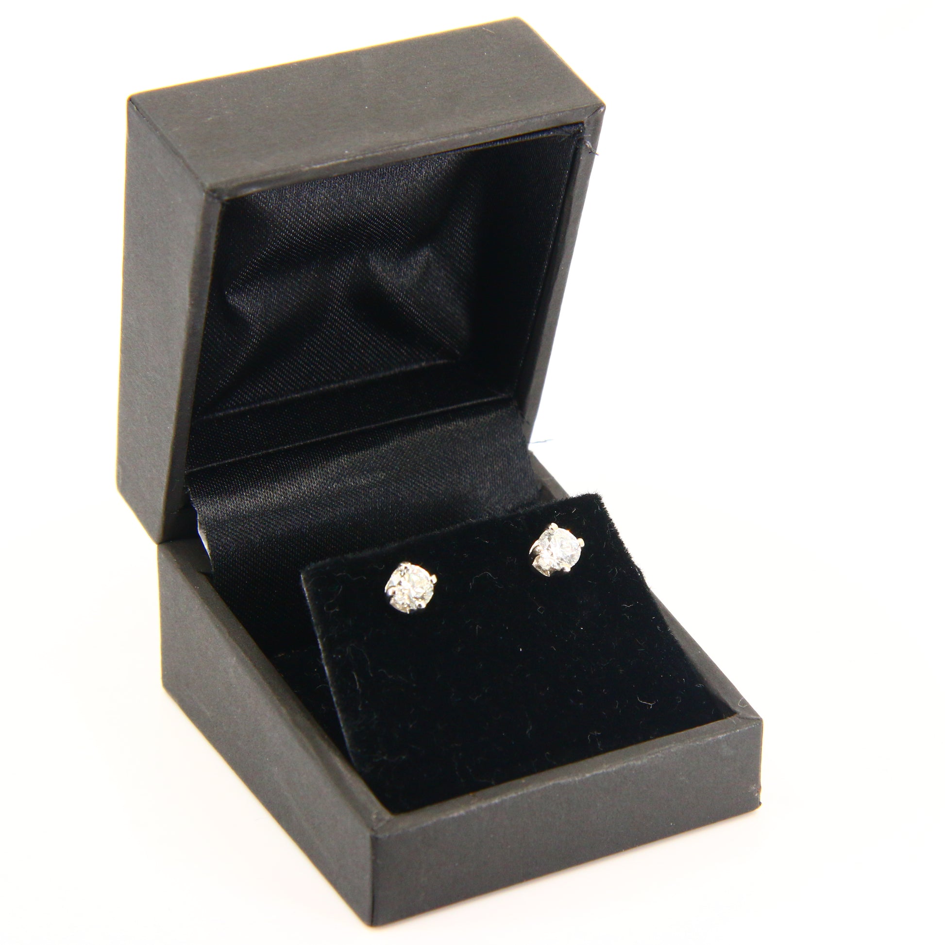 Vintage 18ct White Gold Diamond Stud Earrings 1/2 Carat Diamond Boxed Gift